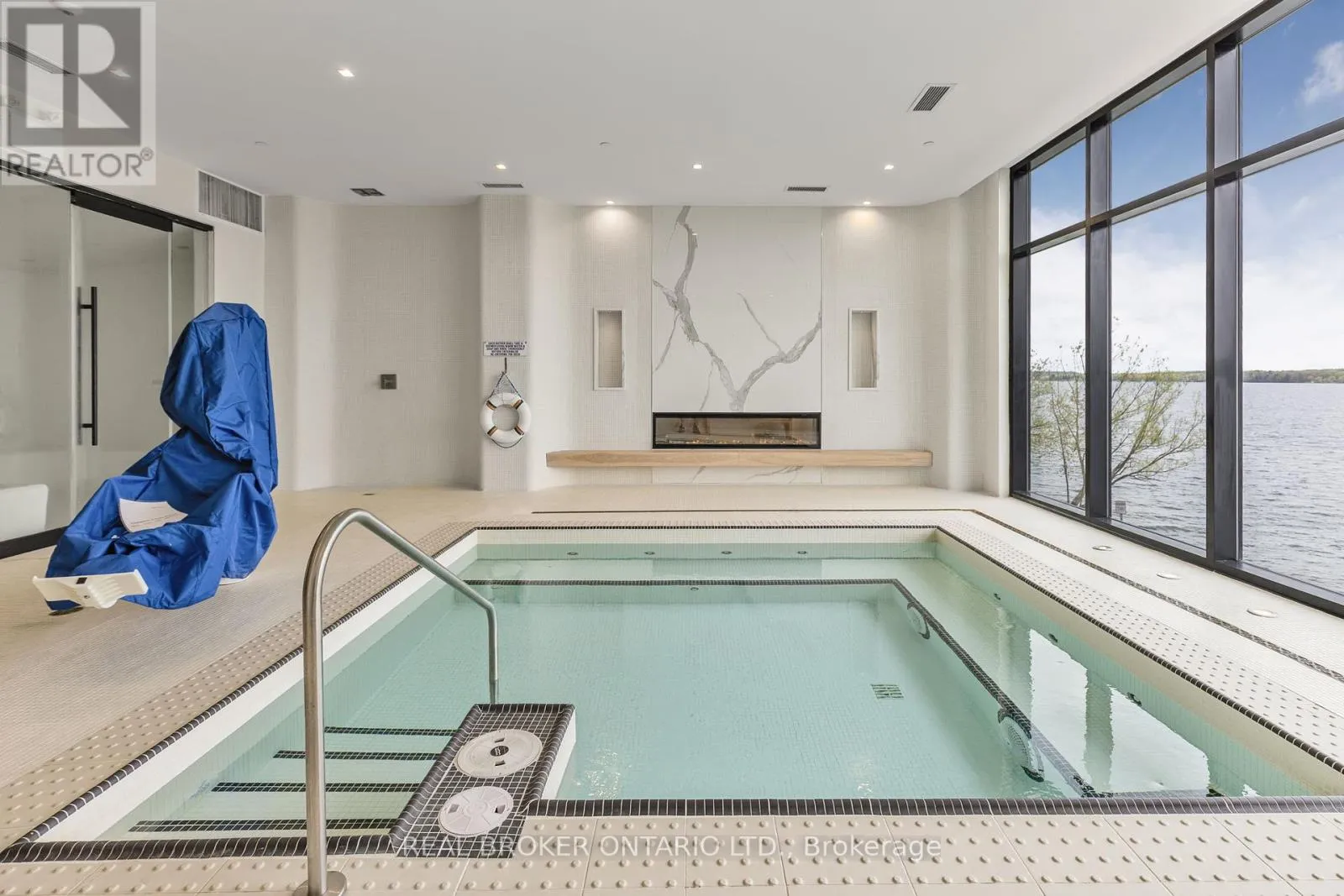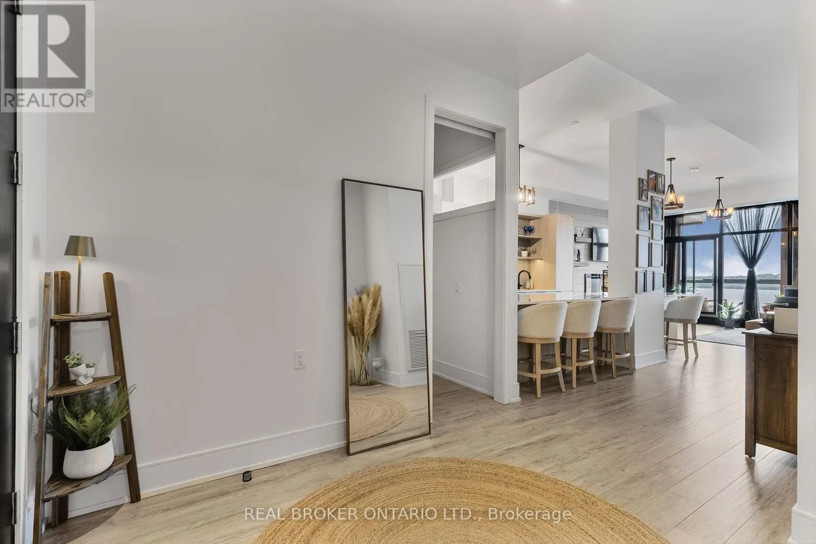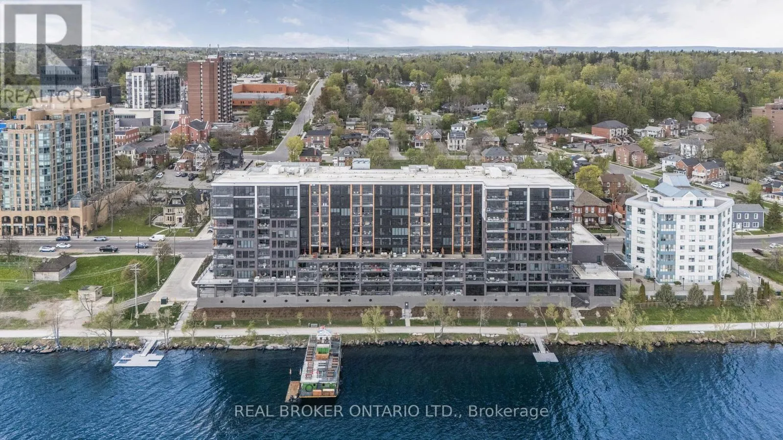 Cross Streets: Dunlop St E & Poyntz St. ** Directions: Dunlop St E to Lakhouse - East Entrance - Concierge. Welcome to Penthouse 3 at Lakhouse, Barrie's premier lakefront luxury condominium on the shores of Lake Simcoe. This exceptional penthouse offers a rare blend of modern design, upgraded finishes, and breathtaking views for a truly elevated lifestyle. Step inside to discover soaring ceilings and a thoughtfully customized interior of almost 1300 square feet. The stunning kitchen has all upgraded appliances and an extended breakfast bar with a built in beverage fridge making it perfect for entertaining. The living room features a custom built shiplap wall with a six foot electric fireplace, and a built in bench for extra seating and storage. Oversized windows flood the entire space with natural light. The primary bedroom is a true retreat with a spacious double vanity ensuite and a custom closet that reaches almost to the ceiling with extra deep hanging spaces, shelves and drawers on both sides. Enjoy stunning, unobstructed views of Kempenfelt Bay year round on the large private balcony with a unique railing-to-roof glass enclosure that opens fully. Use the spacious den for a second bedroom, a guest room or a flexible work space. En-suite laundry has been upgraded to include full sized machines. Building amenities include: two rooftop terraces with BBQs, kitchens, fire features, and panoramic lake views. A beautifully appointed party room, with a bar, meeting space, caterers kitchen and and indoor lounge areas with terrace access. A full-service fitness studio with locker rooms, whirlpool, sauna, and steam room. Pet spa, guest suites, indoor storage for paddle boards, kayaks and bikes, and two floating docks for easy lake access. On-site bakery café and upcoming pharmacy for added convenience. 24-hour concierge and security for peace of mind. Storage locker located on the same level as the unit. Includes two indoor parking spaces. This is a rare opportunity to own a signature penthouse suite in one of Barrie's most desirable luxury residences. (id:27476)