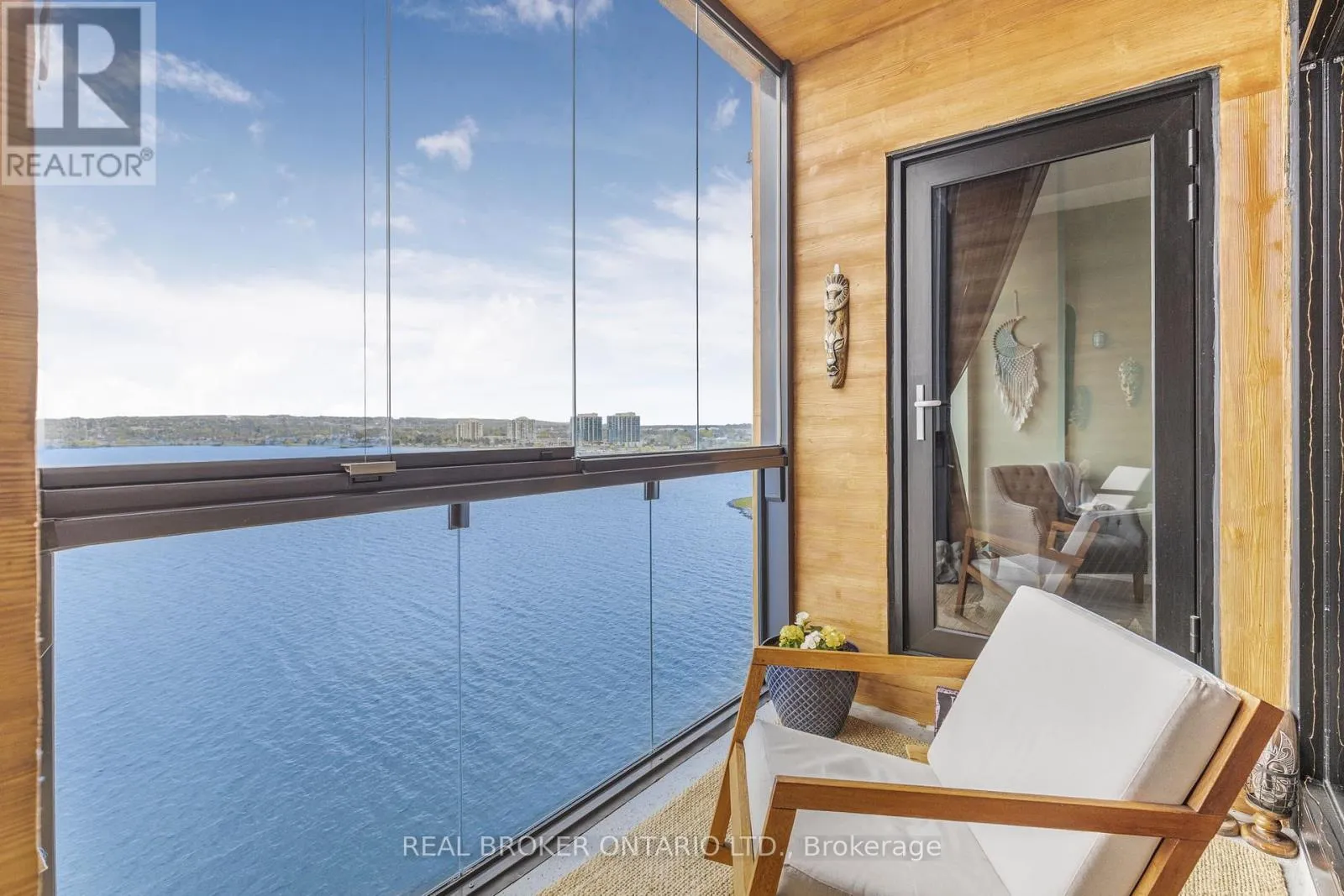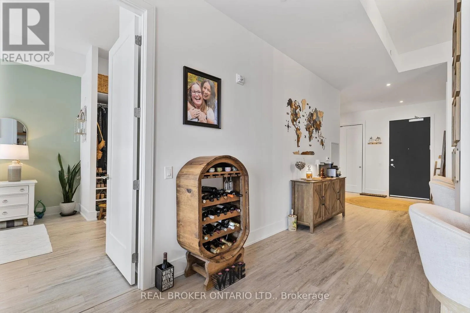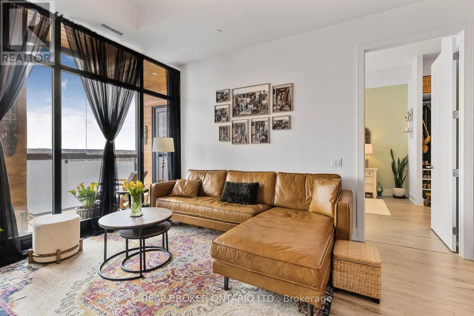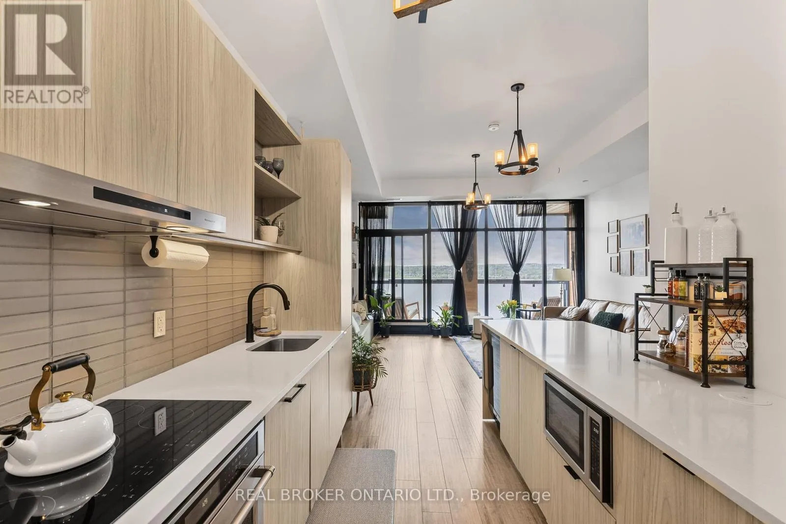 Cross Streets: Dunlop St E & Poyntz St. ** Directions: Dunlop St E to Lakhouse - East Entrance - Concierge. Welcome to Penthouse 3 at Lakhouse, Barrie's premier lakefront luxury condominium on the shores of Lake Simcoe. This exceptional penthouse offers a rare blend of modern design, upgraded finishes, and breathtaking views for a truly elevated lifestyle. Step inside to discover soaring ceilings and a thoughtfully customized interior of almost 1300 square feet. The stunning kitchen has all upgraded appliances and an extended breakfast bar with a built in beverage fridge making it perfect for entertaining. The living room features a custom built shiplap wall with a six foot electric fireplace, and a built in bench for extra seating and storage. Oversized windows flood the entire space with natural light. The primary bedroom is a true retreat with a spacious double vanity ensuite and a custom closet that reaches almost to the ceiling with extra deep hanging spaces, shelves and drawers on both sides. Enjoy stunning, unobstructed views of Kempenfelt Bay year round on the large private balcony with a unique railing-to-roof glass enclosure that opens fully. Use the spacious den for a second bedroom, a guest room or a flexible work space. En-suite laundry has been upgraded to include full sized machines. Building amenities include: two rooftop terraces with BBQs, kitchens, fire features, and panoramic lake views. A beautifully appointed party room, with a bar, meeting space, caterers kitchen and and indoor lounge areas with terrace access. A full-service fitness studio with locker rooms, whirlpool, sauna, and steam room. Pet spa, guest suites, indoor storage for paddle boards, kayaks and bikes, and two floating docks for easy lake access. On-site bakery café and upcoming pharmacy for added convenience. 24-hour concierge and security for peace of mind. Storage locker located on the same level as the unit. Includes two indoor parking spaces. This is a rare opportunity to own a signature penthouse suite in one of Barrie's most desirable luxury residences. (id:27476)