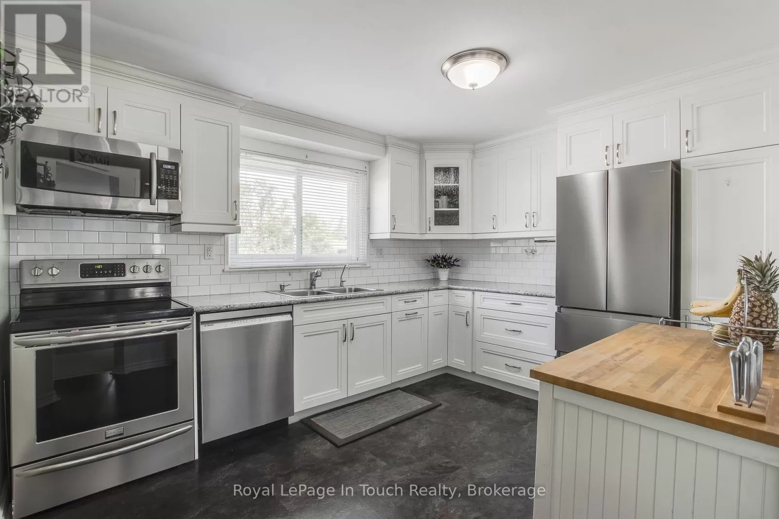 Cross Streets: Innisfil / Tiffin. ** Directions: Essa Road to Innisfil Street. Does Location Matter? This prime low traffic End Unit is located in a quiet complex. A beautifully maintained home offers spacious living with 3 Bedrooms, 1 1/2 Bathrooms with over 1400 square feet of living space boasts a well-designed floor plan & features a bright and airy open concept living. Step into the new kitchen which provides ample counter space and plenty of storage and a convenient pass thru to the dining room. The living room has plenty of space, a powder room and a walkout to a beautiful private fenced rear yard where you can relax, barbecue or entertain family and friends. Upstairs, you will find three generously sized bedrooms, each filled with natural light and offering plenty of closet space. A New 4-piece bath provides comfort and convenience for the whole family. The finished basement adds valuable living space featuring a family room with the bonus of a built-in bar. Situated in a family-friendly neighborhood in the heart of Barrie, this condo townhouse is within walking distance to the waterfront, close to schools, parks, shopping centers, Go Station, public transportation and highway access providing easy access to all the amenities you need. One Reserved parking space, additional reserved parking available and visitor parking. The affordable benefit of low property taxes and monthly maintenance fees which include exterior maintenance, common area snow removal, grass cutting, roof and windows take care of the essentials so you can spend less time on upkeep and more time enjoying your home, your community and the lifestyle that comes with it. Whether you're a family, professional, first-time home buyer or downsizing, this townhouse condo is a perfect choice. Schedule your showing today!**EXTRAS** New Kitchen & Bath. Newer appliances, windows 3 yrs, roof 5 yrs, furnace 4 yrs, hot water heater 1 yr, new carpet in basement. (id:27476)