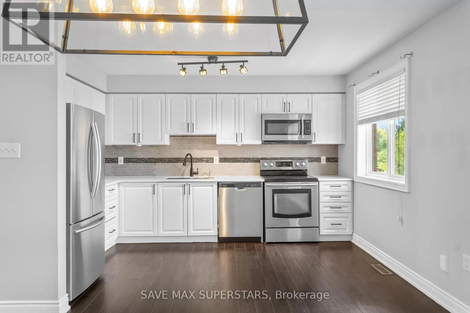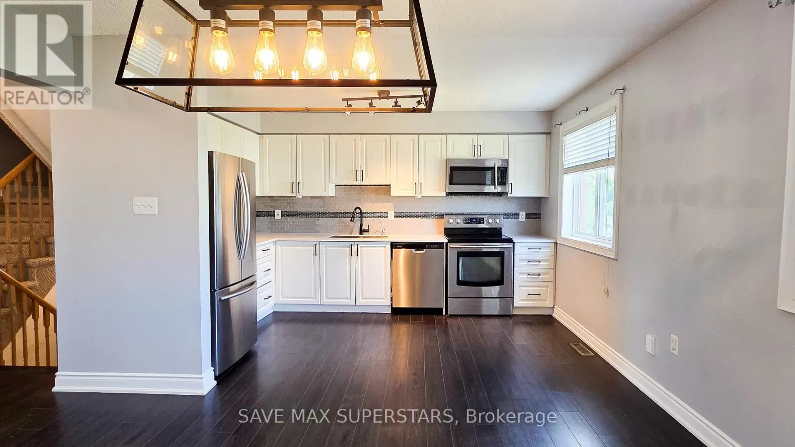 Ferndale/Tiffin Welcome to this beautifully maintained 3-bedroom, 3-bathroom townhouse located in one of Barrie's most desirable neighbourhoods along Ferndale Drive South. Offering over three levels of thoughtfully designed living space, this elegant home blends modern comfort with timeless charm. The main floor features a spacious double reception room perfect for family living and entertaining, and a fully upgraded eat-in kitchen with sleek countertops, stainless steel appliances, a contemporary tile backsplash, and brand-new lighting fixtures. The kitchen walks out to a private decked backyard, ideal for summer BBQs and relaxed outdoor gatherings. Upstairs, the sun-filled primary bedroom includes an oversized walk-in closet and a stylish ensuite bathroom. Two additional bedrooms offer ample space for family, guests, or a home office. Further highlights include a dedicated laundry area, interior garage access, and beautifully maintained hardwood floors throughout. This home is part of a well-maintained community offering low-maintenance living, including snow removal, landscaped grounds, ample visitor parking, and a private park for children, making it perfect for growing families or downsizers alike. Situated just minutes from schools, parks, Bear Creek Eco Park, beaches, trails, and shopping, this location is a commuter's dream with quick access to Highway 400 and the Barrie South GO Station. Only 10 years old and in pristine condition, this turnkey townhouse offers a perfect combination of functionality, style, and location. (id:27476)