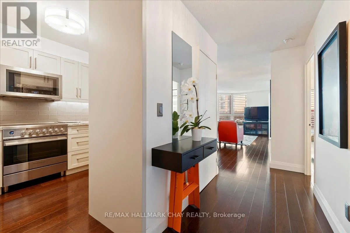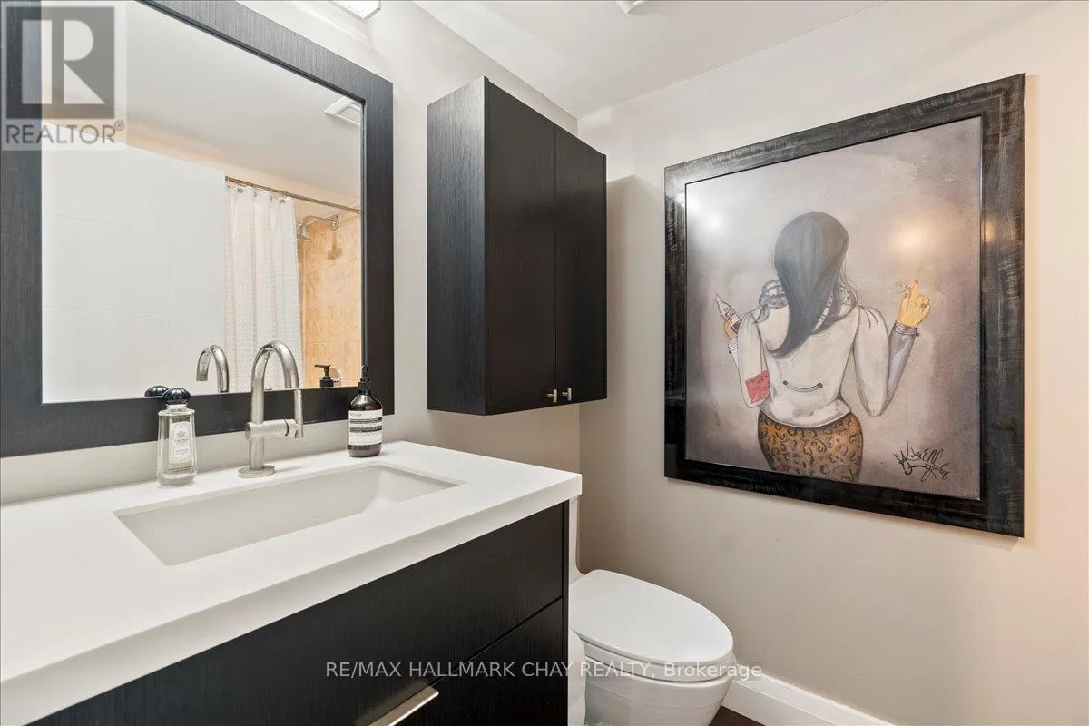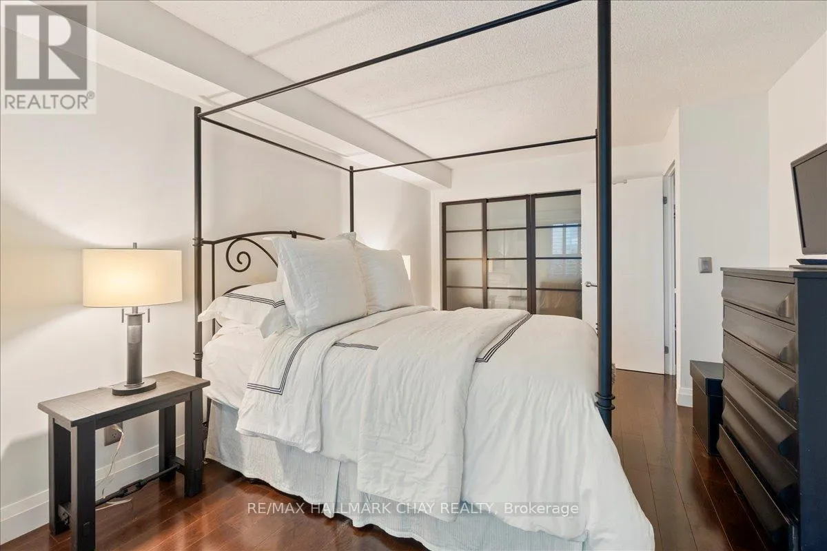 Mulcaster and Dunlop St E Absolutely Stunning One Bedroom Plus Den Suite With Large Private Terrace is an Oasis You Can Barbeque On And Entertain Friends And Family. Lovely View Of Kempenfelt Bay And The City Lights. This Gorgeous Condo Has Been Fully Renovated And Upgraded. The Custom Kitchen Has Beautiful Cabinetry, Quartz Countertops, Full Sized Fridge, Fisher & Paykel Stove ($10,000 Value). There Is Sumptuous Engineered Hardwood Flooring Throughout, modern Baseboards And Custom Doors By Barrie Trim and Moulding Including 2 Sets of Contemporary French doors, Upscale Closets And Doors. Spa Like Bathroom Is A Relaxing Upgraded Space With Modern Flooring, Vanity and TOTO Toilet. All Windows Have California Shutters, Providing Elegance and Privacy. Enjoy Your Built in Sound System. There Is One Parking Space And a 2nd Rental one Available. Condo Fees Include Heat, Hydro, Water, And Use Of Upgraded Pool, Sauna, Hot Tub, Party Room And Exercise Room (id:27476)