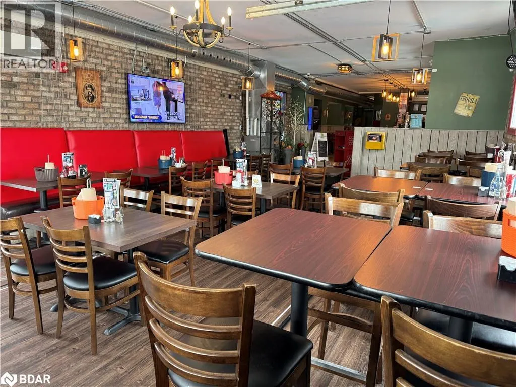 Dunlop to Mulcaster Rare opportunity to own a thriving 3,600 sq. ft. wing restaurant in the heart of downtown Barrie! Boasting a seating capacity of 400 between its inviting interior and expansive outdoor patio, this venue features one of the city's few lake-facing patios; a major draw during the summer months. Renowned as a local entertainment hotspot, the restaurant hosts a variety of events, including weekly poker, comedy shows, dart leagues, live bands, singer-songwriter nights, and open mic evenings all of which are incredibly well-attended. Sales are consistently climbing and boasts impressive gross margins. This turnkey operation is free from franchise restrictions and fees, offering full independence to the new owner. Included with the sale are a comprehensive operations manual, training, active social media channels, a fully optimized website, marketing plans, and established delivery service integrations. Fully staffed with experienced and dedicated team members, this business is ready for a seamless transition to new ownership. Flexible closing available. Don't miss this chance to own one of Barrie's most beloved dining and entertainment venues! (id:27476)