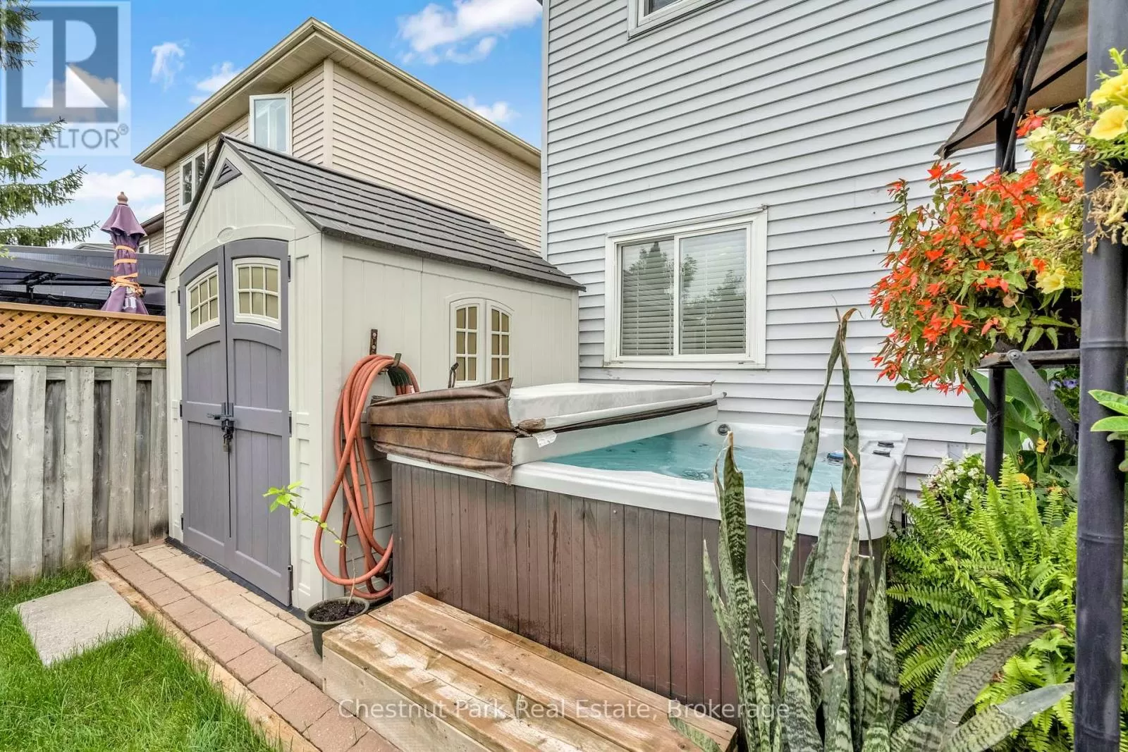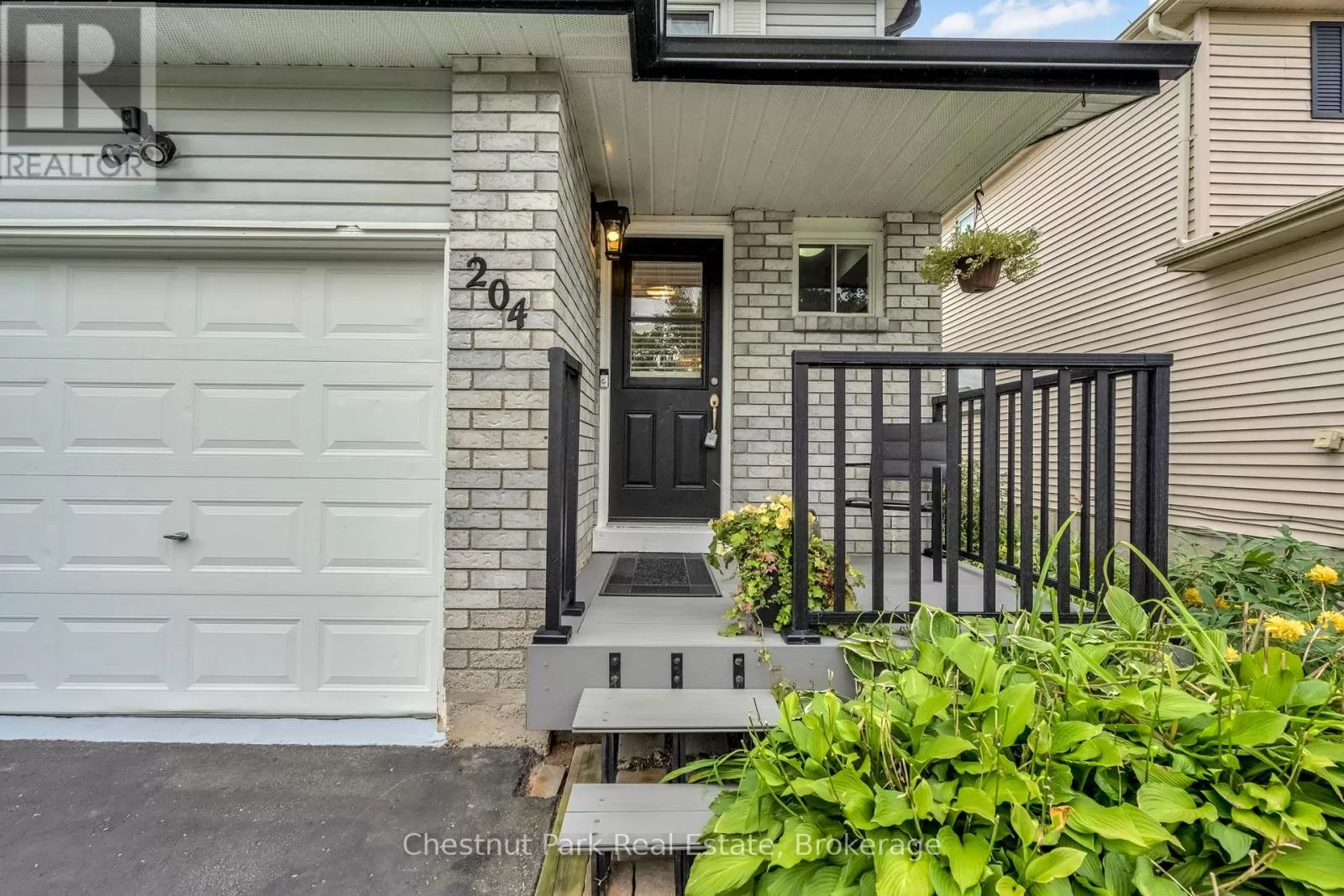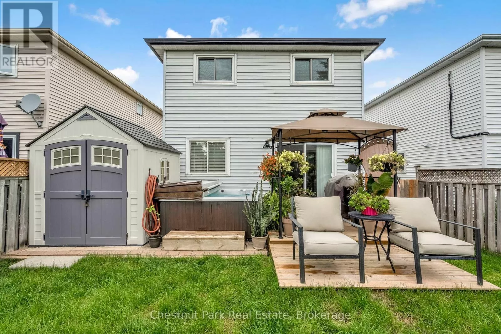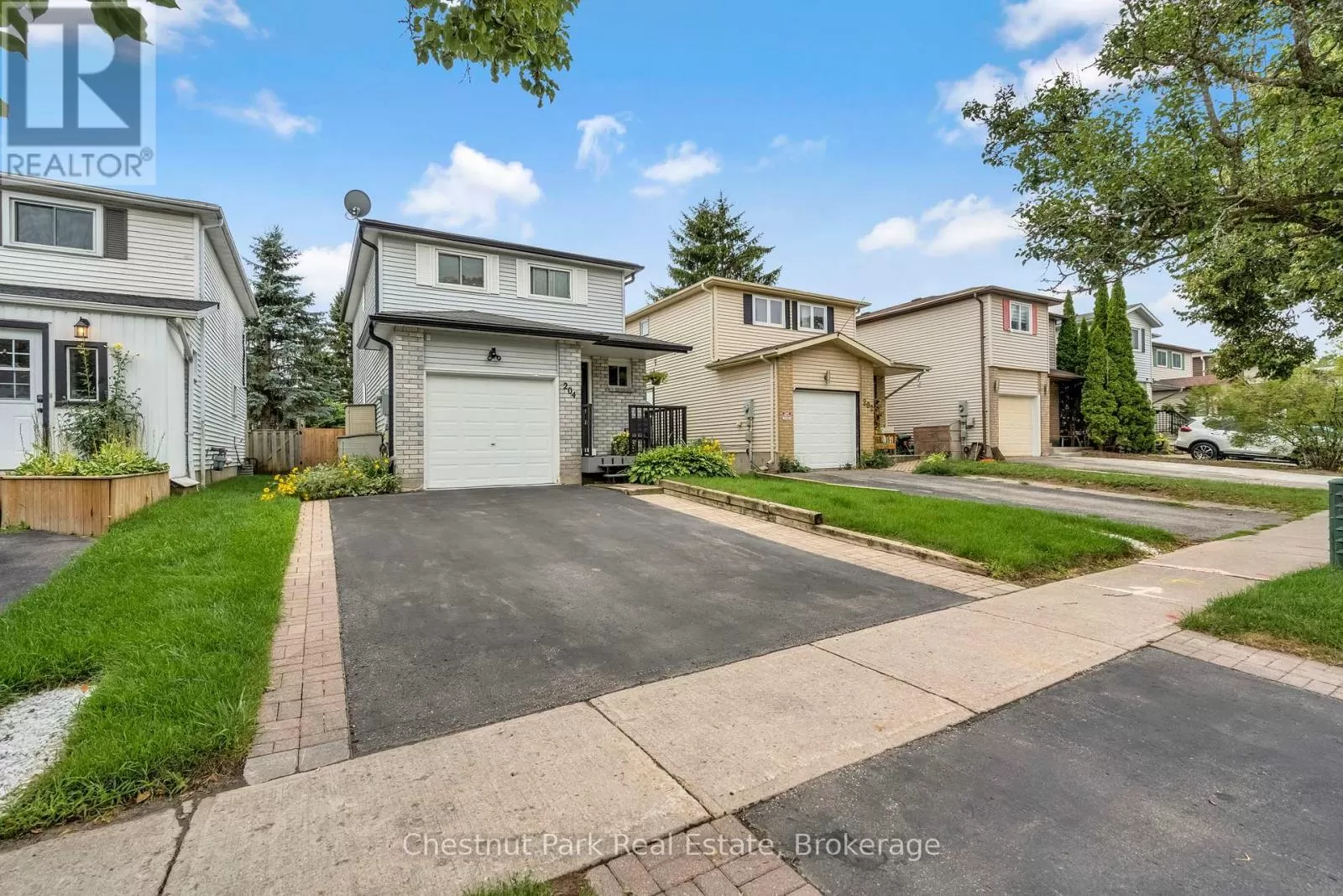 Cross Streets: Johnston Street & Maitland Drive. ** Directions: GROVE TO JOHNSTON TO HICKLING - TURN WEST TO #204. This lovely three-bedroom, two-storey home, backing onto picturesque parkland, features stunning gardens and a patio complete with a cabana-creating an ideal retreat! The property has been thoroughly renovated from top to bottom, boasting gas-forced air heating, updated windows, new carpeting on the second level, and newly constructed porches at both the front and the back. Additional highlights include a hot tub, and a fully finished basement. The main bathroom has been modernized, along with a convenient two-piece bath located on the main floor. There is also an interior entry to the garage and a paved driveway. The pride of ownership is evident both inside and out. Situated in a prime location, conveniently close to public transit, Georgian College, and RVH. Must see to truly appreciate! Some photos are virtually staged. (id:27476)