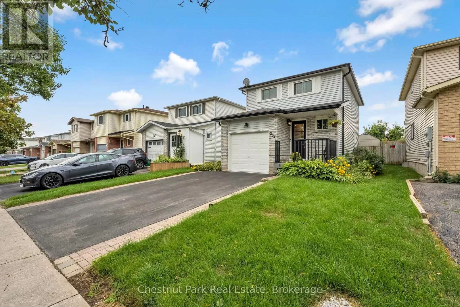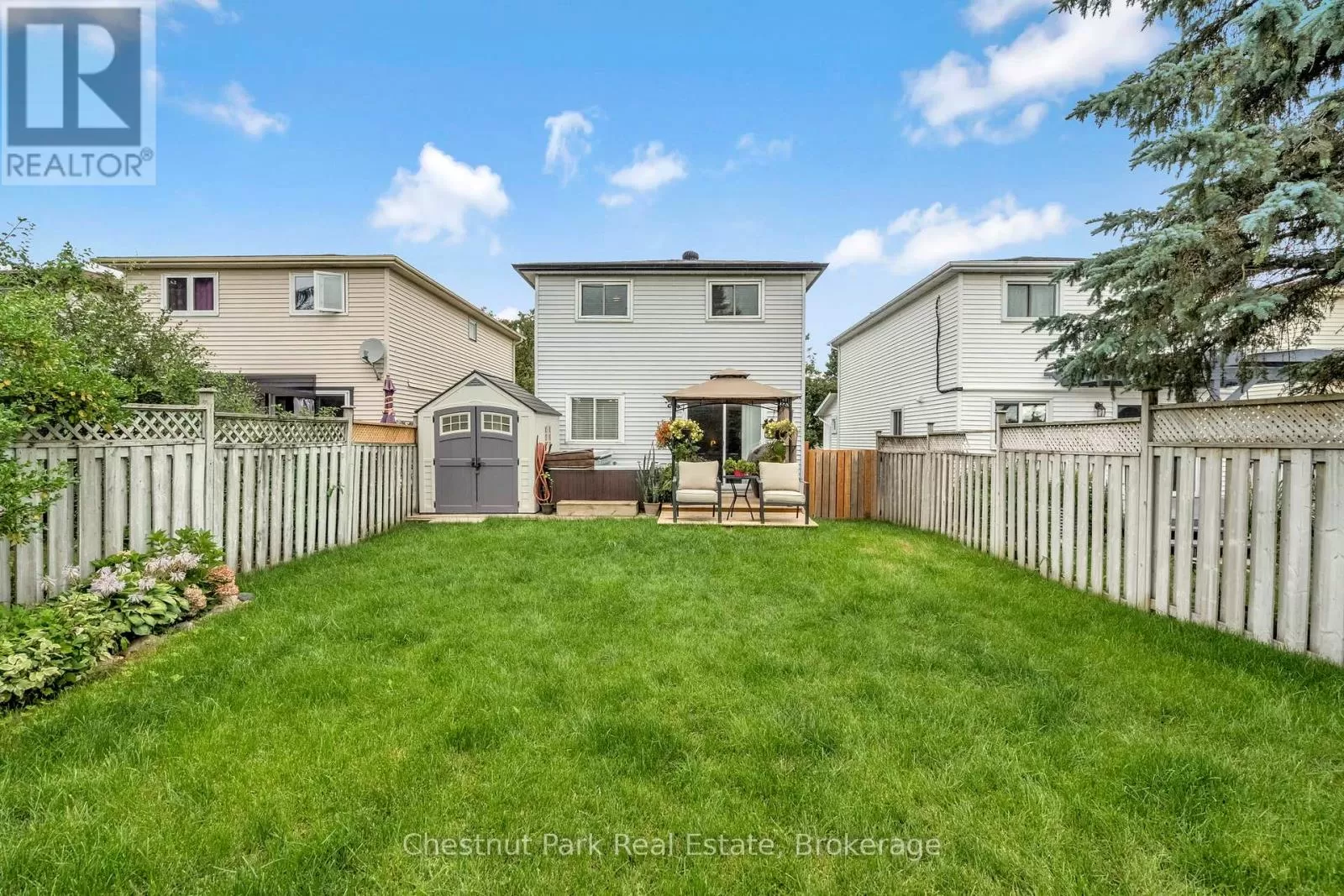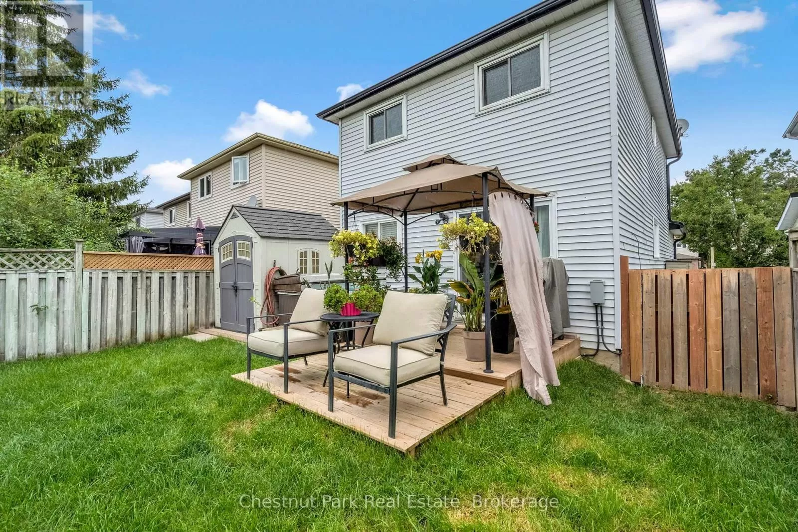 Cross Streets: Johnston Street & Maitland Drive. ** Directions: GROVE TO JOHNSTON TO HICKLING - TURN WEST TO #204. This lovely three-bedroom, two-storey home, backing onto picturesque parkland, features stunning gardens and a patio complete with a cabana-creating an ideal retreat! The property has been thoroughly renovated from top to bottom, boasting gas-forced air heating, updated windows, new carpeting on the second level, and newly constructed porches at both the front and the back. Additional highlights include a hot tub, and a fully finished basement. The main bathroom has been modernized, along with a convenient two-piece bath located on the main floor. There is also an interior entry to the garage and a paved driveway. The pride of ownership is evident both inside and out. Situated in a prime location, conveniently close to public transit, Georgian College, and RVH. Must see to truly appreciate! Some photos are virtually staged. (id:27476)
