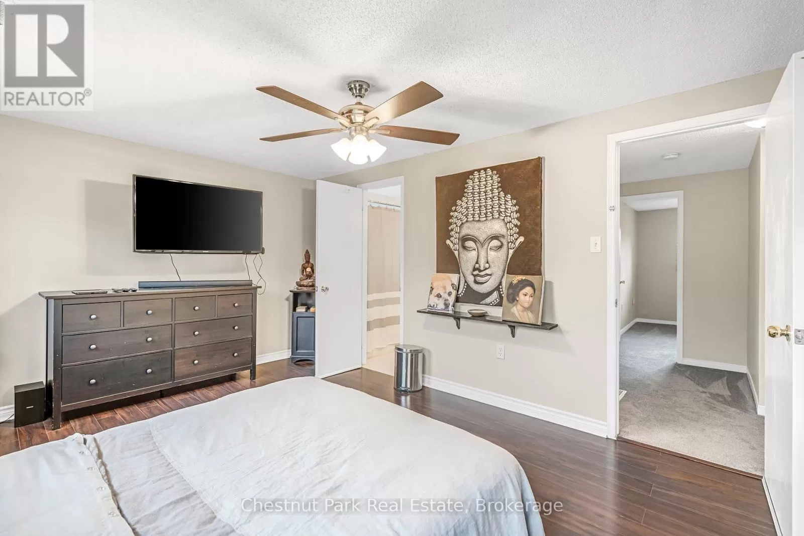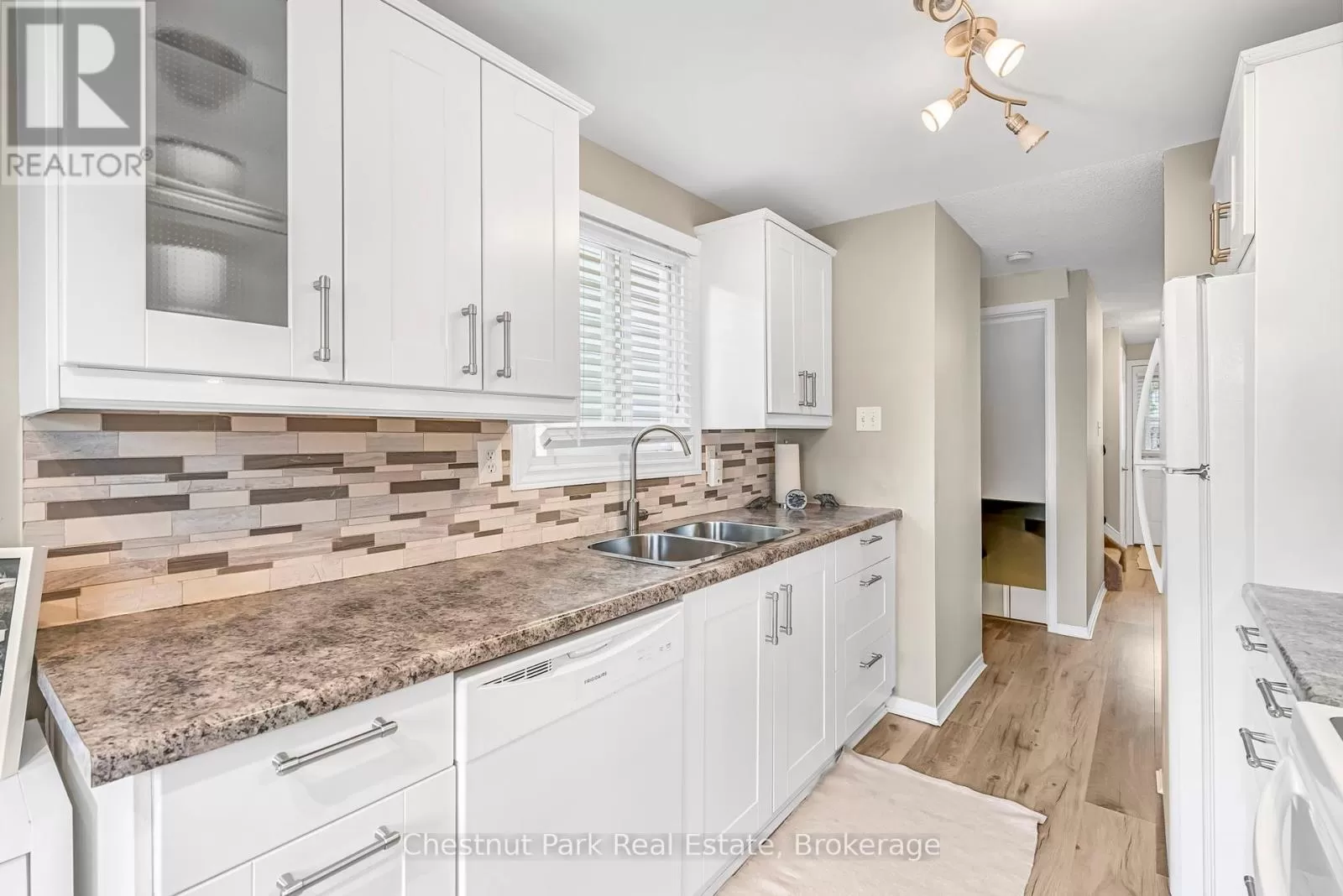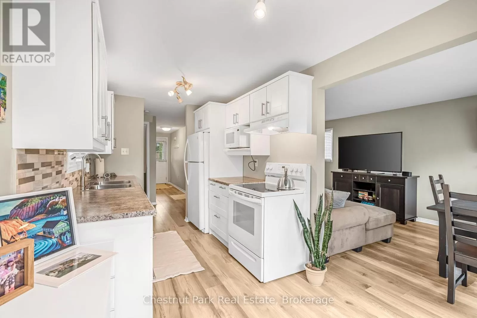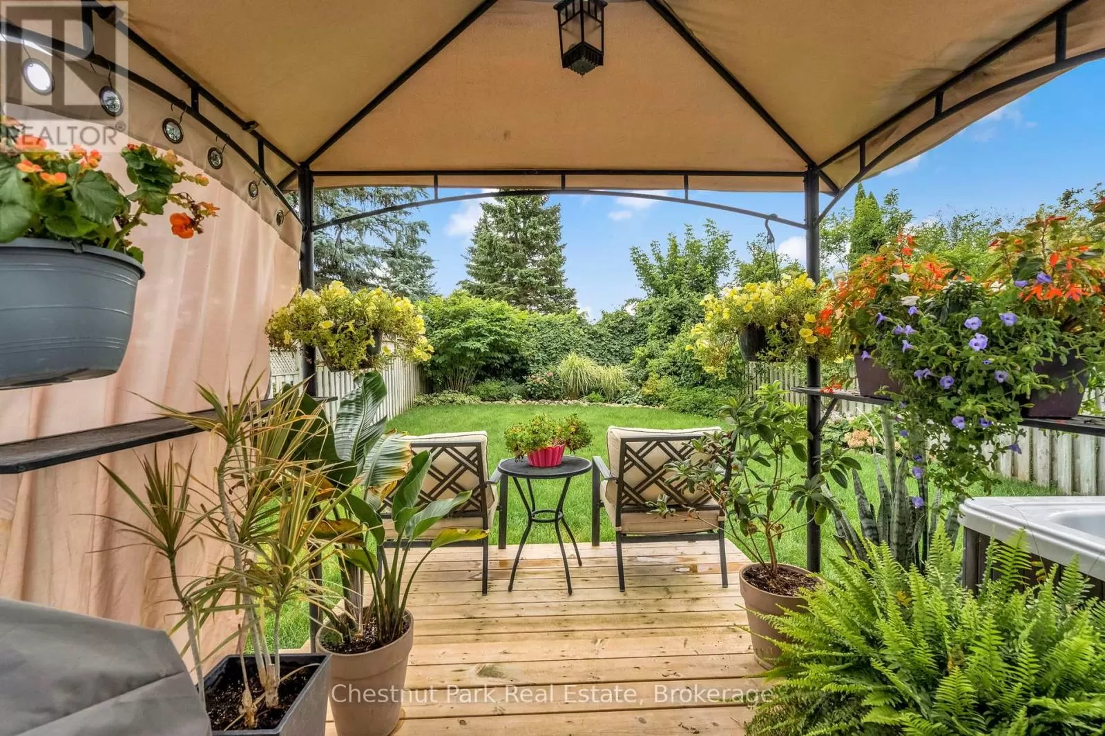 Cross Streets: Johnston Street & Maitland Drive. ** Directions: GROVE TO JOHNSTON TO HICKLING - TURN WEST TO #204. This lovely three-bedroom, two-storey home, backing onto picturesque parkland, features stunning gardens and a patio complete with a cabana-creating an ideal retreat! The property has been thoroughly renovated from top to bottom, boasting gas-forced air heating, updated windows, new carpeting on the second level, and newly constructed porches at both the front and the back. Additional highlights include a hot tub, and a fully finished basement. The main bathroom has been modernized, along with a convenient two-piece bath located on the main floor. There is also an interior entry to the garage and a paved driveway. The pride of ownership is evident both inside and out. Situated in a prime location, conveniently close to public transit, Georgian College, and RVH. Must see to truly appreciate! Some photos are virtually staged. (id:27476)