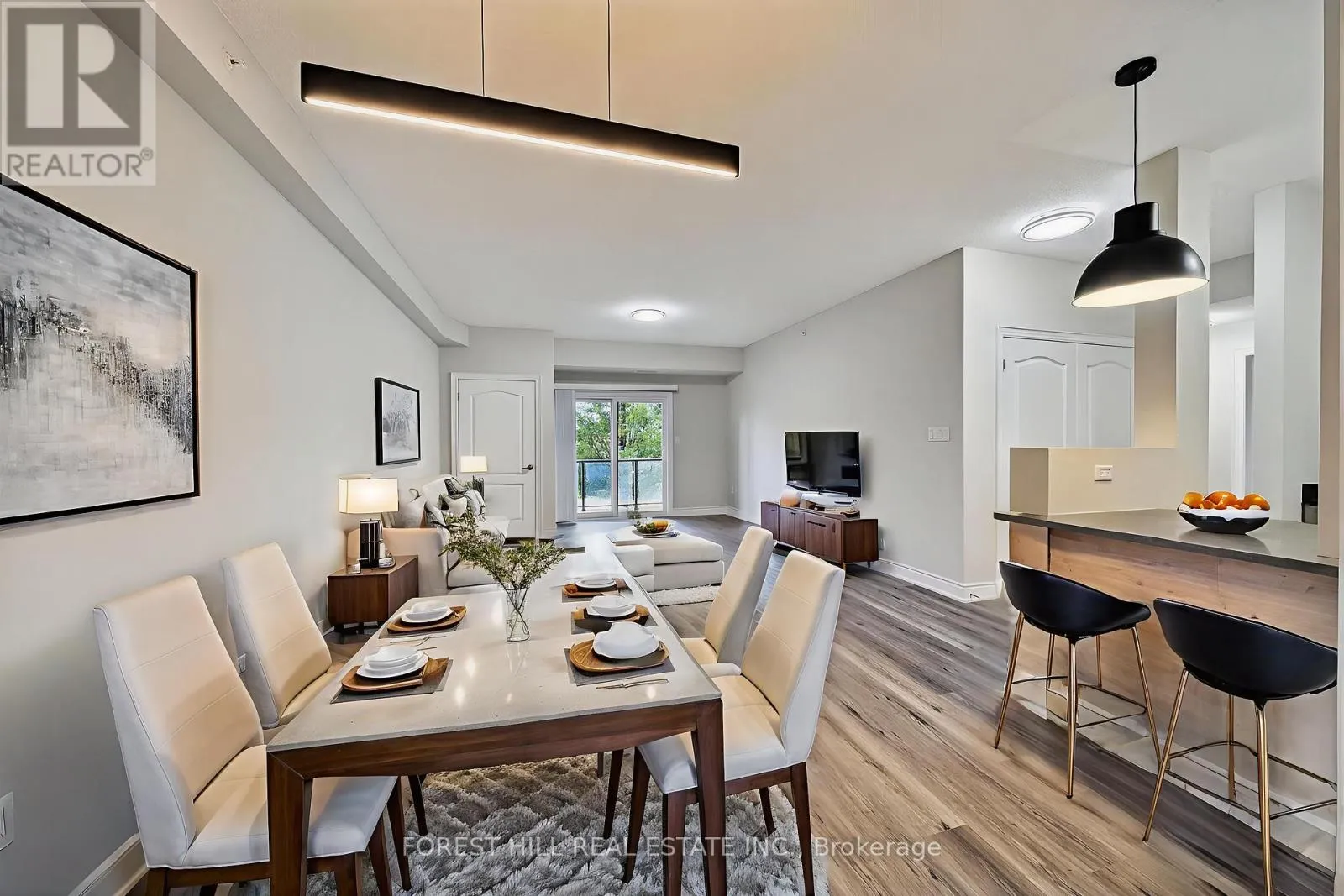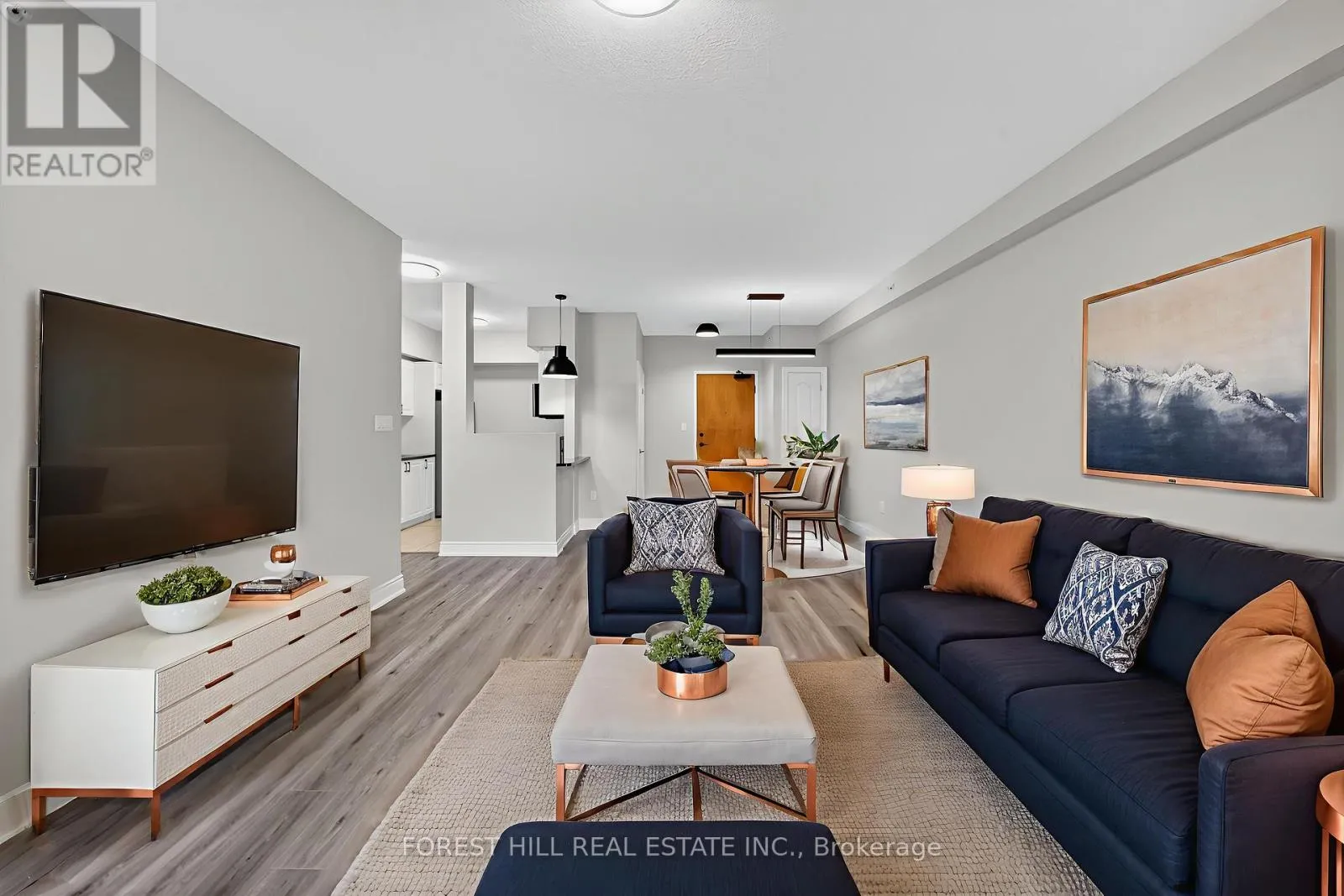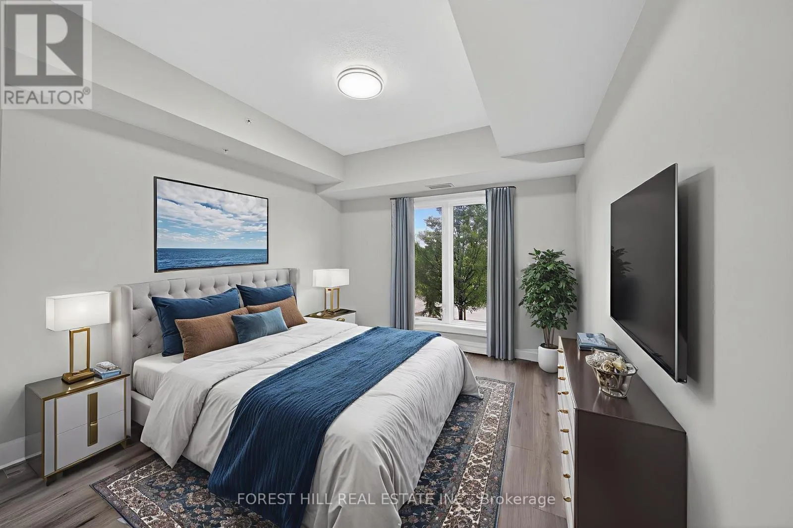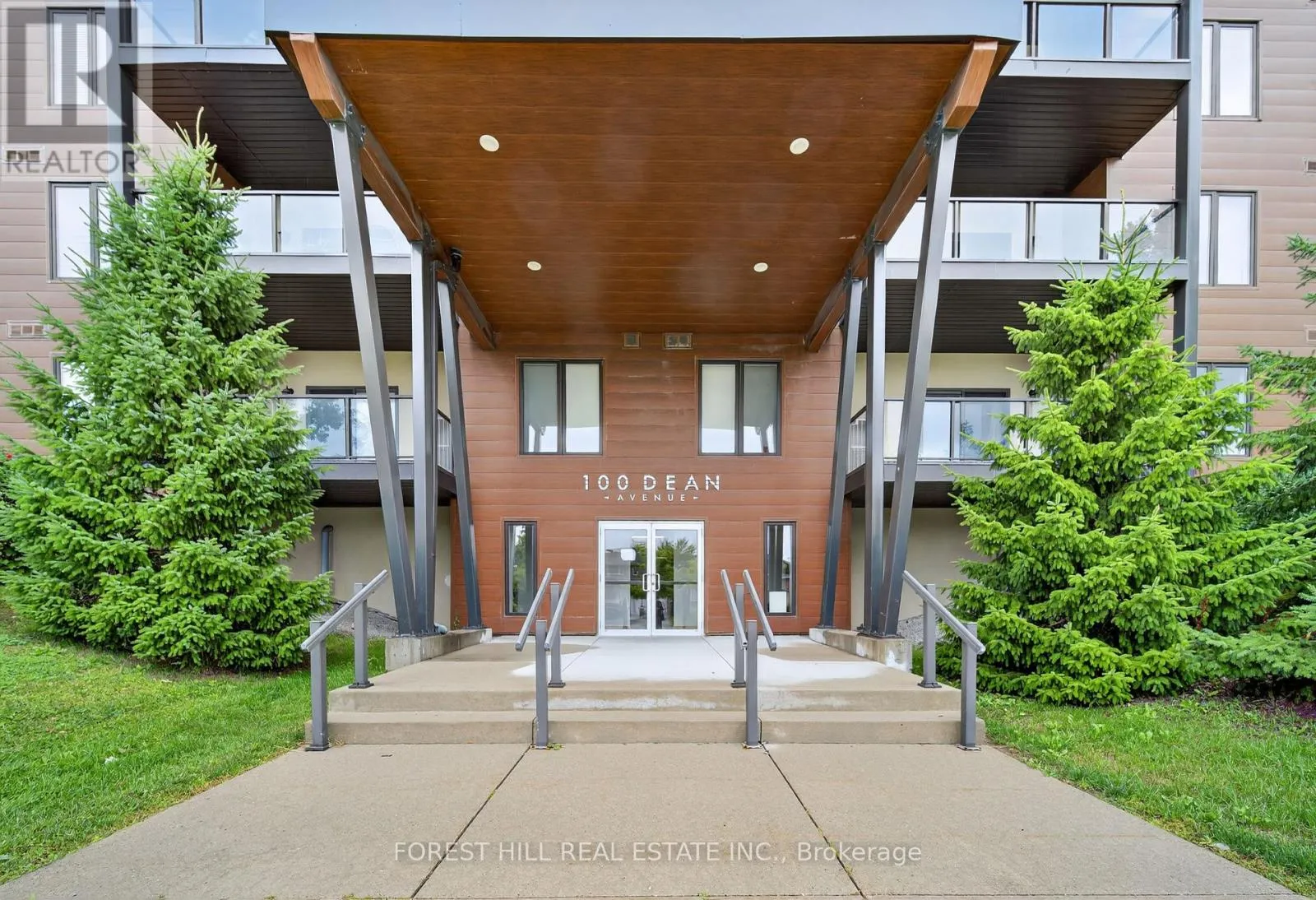 Corner Of Dean And Madeline Welcome to 100 Dean Ave unit#106! This bright and spacious 2 bedroom, 2 full bathroom condo is truly move-in ready, featuring brand new flooring throughout and a freshly painted interior for a clean, modern look. Soaring 9-foot ceilings and large windows create an airy feel and fill the home with natural light. The stylish kitchen boasts stainless steel appliances and ample counter space, flowing seamlessly into the open living and dining area- perfect for both everyday living and entertaining. The primary suite features its own walk-in closet and full ensuite bathroom, while the second spacious bedroom is ideal for guests or family. Enjoy your morning coffee or an evening unwind to your open balcony, complete with window coverings for privacy and comfort. Perfectly located just minutes from shopping malls, Highway 400, the GO Train, and scenic walking trails. This condo offers modern comfort, convenience, and an unbeatable location- all ready for you to move in and enjoy. (id:27476)