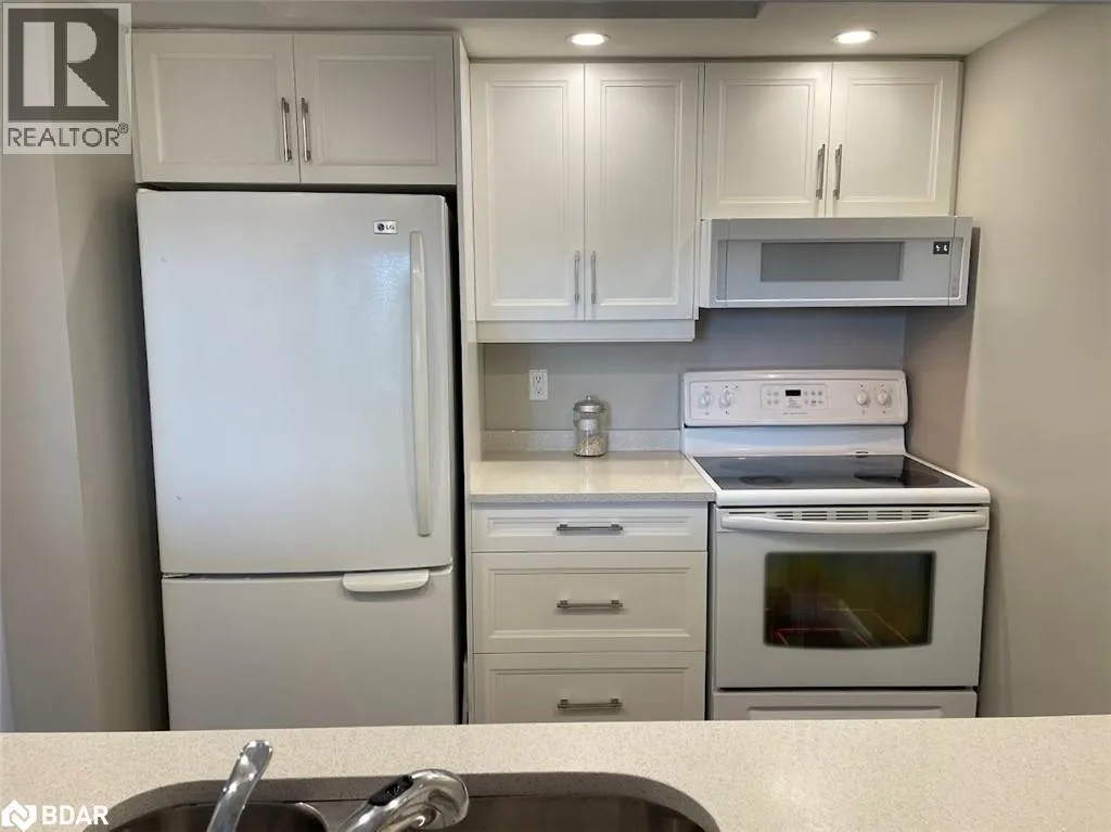 LAKESHORE TO VICTORIA TO ELLEN Welcome to your stylish and fully renovated retreat, perfectly positioned for the ultimate downtown Barrie lifestyle. This stunning 1-bedroom, 1-bathroom condo located on the 4th level offers more space than most in the building, with a well-designed layout that feels open and airy. An oversized locker is included for additional storage. Step inside to a bright, carpet-free space featuring elegant California knockdown ceilings and a seamless flow. The kitchen is a showstopper, boasting sleek white cabinets, stone countertops, and pot lights that create a clean and contemporary feel. One of the most impressive features is the large terrace, offering wide views of the water and surrounding marina. It's the ideal spot for your morning coffee or unwinding after a long day, with a view that will never get old. Living here means having the best of Barrie at your doorstep. You're just a short walk to downtown restaurants, and directly across the street from the waterfront marina, parks, and walking trails. Plus, the Go Transit station is within easy walking distance, making commuting a breeze. The building itself is a resort-style paradise, with amenities that include a security gate, indoor pool, hot tub, sauna, fully equipped gym, party and games room, library, and a guest suite for visitors. This isn't just a condo; itâs a lifestyle upgrade. Don't miss the chance to experience refined urban living with a waterfront view. Schedule your showing today! (id:27476)