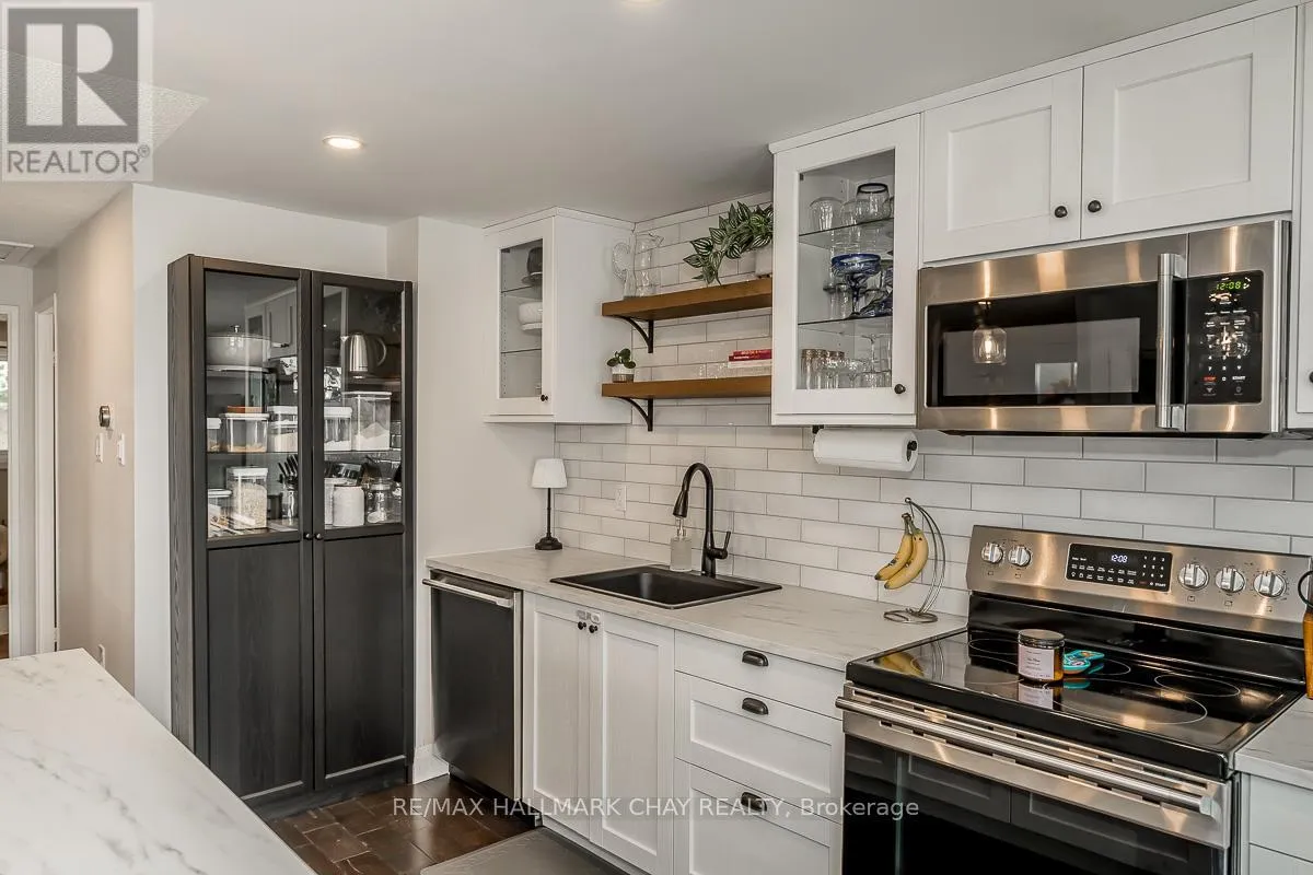 Cross Streets: Anne St. N & Letitia. ** Directions: Anne St. N to Letitia to Shaw. Welcome to this beautifully updated home in Barrie's sought-after north end, offering 2+2 bedrooms and 2 full bathrooms. The inviting open-concept main floor showcases a brand-new kitchen with modern appliances, a large island for family gatherings, and seamless flow into the living and dining areas. Natural light pours in through the newly installed windows, while upgraded pot lights throughout create a bright and welcoming atmosphere. The main bathroom has been stylishly renovated, providing a fresh and modern feel. The lower level extends your living space with two additional bedrooms and a second full bathroom, ideal for guests, in-laws, or a growing family. Step outside from the convenient side entrance to a spacious deck perfect for barbecues, entertaining, or simply relaxing in the fresh air. The fully fenced backyard offers privacy, mature trees, and a large shed for storage or hobbies. Practical features include parking for 5+ vehicles on the extra-long driveway, making it perfect for multiple drivers, trailers, or visitors. Situated just minutes from Dunlop Street and Hwy 400, commuting and access to shopping, dining, and all of Barrie's amenities couldn't be easier. This home truly combines comfort, style, and convenience in one impressive package. (id:27476)