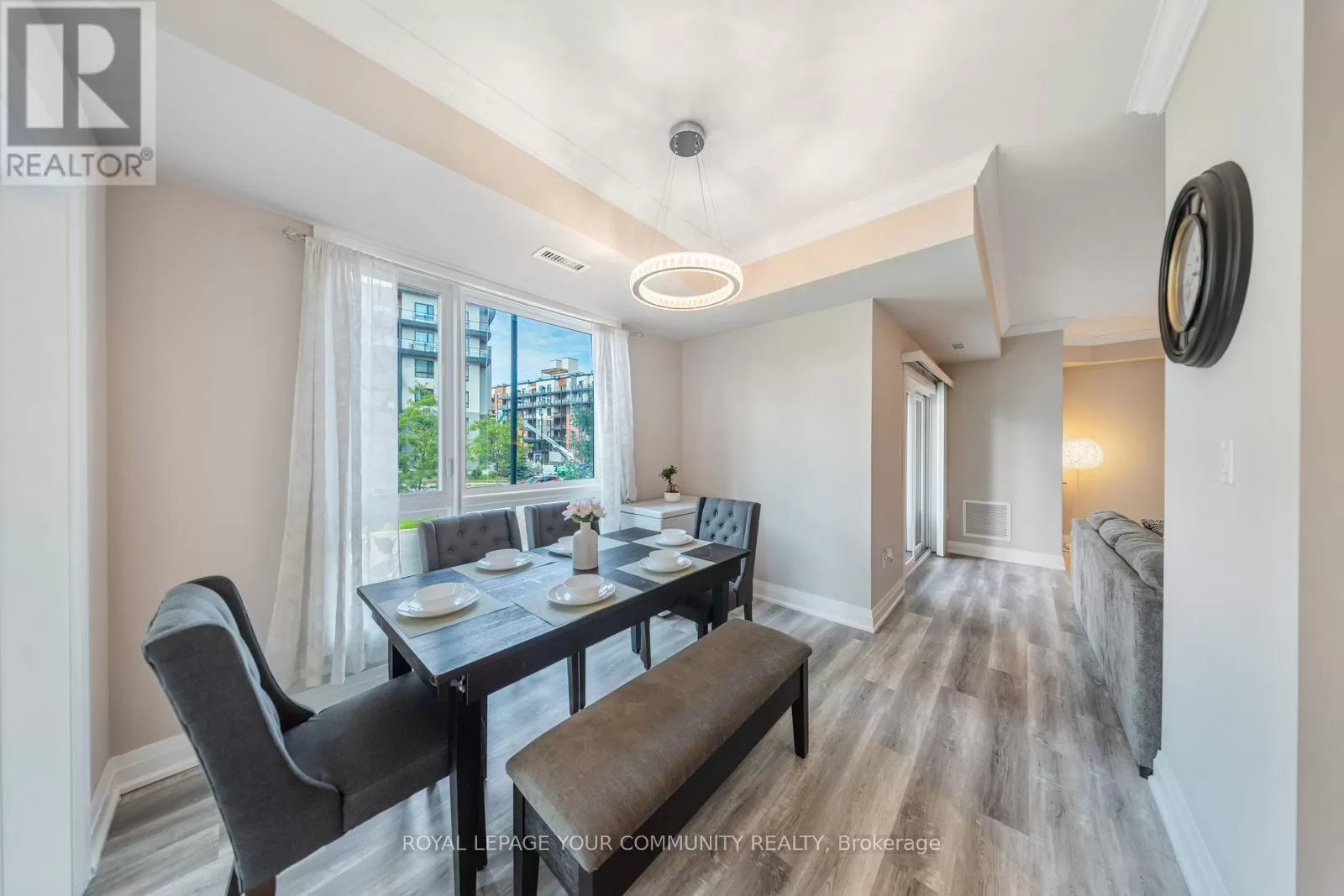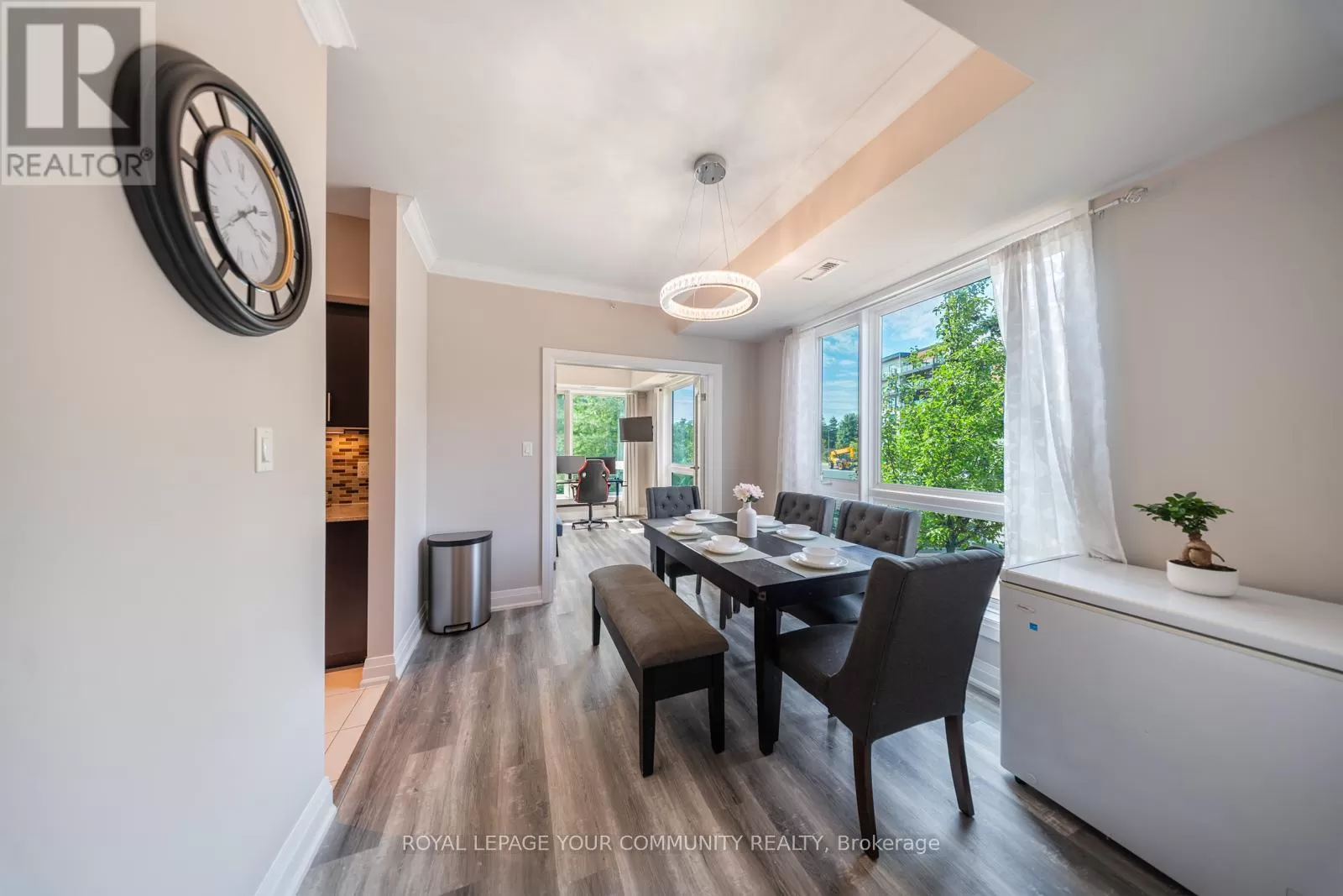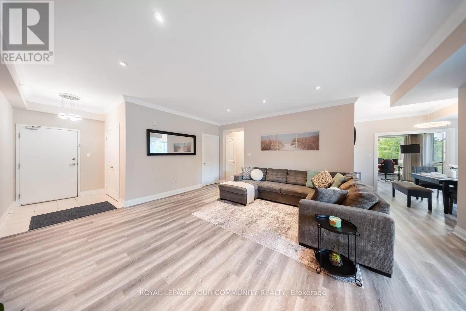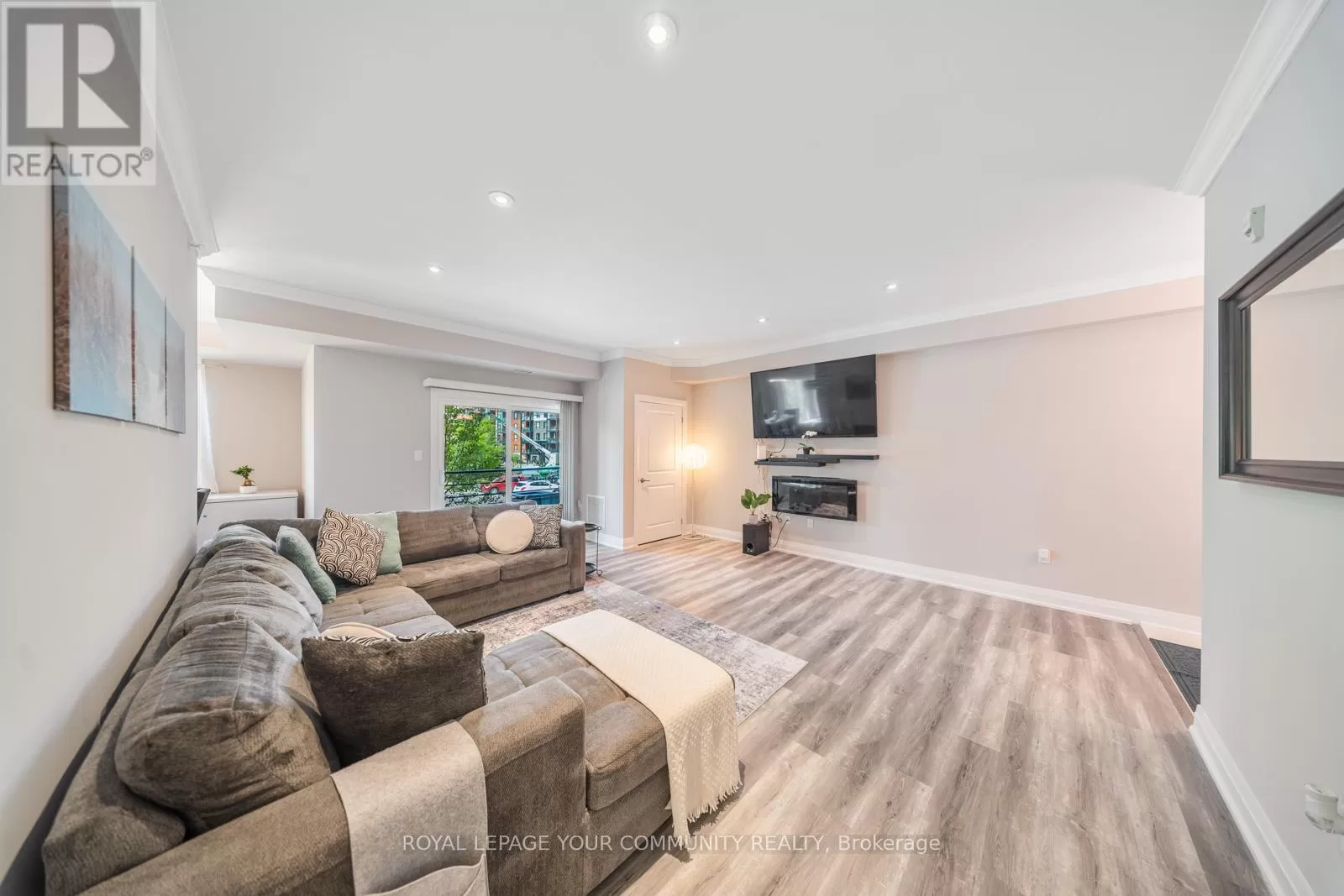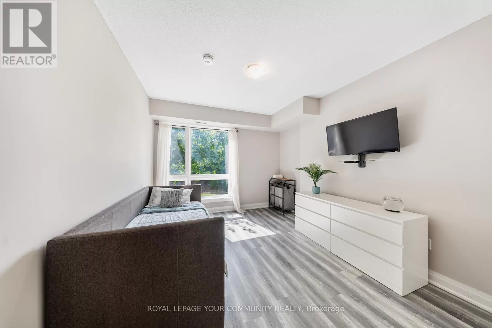 Essa Rd. and Bryne Dr. Spacious. Bright. Effortless Living. Perfect for the down sizers who want zero maintenance living. This oversized main floor unit is a rare gem offering the space of a home with the ease of condo living. Featuring 2 bedrooms plus a den, with the den easily convertible to a 3rd bedroom, this home offers exceptional flexibility for guests, hobbies, or extra living space. Ideal for down sizers, enjoy limited stairs, easy elevator access, and no more shovelling or yard work. Just lock up and go! Inside, you'll find a freshly painted, sun-filled layout with room to breathe. The modern glass shower doors (2025) add a stylish update. Your enclosed parking spot is on the main level, with a locker directly behind. No hauling groceries long distances! Step outside to a beautiful nature trail, and enjoy the convenience of shopping, dining, and Hwy 400 just minutes away. Whether you're ready to simplify or buying your first place, this bright, spacious, affordable home is the one you've been waiting for. (id:27476)