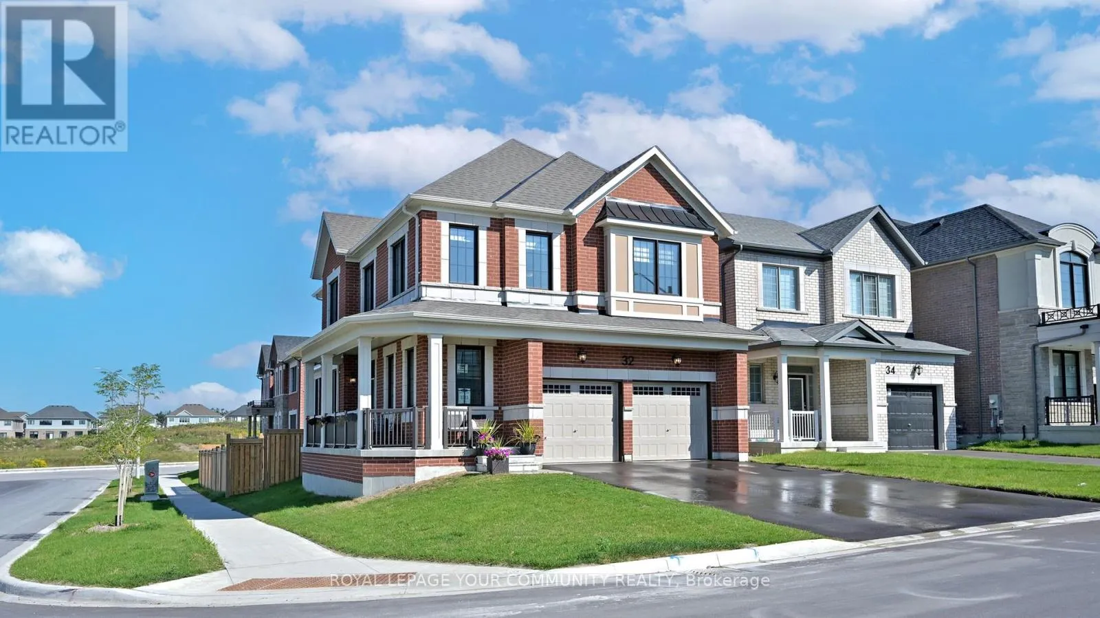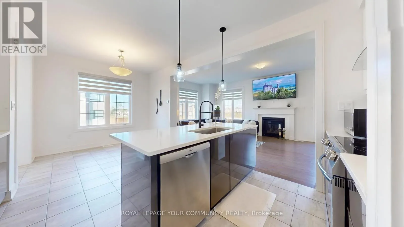 Yonge St & Lockhart Rd One-Year New Detached Family Home! Welcome to this stunning, one-year-new detached residence situated on a premium corner lot. Featuring an attached 2-car garage, a double-wide driveway, and no sidewalk, this property offers both convenience and curb appeal. Step through the inviting double-door entry into a bright, open-concept layout highlighted by 10 ft. ceilings, hardwood flooring, and custom zebra blinds throughout the main and second levels. The heart of the home is the impressive eat-in kitchen, complete with a large island with breakfast bar, quartz countertops, high-gloss cabinetry, stainless steel appliances. Cozy dining area. The open-concept living room is equally inviting, showcasing a natural gas fireplace and a walkout to the backyard. The main floor also features a stylish 2-piece bath, two closets, and direct garage access. Elegant oak stairs lead to the upper level, where the spacious primary suite awaits with a walk-in closet and a luxurious 4-piece ensuite offering dual sinks and a glass shower door. Three additional bedrooms, each with double closets plus a 4-piece main bath with dual sinks provide plenty of room for family and guests. A full, unfinished basement offers endless potential for customization and future expansion. Perfectly located near shopping, restaurants, schools, public transit, and more, this home also provides easy access to Highway 400 and Highway 27 for seamless commuting. (id:27476)