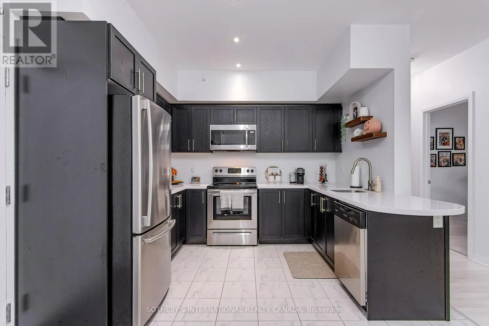 Essa Rd and Ardargh Spectacular Penthouse Unit! RARE Opportunity! Experience Luxury living in this beautiful penthouse located in South Barrie's coveted Gallery Condos. This bright and spacious 2-bedroom unit is flooded with natural light and features top-tier designer upgrades, including quartz countertop, upgraded kitchen cabinets, smooth 9' ceilings with pot lights, high-end laminate flooring, and stainless steel appliances. Step out onto the oversized balcony to take in breathtaking views. Incredible common roof top patio! Includes two parking spots, locker, and convenient en-suite laundry. Set within a serene 14-acre forested park with walking trails, and just minutes from Highway 400, the lake, GO station, grocery stores, the waterfront, downtown restaurants, and all major amenities. Amazing unit for your 1st time buyers! (id:27476)