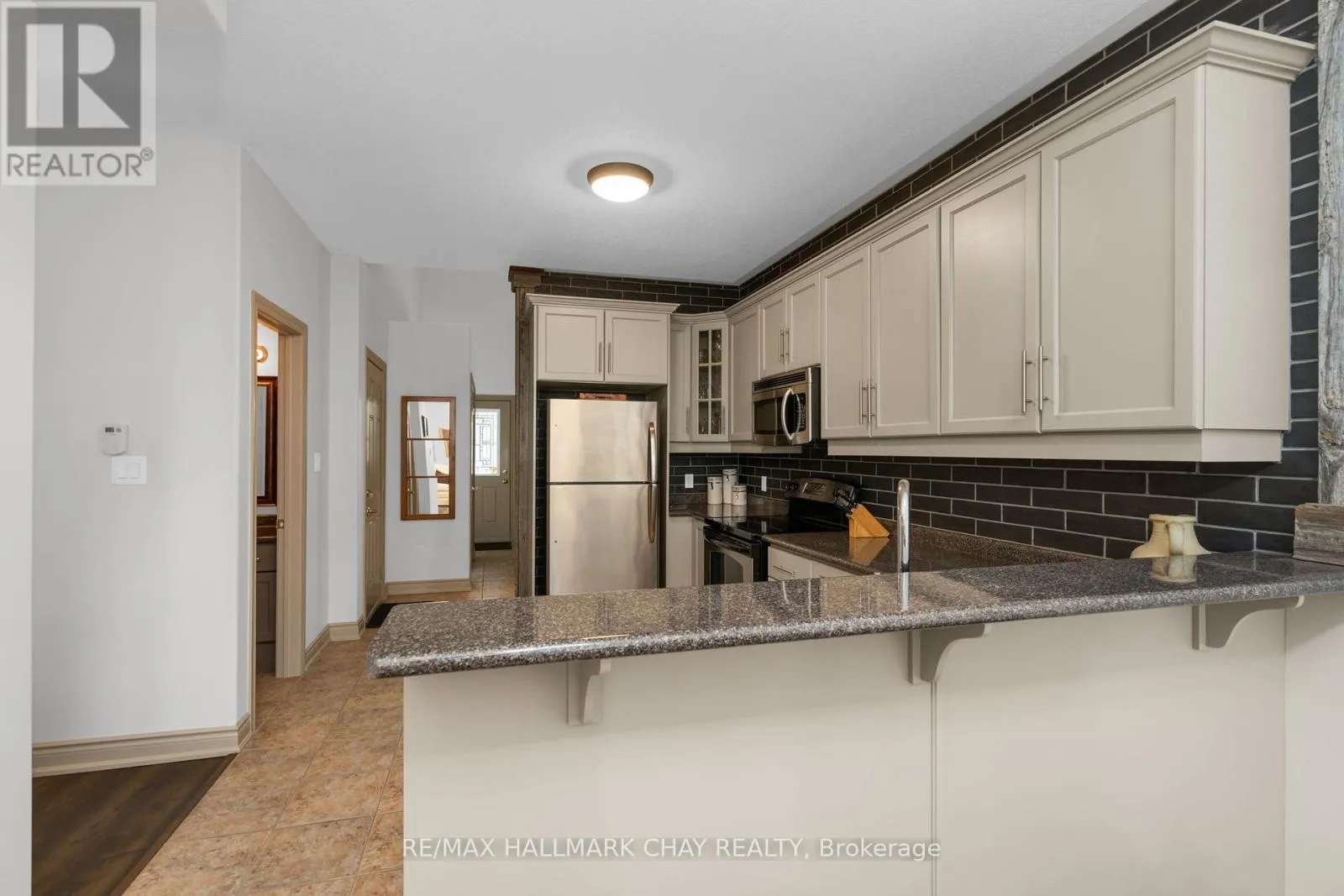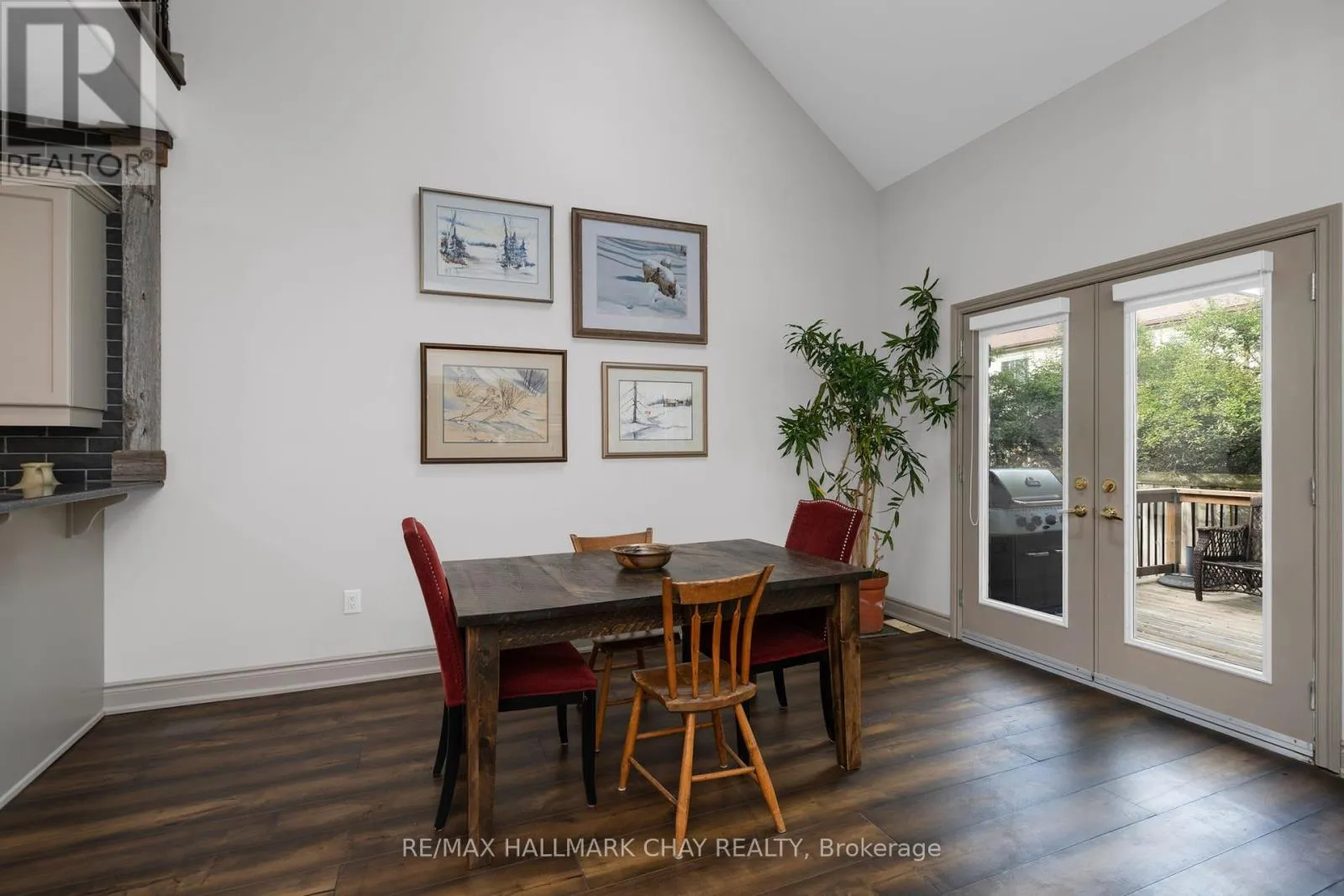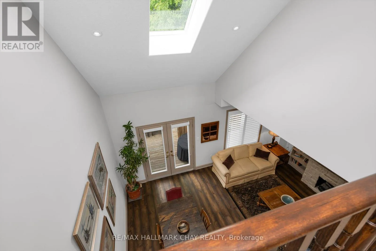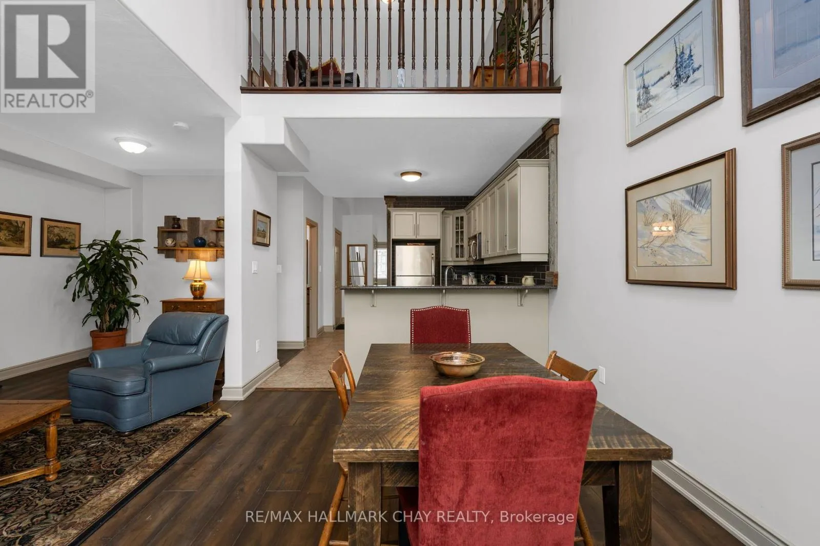 Yonge St to Huronia Rd The well kept townhouse has a great layout. Open concept living, dining and kitchen. The dining room offers vaulted ceilings with a skylight and walk out to deck. The living room has an fireplace with built in on either side. The kitchen offers stainless steel appliances. On the main level there is also a second 4 piece bathroom. The upper level has a lofted office or den space. The upper bedrooms are a good size. Plantation shutters and ceiling fans. Covered front porch and inside entry to the garage. Lower level is unfinished and has a cold cellar as well as a bathroom rough in. Nice quiet pocket of townhomes centrally located. (id:27476)