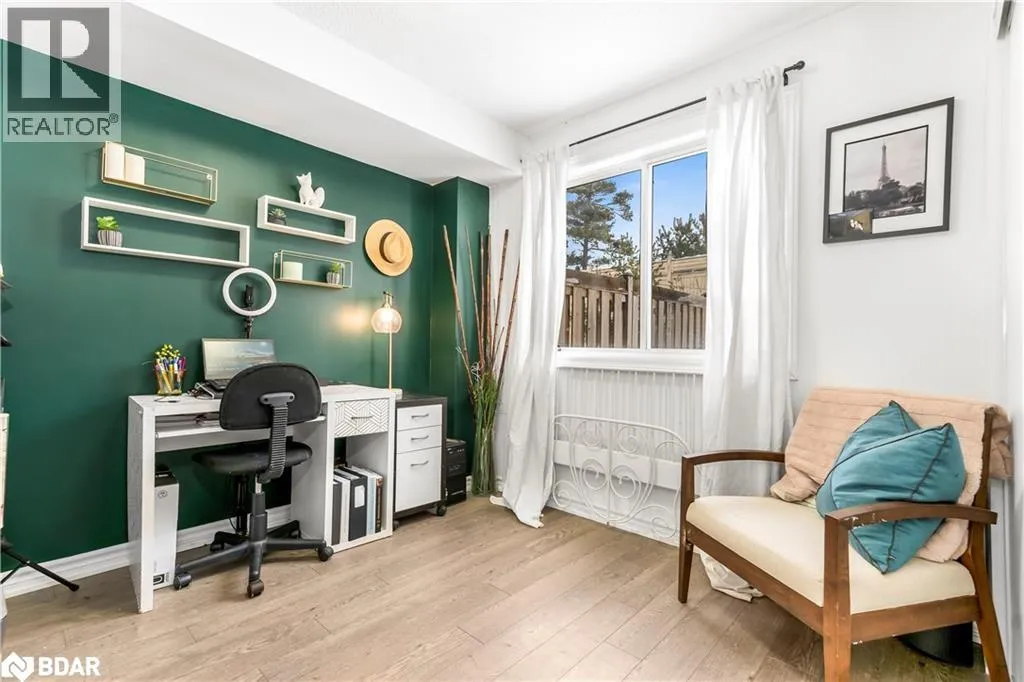 Highway 400 to Dunlop West to Ferndale Welcome to Manhattan Towns offering a desirable maintenance free lifestyle. 2 bed & 1 bath condo/town unit. Main floor features laminate & ceramic flooring throughout, open concept, living/dining & kitchen, two spacious bedrooms, 4-pc bath and in-suite laundry. This unique unit also comes with your own private backyard space (BBQ's allowed). Located in sought after Ardagh, just mins to walking trails, parks, shopping, schools & Barrie's Downtown (id:27476)