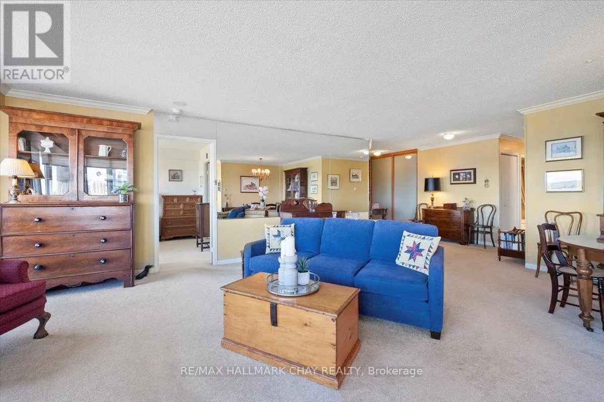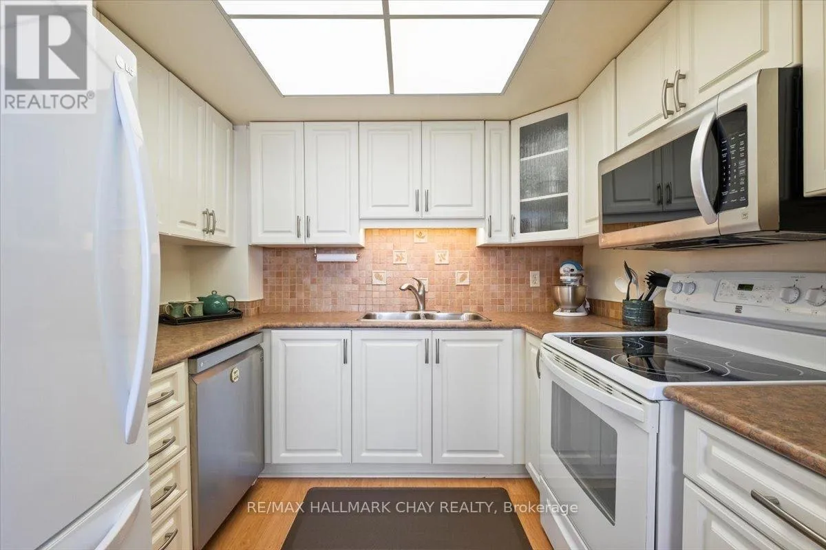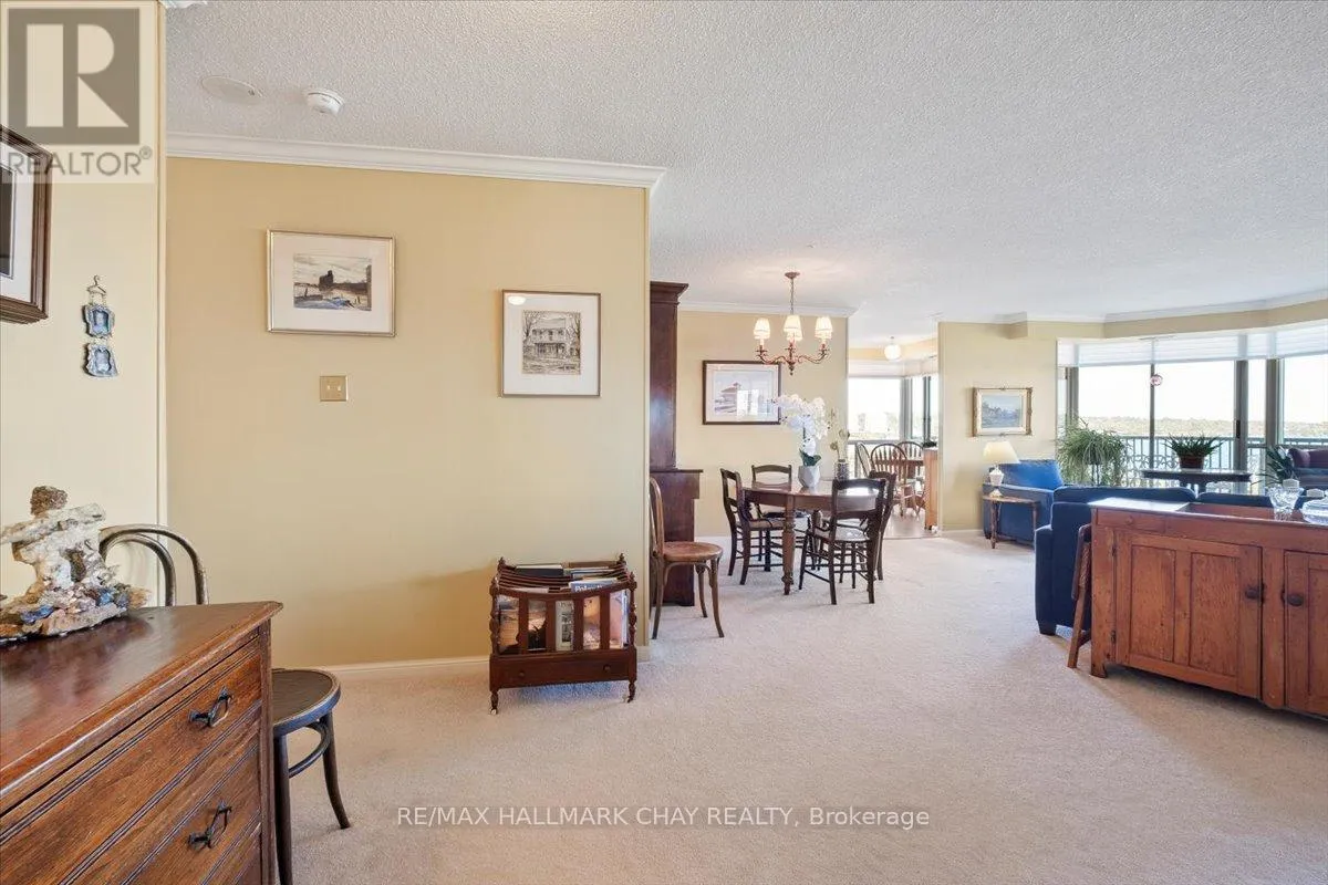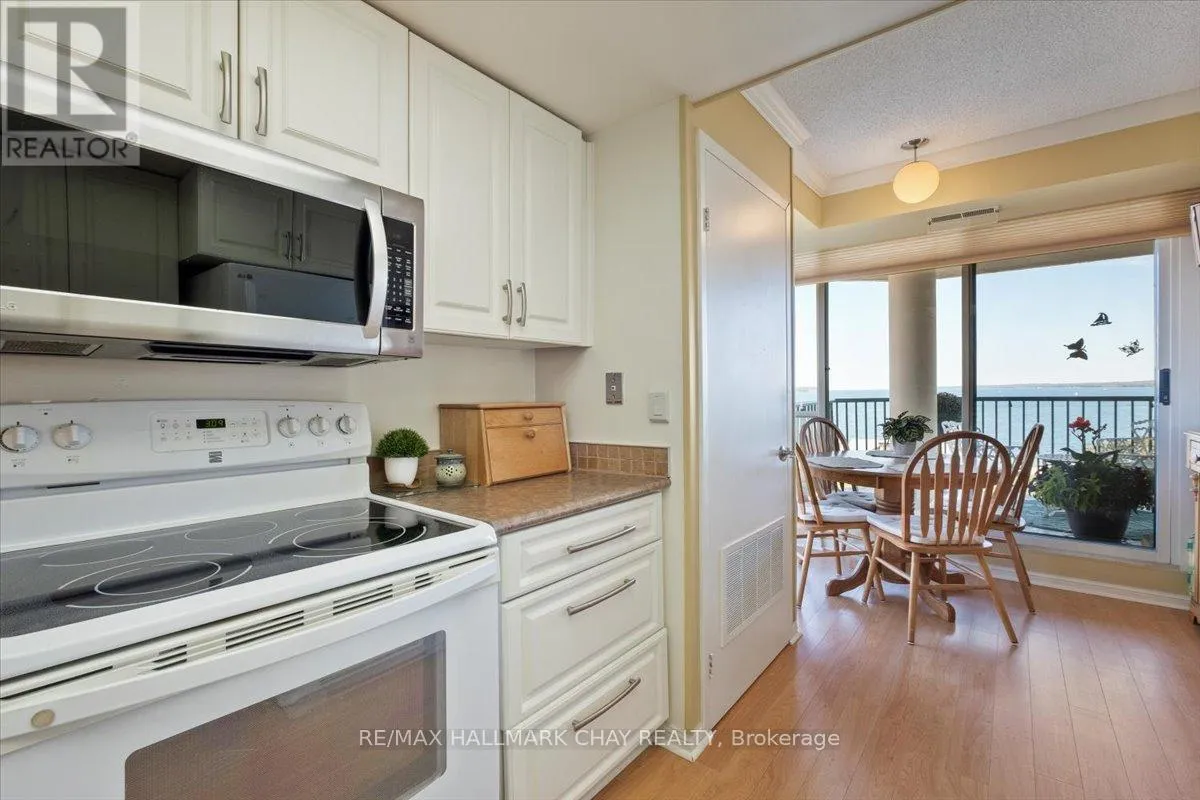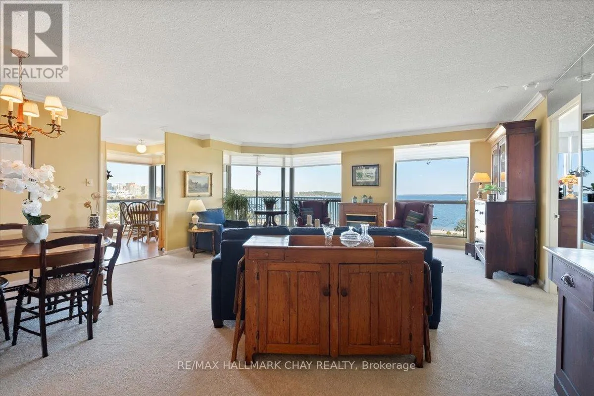 Cross Streets: Victoria to Ellen. ** Directions: Victoria St to Ellen St. Rarely offered spacious 1,602 sq ft 3-bedroom, 3-bathroom front suite with stunning panoramic water views of Kempenfelt Bay. Generous space for entertaining in style. Large dining area open to the oversized living room, floor to ceiling windows showcasing the gorgeous views, sunrises, and Barrie's beautiful waterfront. Renovated kitchen boasts stainless and white appliances, tile back splash, full height cabinets, pot drawers, double sink, laminate floors & bright breakfast area. Primary bedroom provides a stunning view, large walk-in closets, custom ensuite bath and custom vanity. 2nd bedroom is perfect for guests, & 3rd bedroom makes a great office or TV den and includes a second 2 piece ensuite & walk-through closet. Loads of storage, crown molding, lovingly cared for, front foyer closets with custom doors and neutral paint throughout. Wonderful building with many social activities, indoor pool, exercise room, sauna, hot tub, party room, billiards. Well-kept grounds, secure entry, onsite management staff, loads of visitor parking. Just steps to the beach, walking paths and downtown Barrie. Quick walk to the Go Train station. Pet friendly building. (id:27476)