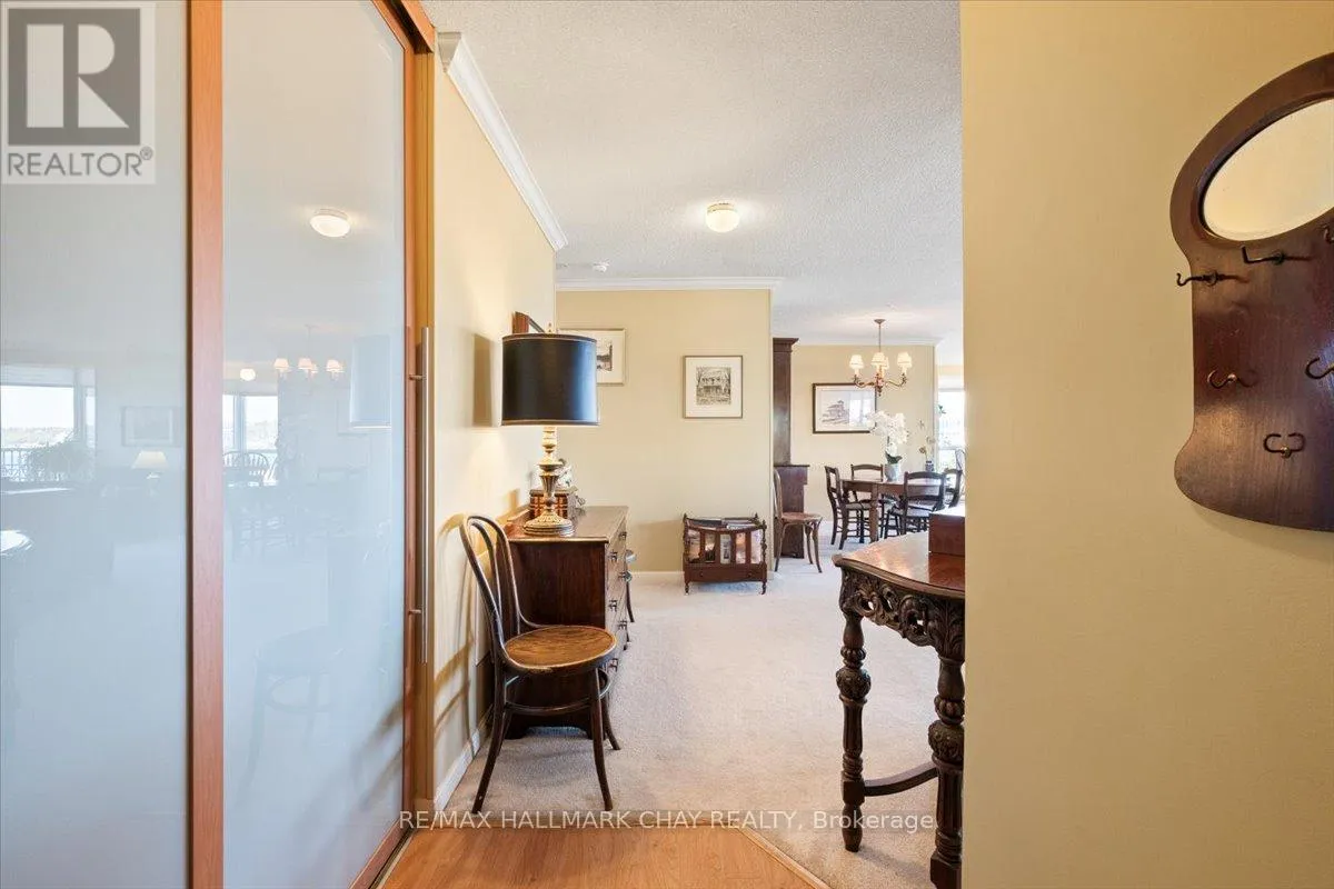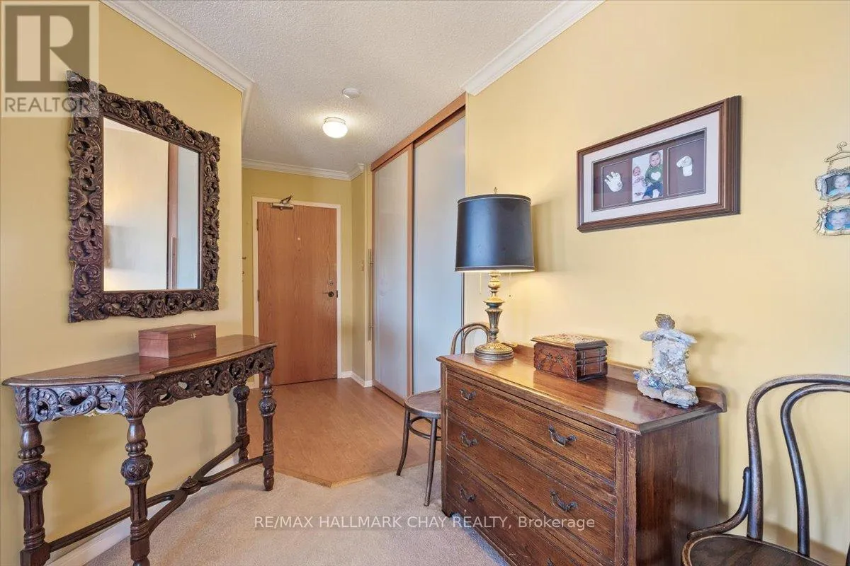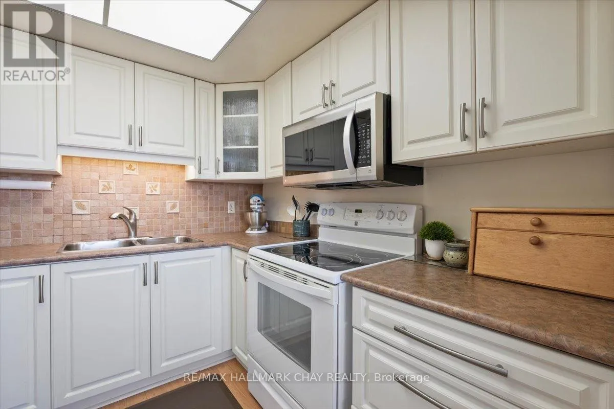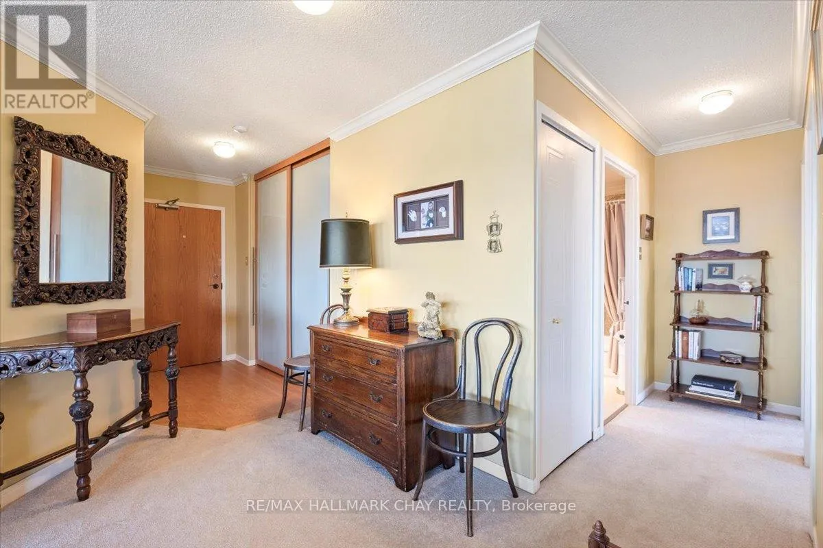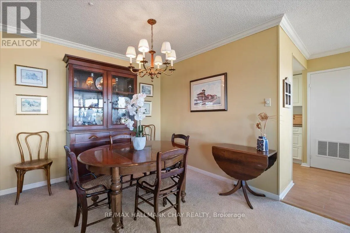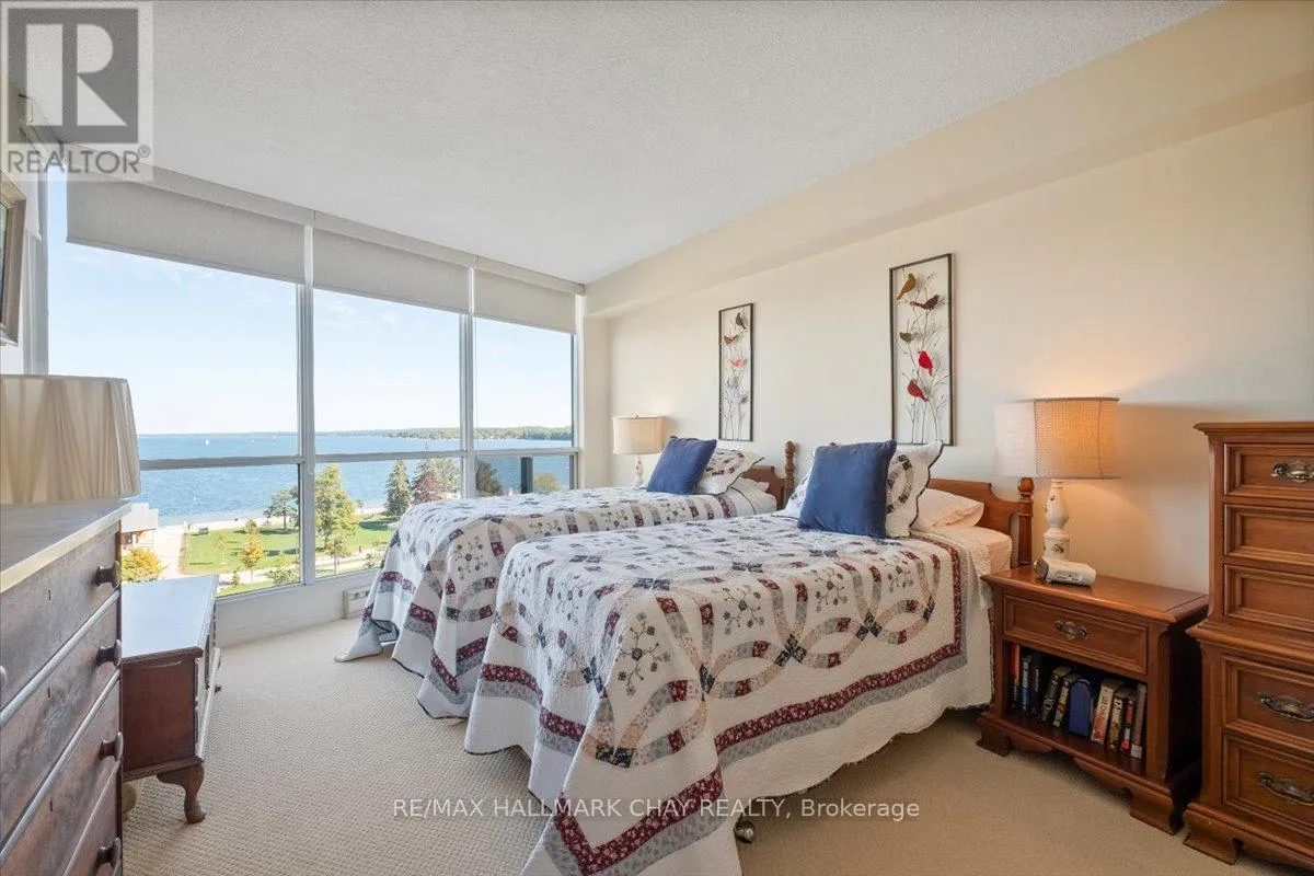 Cross Streets: Victoria to Ellen. ** Directions: Victoria St to Ellen St. Rarely offered spacious 1,602 sq ft 3-bedroom, 3-bathroom front suite with stunning panoramic water views of Kempenfelt Bay. Generous space for entertaining in style. Large dining area open to the oversized living room, floor to ceiling windows showcasing the gorgeous views, sunrises, and Barrie's beautiful waterfront. Renovated kitchen boasts stainless and white appliances, tile back splash, full height cabinets, pot drawers, double sink, laminate floors & bright breakfast area. Primary bedroom provides a stunning view, large walk-in closets, custom ensuite bath and custom vanity. 2nd bedroom is perfect for guests, & 3rd bedroom makes a great office or TV den and includes a second 2 piece ensuite & walk-through closet. Loads of storage, crown molding, lovingly cared for, front foyer closets with custom doors and neutral paint throughout. Wonderful building with many social activities, indoor pool, exercise room, sauna, hot tub, party room, billiards. Well-kept grounds, secure entry, onsite management staff, loads of visitor parking. Just steps to the beach, walking paths and downtown Barrie. Quick walk to the Go Train station. Pet friendly building. (id:27476)