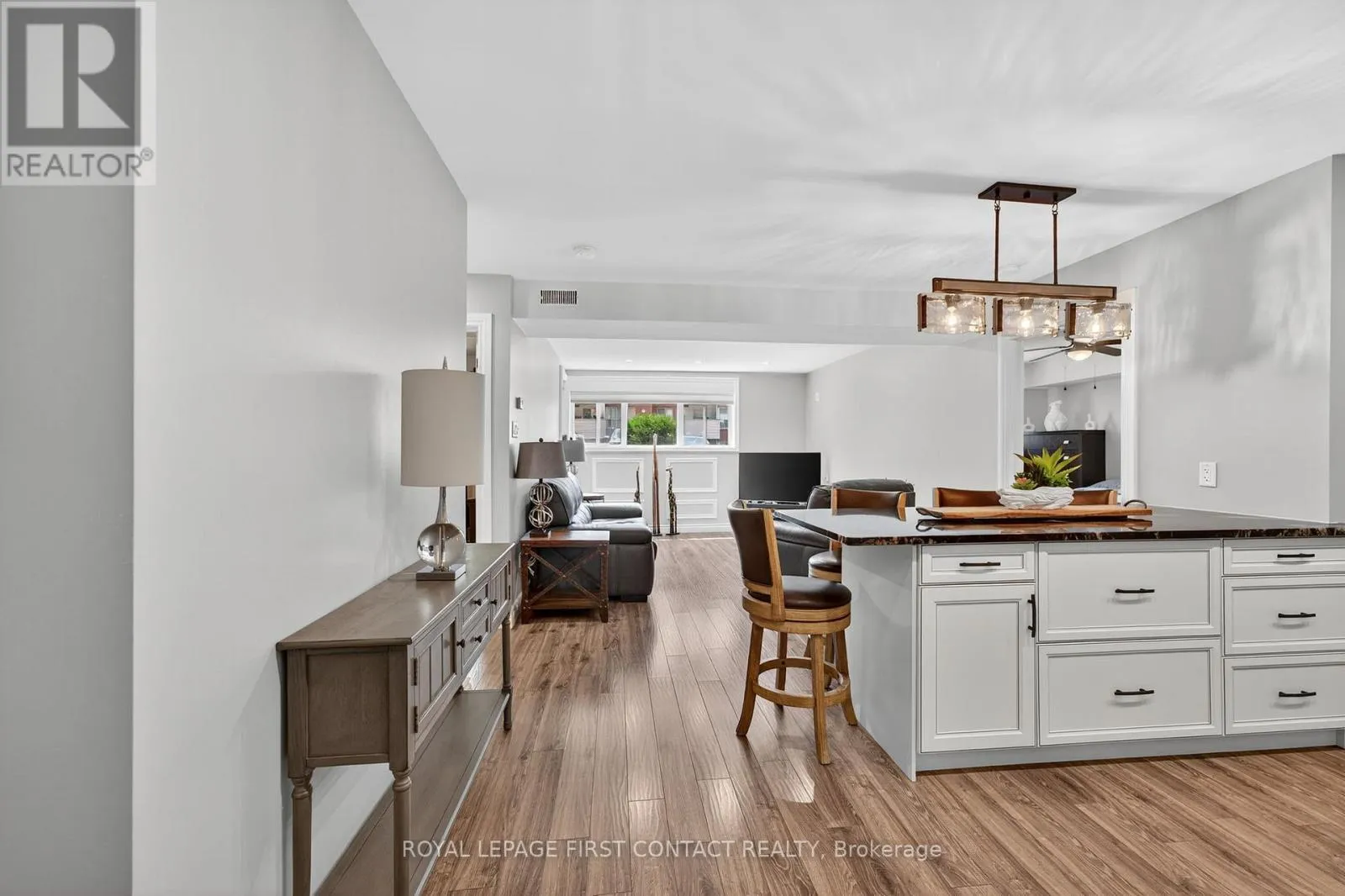 Cross Streets: Duckworth & Bell Farm. ** Directions: HWY 400 North Duckworth Exit onto Duckworth Street. This thoughtfully upgraded 930 sq ft condo is move-in ready and ideal for first-time buyers and seniors. Take advantage of this highly accessible ground-level unit, offering modern-living, a great feature for downsizers, travelers, and anyone with mobility considerations. 1-5 minutes to Georgian College, Royal Victoria Hospital, Hwy 400, shopping, and transit make this suitable for students, healthcare professionals, and commuters alike. Strong tenant demand and proximity to key amenities make this a valuable investment property, with potential to earn $1,900 to $2,100/month. Ideal layout for roommate tenants, boosting ROI. With low-maintenance living, coin laundry, and no stress of outdoor upkeep, this is a perfect alternative to a freehold. Barrie's continued growth and infrastructure investment offer strong potential for long-term appreciation! Inside, enjoy a bright open-concept layout with large windows, newly trimmed hardwood floors & carpeting, fresh paint, brand-new interior doors, and updated lighting. The beautiful modern kitchen features new S/S appliances, granite countertops, a stylish backsplash, and a newly installed island for added dining and prep space. (id:27476)