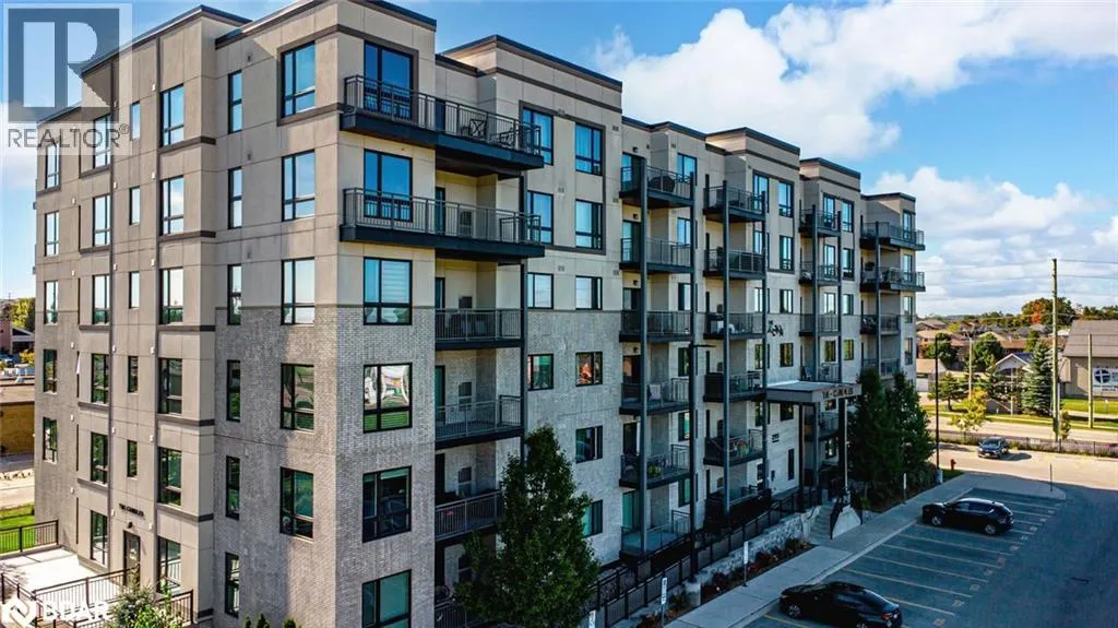 Hwy 400/Cundles Rd E MODERN 2 BEDROOM + DEN WITH LARGE BALCONY, SKYLINE VIEWS, IN-SUITE LAUNDRY & WALKABLE AMENITIES! The Junction Condos puts you in the middle of Barrieâs north end, where shopping, dining, entertainment and daily essentials are just steps away. This 2-bedroom plus den suite offers over 1,080 square feet of bright, open living with 9-foot ceilings, updated flooring and a large balcony that frames skyline views and makes summer barbecues a breeze. The kitchen stands out with white cabinetry, complementary counters and stainless steel appliances, while the den adds flexible space for a home office or guests. Both bedrooms feature double closets, with the primary retreat boasting a modern 3-piece ensuite with a glass-walled shower. A 4-piece main bath, in-suite laundry, an owned water softener, parking at your front door, ample visitor parking and pet-friendly living complete the package. Condo fees include water, parking, common elements, and building insurance for ease of ownership. With Georgian College, RVH and Highway 400 just minutes away, this is low-maintenance living in one of Barrieâs most walkable locations. (id:27476)