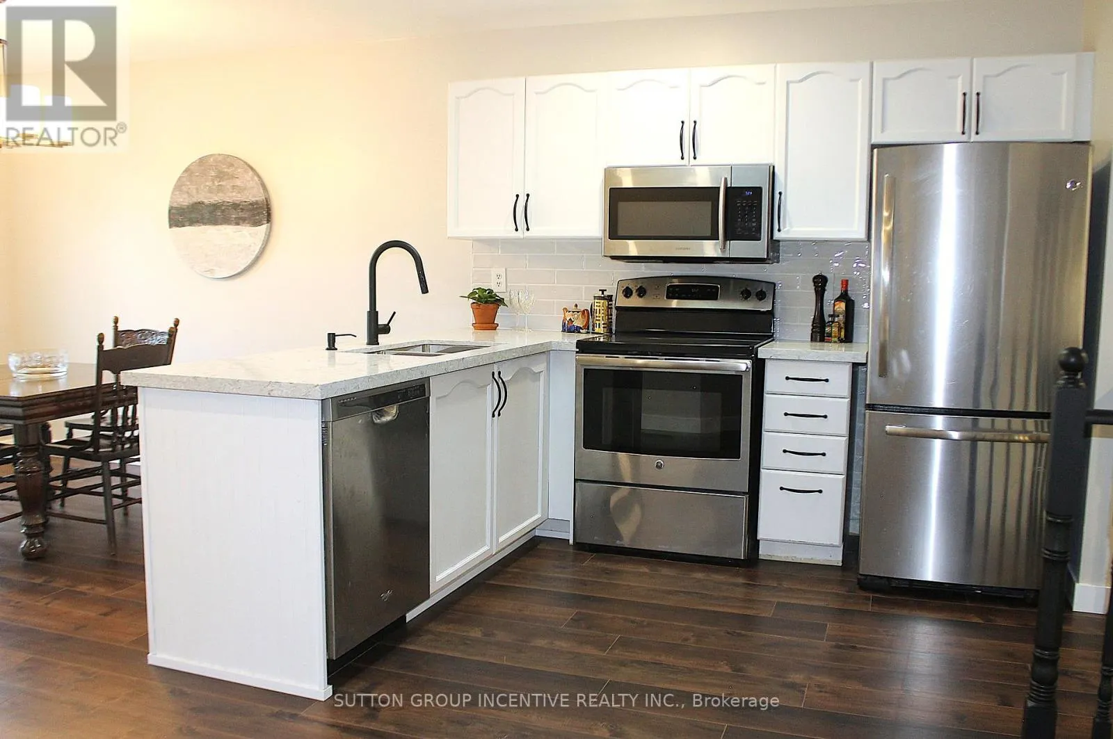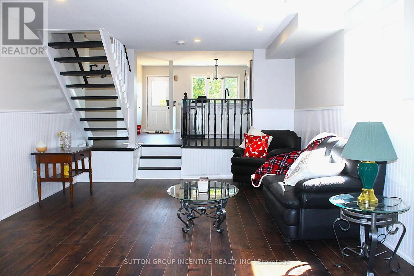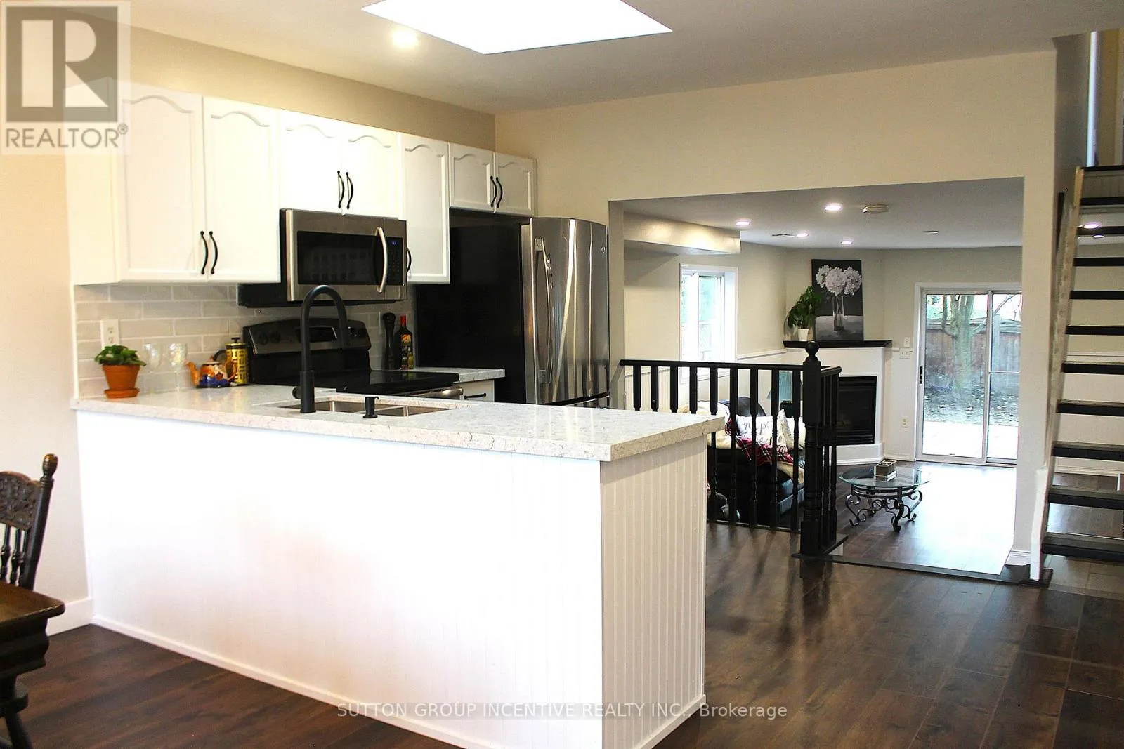 Cross Streets: Lougheed/Assiniboine. ** Directions: Mapleview to Lougheed to Assiniboine. Newly renovated open concept 3 level back split, located in popular Holly Meadows area of Barrie, conveniently located for easy commuting, close to all amenities. This great home on a quiet family court has undergone extensive renovations. Entire home freshly painted, popcorn ceiling on main & second level has been removed for a fresh, clean look. Brand new flooring on main & second level, new lighting fixtures throughout, updated hardware, new front deck boards & stairs. The front entrance welcomes you to open concept living to the kitchen/dining area with brand new quartz counter & modern sink, leading to Ground level spacious family room, gas fireplace and entrance to private back yard, fully fenced in for privacy and full sized deck for entertaining, with no neighbours behind. Updated powder room with new marble ceramic flooring, lighting, fixtures and vanity. Convenience of main floor laundry and additional living space for a den/office or play area for the family, convenient second entrance to the back yard completes this level. Third level offers 3 bedrooms, spacious master with walk in closet, semi en suite, freshly reno'd 4pc bath with marble ceramic flooring, new vanity, new bath fixtures & new lighting. Brand new central air and the complete yard with new seeded top soil to give you a fresh new, green lawn. Front driveway with interlocking brick and inside entry from the garage. This home is move in ready for immediate possession. Don't miss out on this one. Book your private showing today! (id:27476)