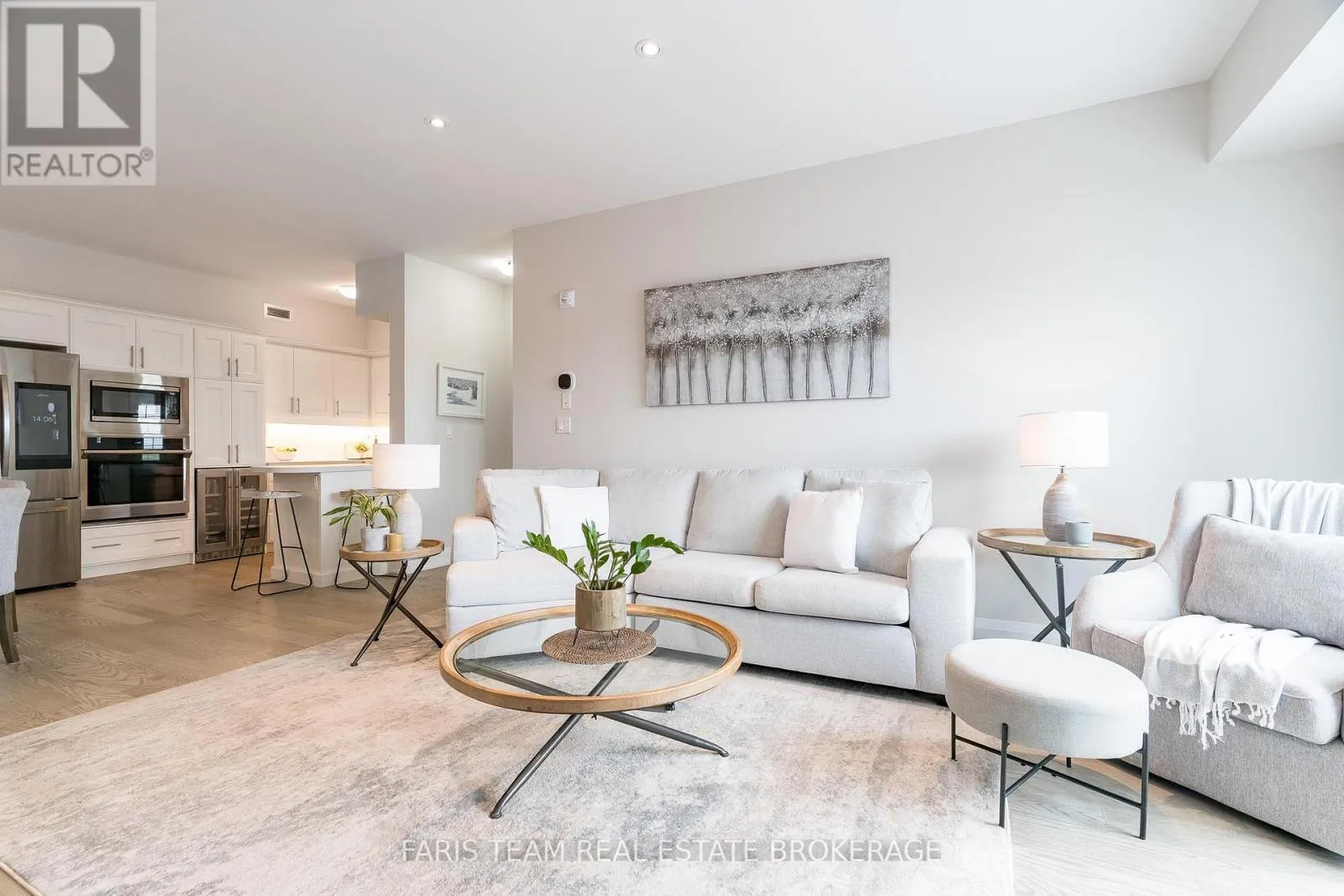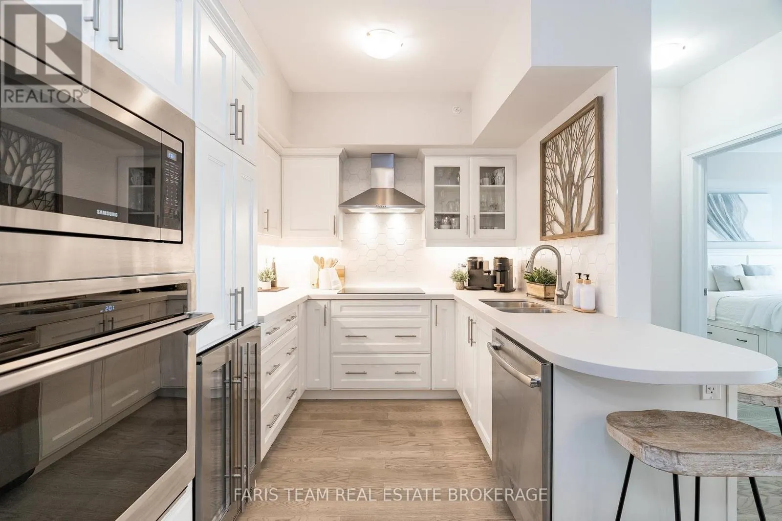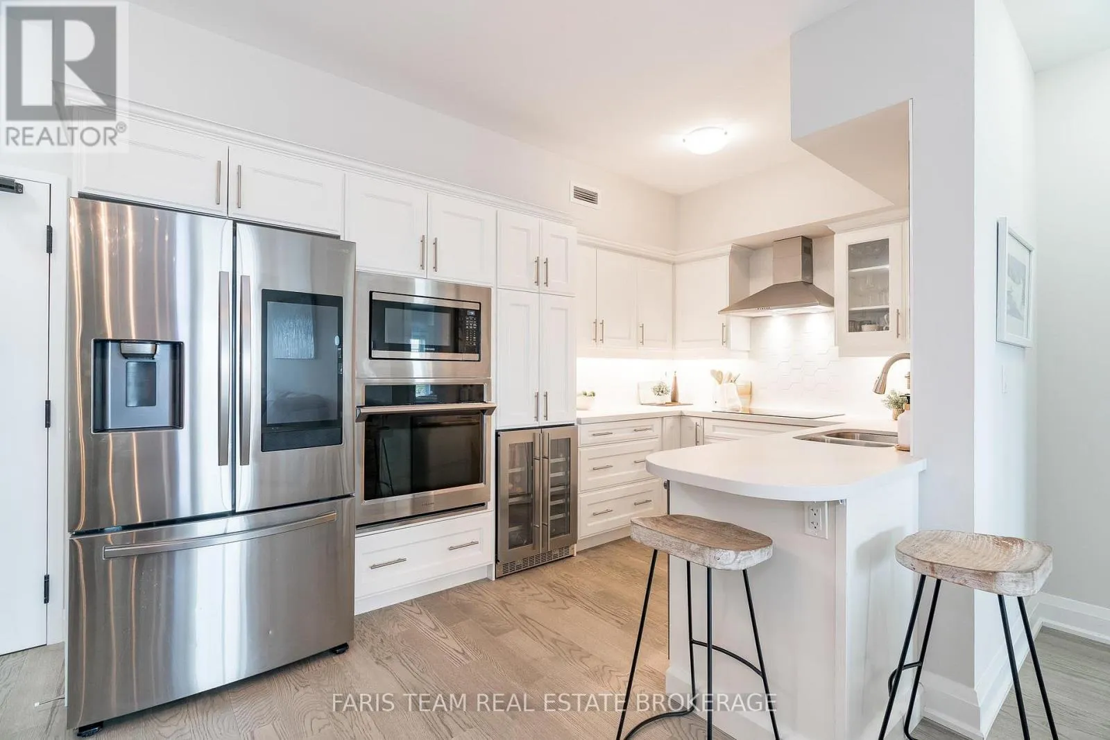 Essa Rd/ Koda St Top 5 Reasons You Will Love This Condo: 1) Step inside this beautifully updated condo and be welcomed by stylish open-concept living, where gleaming hardwood floors, quartz countertops, and contemporary finishes create a space that feels both elegant and inviting 2) At the heart of the condo, the kitchen is designed to impress with quartz counters, a chic backsplash, under-cabinet lighting, stainless-steel appliances, and smart technology, including a connected fridge and oven that make entertaining effortless 3) Unwind in the spacious primary bedroom, thoughtfully appointed with double closets and a luxurious ensuite featuring a step-in shower and quartz countertops 4) The second bedroom offers versatility and comfort with its generous size and walk-in closet, which is perfect for overnight guests, a dedicated home office, or extra storage 5) Rounding out this incredible unit are two parking spaces, one surface level and one underground, with a dedicated EV outlet, along with one of the largest storage units in the building, double the depth for all your seasonal or bulky items, all just minutes from Highway 400, shopping, and daily conveniences. 1,163 above grade sq.ft. (id:27476)