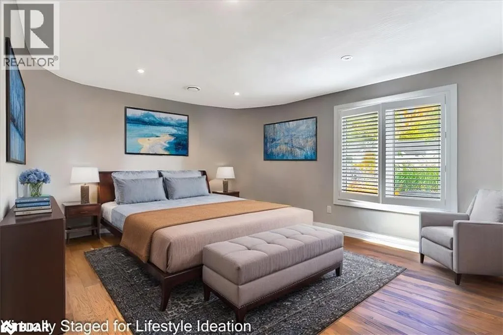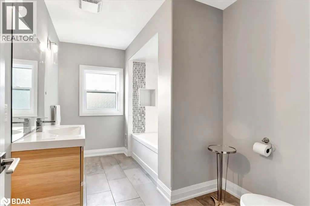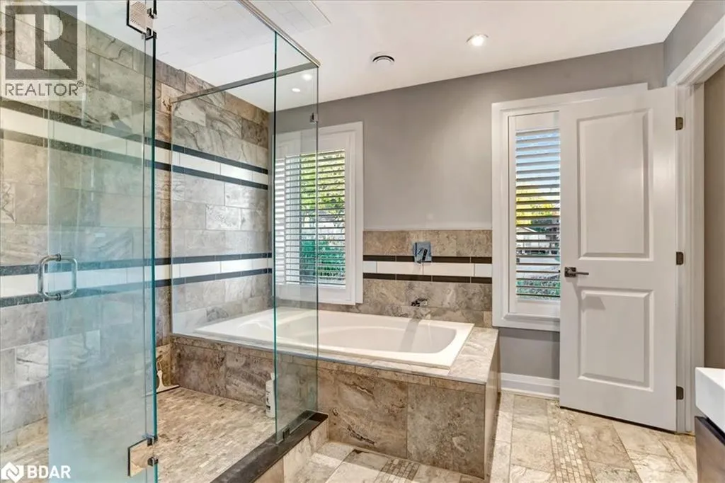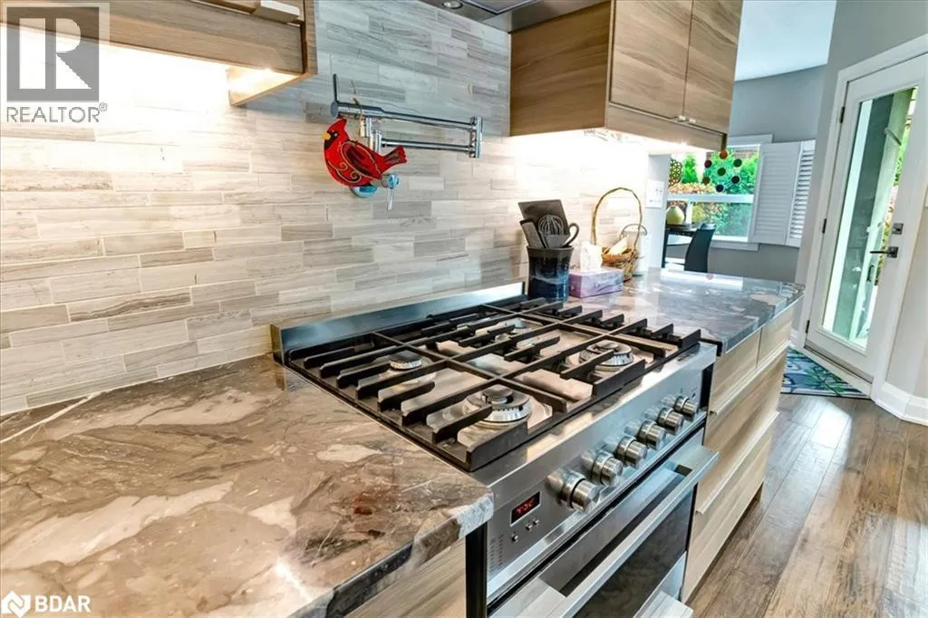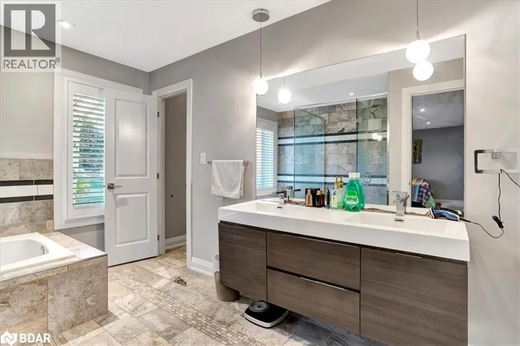 CODRINGTON ST TO COOK ST Unique Custom Sprawling Modern Bungalow with Inground Pool, and triple car garage - ideally located in Barrieâs East Endâs Exclusive Area of Fine Homes situated on a 110ft x 185ft lot. This home exudes curb appeal, and interior beams with sophisticated architectural beauty and designer custom finishes. Features 5 bedrooms, 3 bathrooms, and 10ft ceilings. The very bright open concept layout offers over 3000sqft of living space on one level â âno stairsâ and is wheelchair accessible. The kitchen is a chefâs dream, complete with a large island, quartz counters, pot filler tap, stainless steel appliances & gorgeous tile backsplash and large pantry. The formal oversize dining area looks amazing with a round table. The spacious primary bedroom has an ex-large walk-in closet & 5-piece ensuite with double sinks, glass shower & soaker tub. Enjoy outdoor activities on the canopied patio which allows for all year around barbecuing. The massive beautiful landscaped fenced yard has a (19' x 38â) gas heated inground pool- with a 5âdeepend and a slide, installed 2 years ago. The double garage has an additional side by side single garage with inside entry to the home. Walking distance to nature trails, downtown, shops and restaurants; close proximity to RVH, Kempenfelt Bay, makes this is a perfect family home. (id:27476)
