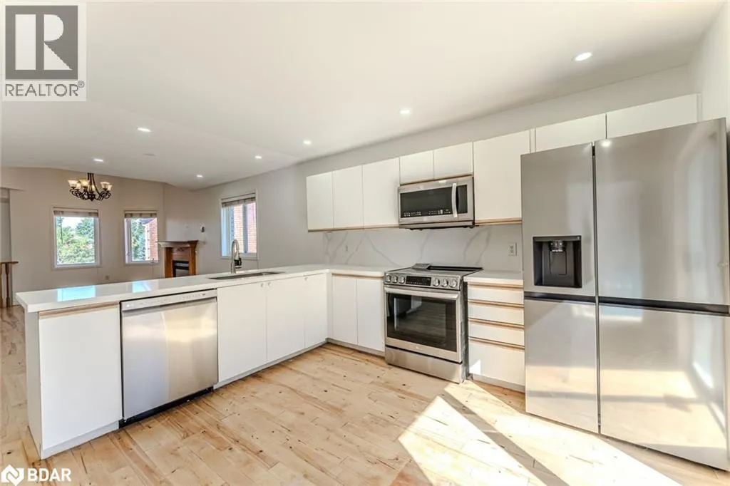 Livingstone St E/Snowy Owl Cres/Golden Eagle Way/Kestrel Ct BEAUTIFULLY UPDATED UPPER UNIT WITH AN OPEN LAYOUT, EXCLUSIVE YARD & GARAGE ACCESS, & A CENTRAL LOCATION CLOSE TO IT ALL! Step into this newly updated upper unit, perfectly placed on a peaceful court in Barrieâs northeast end where comfort meets convenience. Surrounded by schools, parks, shopping along Bayfield Street, RVH, Georgian College, transit, and quick Highway 400 access, this location makes daily life effortless. Spend your weekends exploring nearby Johnsonâs Beach, hiking scenic trails, or enjoying year-round activities at the Barrie Community Sports Complex, East Bayfield Community Centre, Barrie Sports Dome, Pickleplex, or the Barrie Country Club. At home, enjoy the private use of a fully fenced backyard with a spacious deck, along with exclusive parking for two in the garage, plus additional driveway spaces. Inside, the open concept living and dining area is anchored by a cozy fireplace, while the beautifully renovated kitchen invites gatherings with its direct walkout to the deck for outdoor dining. Three comfortable bedrooms provide plenty of space, highlighted by a primary retreat with a walk-in closet, 2-piece ensuite, and private deck access, alongside a bright 4-piece bathroom for family or guests. Stylish hardwood floors run through the main living area, and the completely carpet-free design adds a fresh, contemporary touch, while shared on-site laundry ensures everyday ease. Whether itâs hosting friends, relaxing with family, or exploring the best of Barrie, this exceptional unit is ready to welcome you! (id:27476)