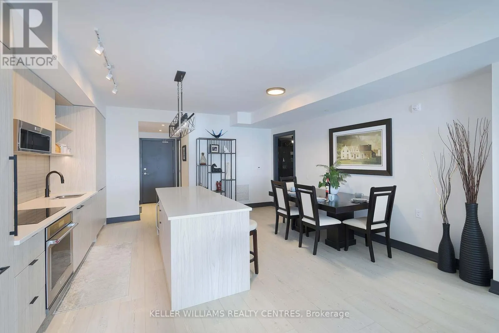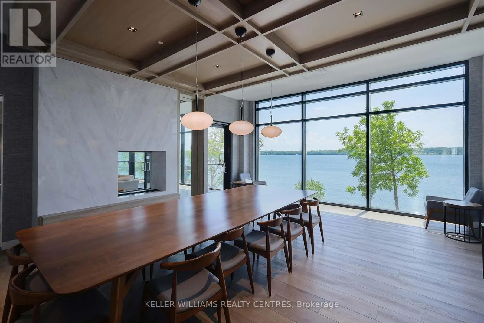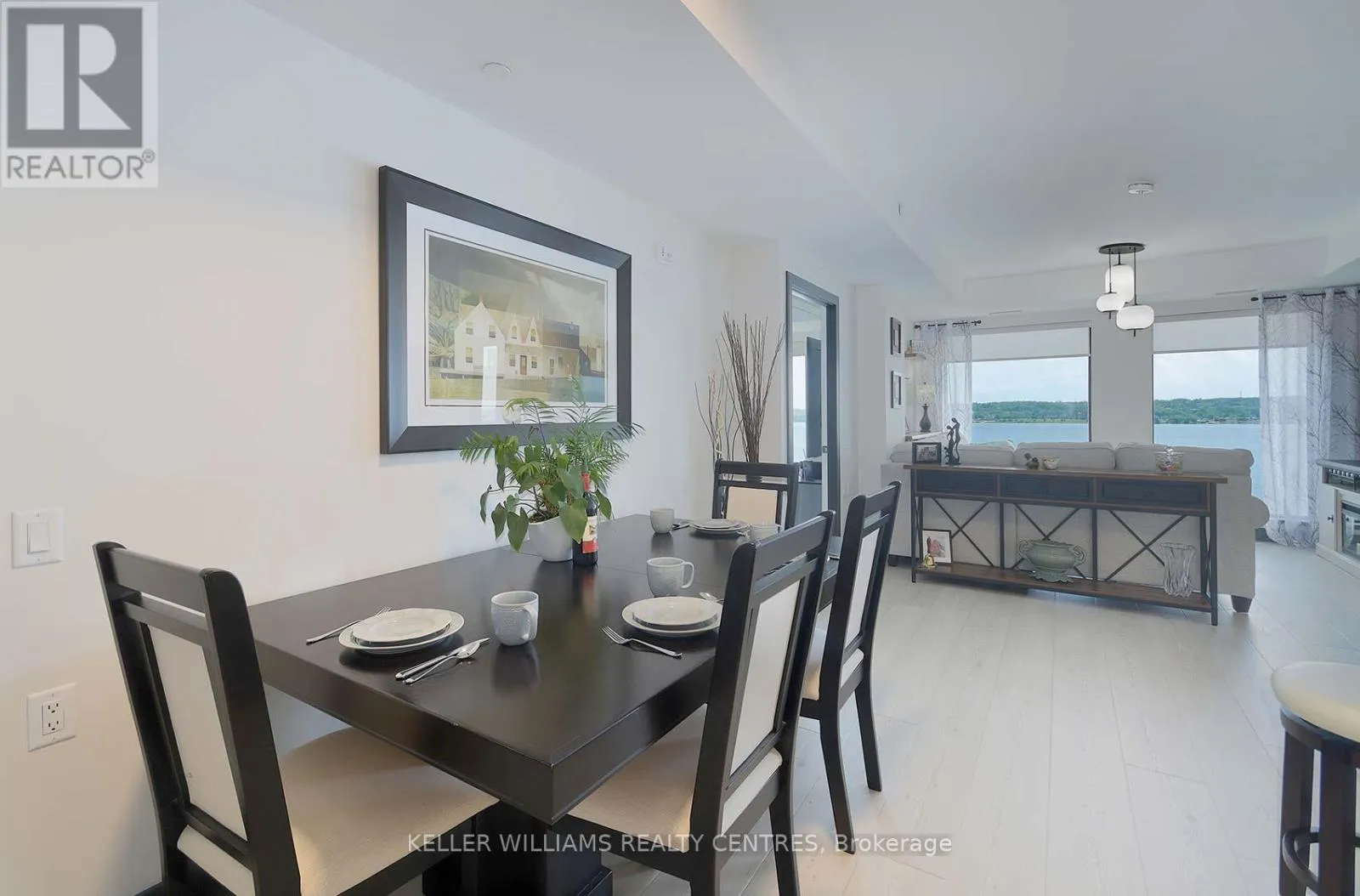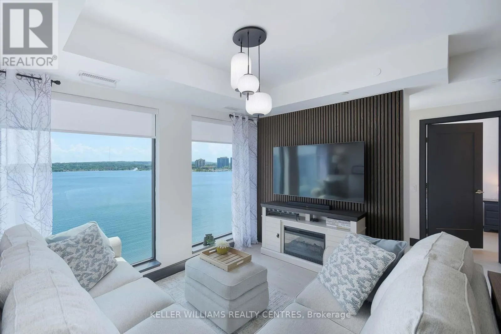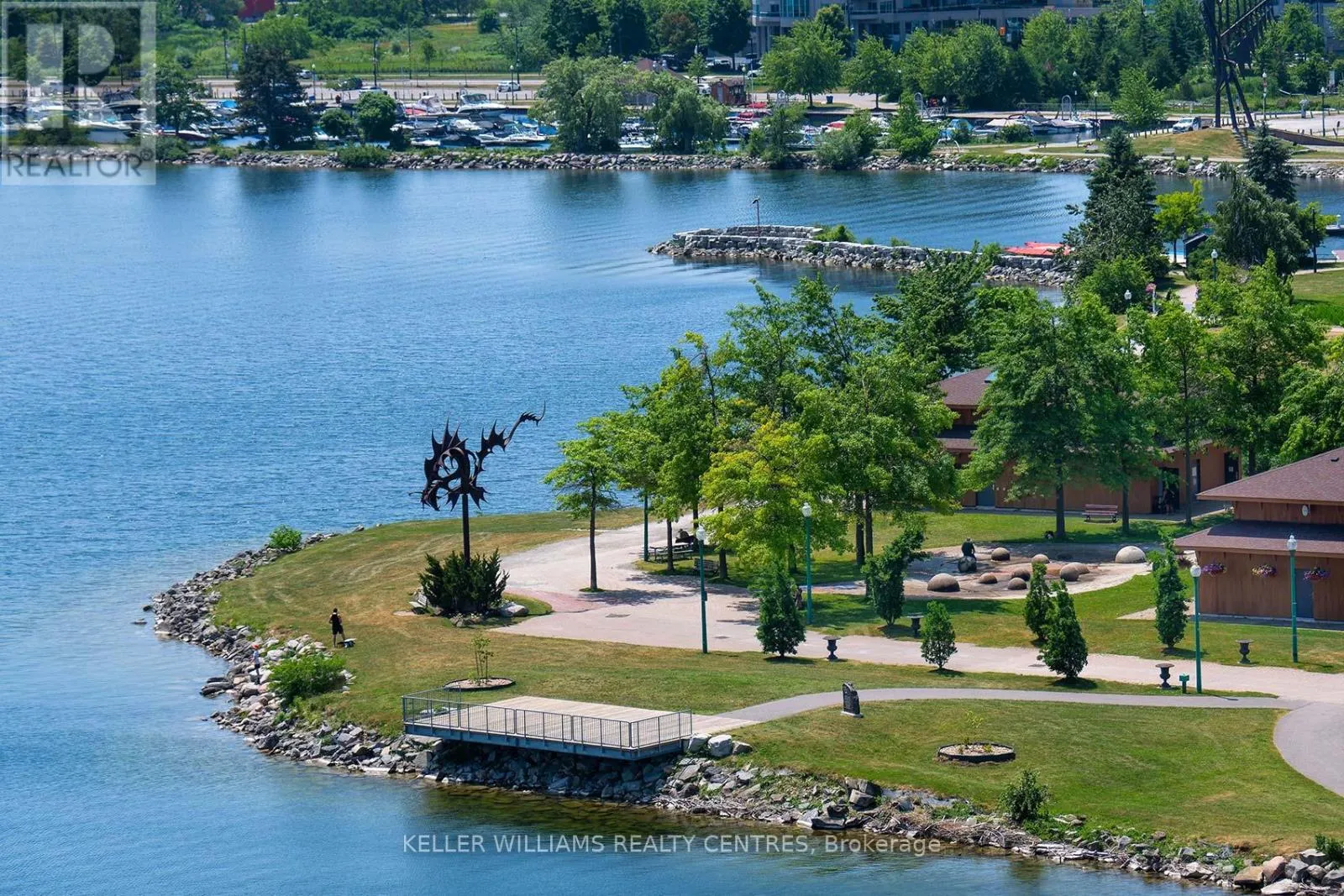 Cross Streets: Dunlop St E & Poyntz St. ** Directions: Dunlop St E just east of Poyntz St. EXPERIENCE WATERFRONT LUXURY AT AN ENTICING PRICE! Welcome to Suite 602 at 185 Dunlop Street East, one of Barries most exclusive addresses on the shores of Kempenfelt Bay. This Sapphire model, with a sought-after south-facing exposure, offers 1,510 sq. ft. of elevated living with the most desirable upgrades in the building. A rare find in condo living this suite includes two premium parking spaces plus a private hydraulic lift for a third vehicle, along with convenient same-floor storage. Step inside and be captivated by the wall-to-wall lake views showcased through an innovative Lumon glass-enclosed balcony, seamlessly blending indoor and outdoor living for year-round enjoyment of the waterfront. The chef-inspired kitchen features a dramatic oversized island, panelled high-end appliances, sleek quartz countertops, and a design thats both elegant and functional. The open-concept living and dining area is anchored by a custom feature wall with built-in TV mount, creating the perfect modern backdrop for entertaining. With 9 ft ceilings, luxury vinyl plank flooring, and stone tile in wet areas, every detail is thoughtfully curated. The two spacious bedrooms each feature private ensuites, large double closets and waterfront views. At LakHouse, residents enjoy resort-inspired amenities including two rooftop terraces with BBQs and fire tables, a fully equipped fitness centre, sauna and steam rooms, a dog wash station, guest suites, a stylish social lounge, and concierge service. With its unmatched upgrades and unobstructed water views, Suite 602 represents an extraordinary opportunity to own the best of Barrie's waterfront lifestyle. Don't miss your chance schedule your private showing today! (id:27476)