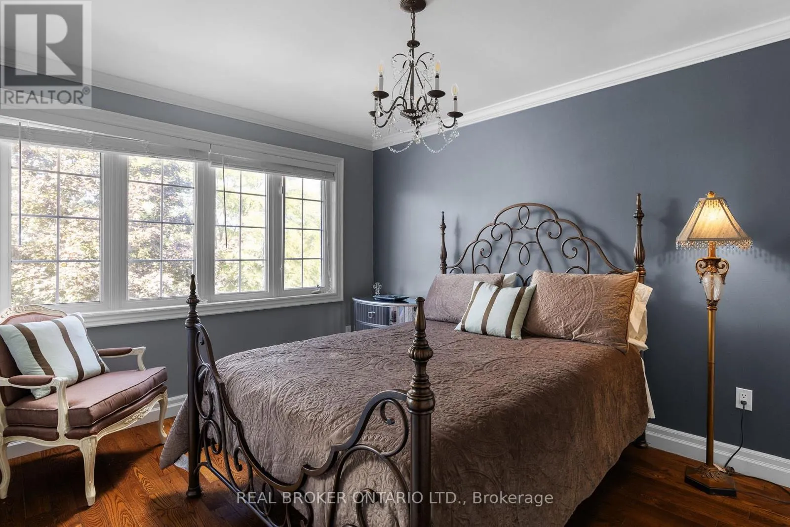 Cross Streets: Big Bay point & Yonge. ** Directions: Crimson Ridge. Welcome to 43 Crimson Ridge Road, a beautifully appointed family home located in Barries sought-after Bayshore community. Set on a premium 169-ft-deep pie-shaped ravine lot backing onto greenbelt, this two-storey residence offers four bedrooms, four bathrooms, and a fully finished basement with a full bathroom. Professional landscaping, stamped concrete walkways, inground irrigation, and exterior soffit lighting frame the home, while new wrought-iron and glass double doors create a striking first impression. Inside, a hardwood circular staircase anchors the main floor. Pot lighting, wainscoting, crown moulding, hardwood flooring, and two gas fireplaces highlight the living spaces. The kitchen and principal rooms flow naturally to the private rear patio, complete with a hot tub and newly finished cabanaperfect for entertaining guests and family. Upstairs, the primary suite includes a large sitting area, custom walk-in closet, and oversized ensuite with heated floors, a glass-enclosed shower, and a soaker tub. A newly renovated 4-piece bathroom serves the additional bedrooms. The attached double garage with inside entry offers a loft storage area with an electronic hoist and a convenient drive-through to the backyard. Approved architectural drawings for a separate side entrance to the basement add future potential. Additional features include a built-in security system and on-demand hot water. Steps to Wilkins Trail and beach, Valleyview Park, fantastic schools, and minutes to Highway 400, the GO Train, downtown Barrie, and south-end shopping, this property balances a peaceful natural setting with urban convenience. (id:27476)