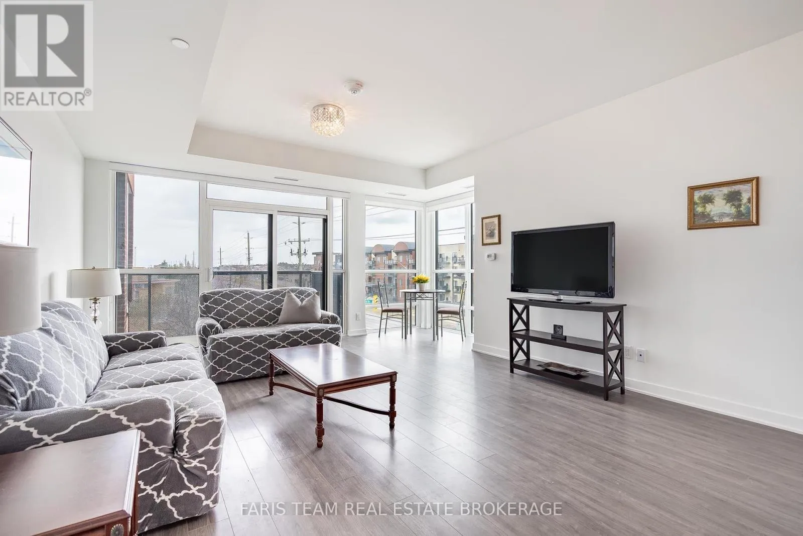 Ashford Dr/Yonge St Top 5 Reasons You Will Love This Condo: 1) Discover the ease of condo living in a prime central location, featuring two private balconies, one off the second bedroom and the other flowing from the living room, perfect for relaxing or enjoying the outdoors 2) Benefit from convenient underground parking with a larger, easily accessible space located right next to the elevator for ultimate convenience 3) Take advantage of excellent on-site amenities, including a fully-equipped fitness centre, a beautifully landscaped rooftop garden, and a communal patio with a barbeque for outdoor gatherings 4) Ideally situated within walking distance to major amenities such as a grocery store, numerous dining options, Shoppers Drug Mart, and the Barrie South GO Station 5) Host and entertain effortlessly in the open-concept living space, highlighted by a modern kitchen complete with a central island and sleek stainless-steel appliances. 992 above grade sq.ft. (id:27476)