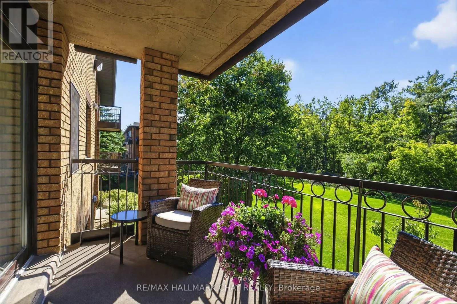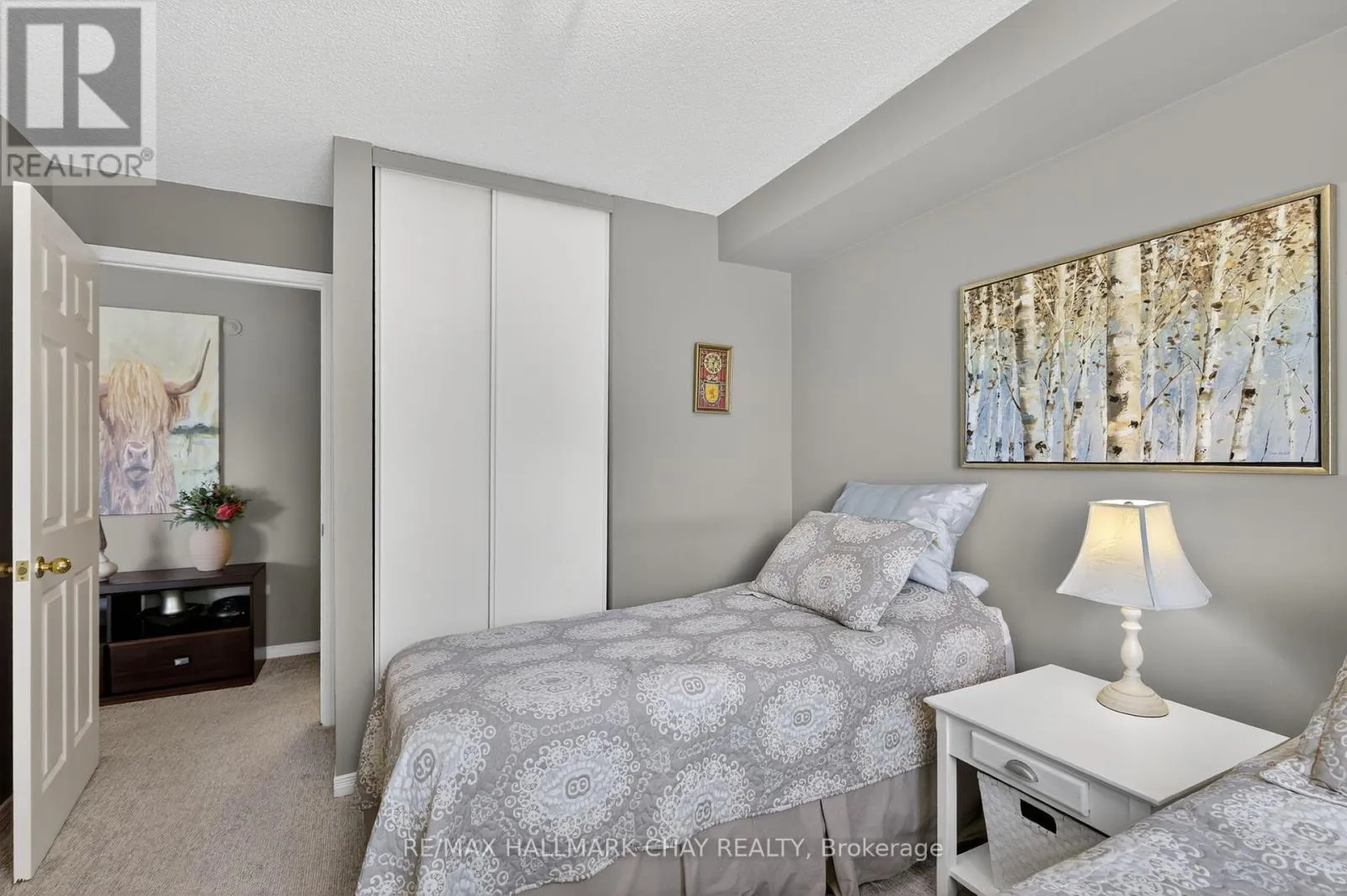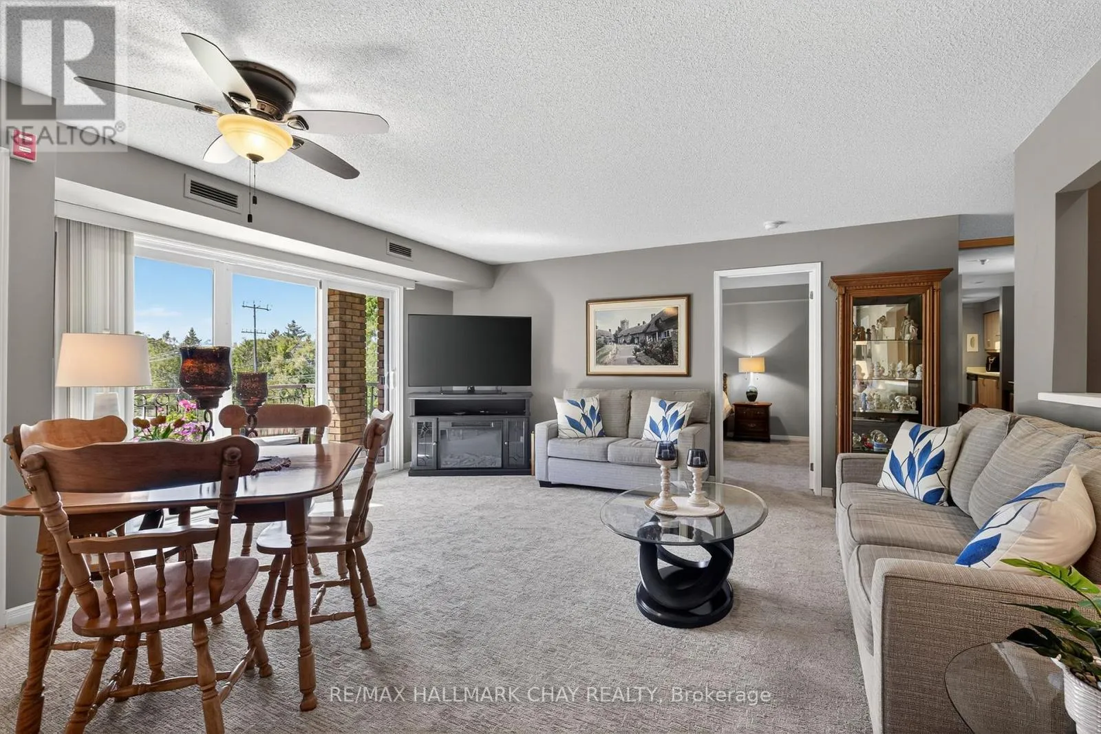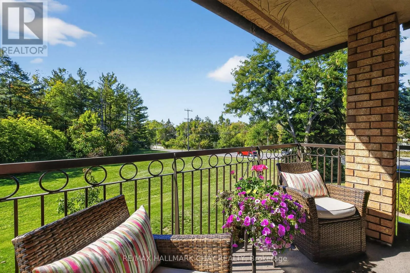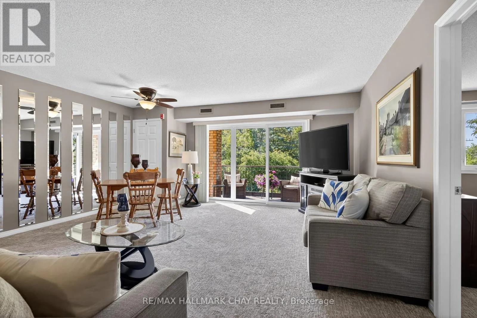 Bayfield St / Cundles Rd W / Coulter St Maintenance Free Living! Pride Of Ownership Throughout, Rarely Offered 2 Bedroom Unit Located In The Coveted Sunnidale Terrace Condos! Backing Onto Greenspace With No Neighbours Behind, Enjoy Peaceful Mornings On Your Spacious Open Balcony Overlooking The Mature Trees. Inside Boasts Open Concept Layout With 989 SqFt Of Living Space! Spacious Foyer With Double Closet Leads To Den With Built-In Desk, Perfect For Working From Home! The Kitchen Features Stainless Steel Appliances, Double Sink, Backsplash, & Lots Of Cabinet Space! Combined Living & Dining Room Has Cozy Broadloom Floors, Ceiling Fan, & Walk-Out To The Large Balcony. 2 Formal Bedrooms, Primary Bedroom Features Large Closet, Broadloom Floors, & 4 Piece Ensuite! 2nd Bedroom With Closet Space & Additional 3 Piece Ensuite. In-Suite Laundry With Additional Storage Space. 1 Surface Level Parking Space Included! 1 Locker For Additional Storage! Many Building Amenities Included Such As: Outdoor Inground Pool, Party/Meeting Room, Recreation Room, & Lots Of Visitor Parking! Maintenance Fees Include: Water, Parking, & Common Elements. Ideal Location Nestled Close To All Amenities Including Restaurants, Shopping, Groceries, Parks, Downtown Barrie, Lake Simcoe, Golf Clubs, & So Much More! Perfect Home For Those Looking To Downsize & Embrace Condo Living While Still Being Walking Distance To Everything You Could Need! (id:27476)