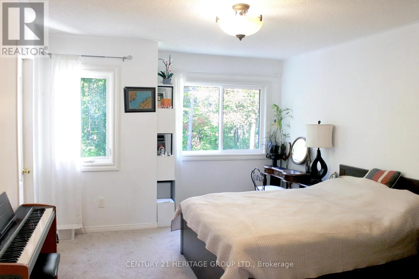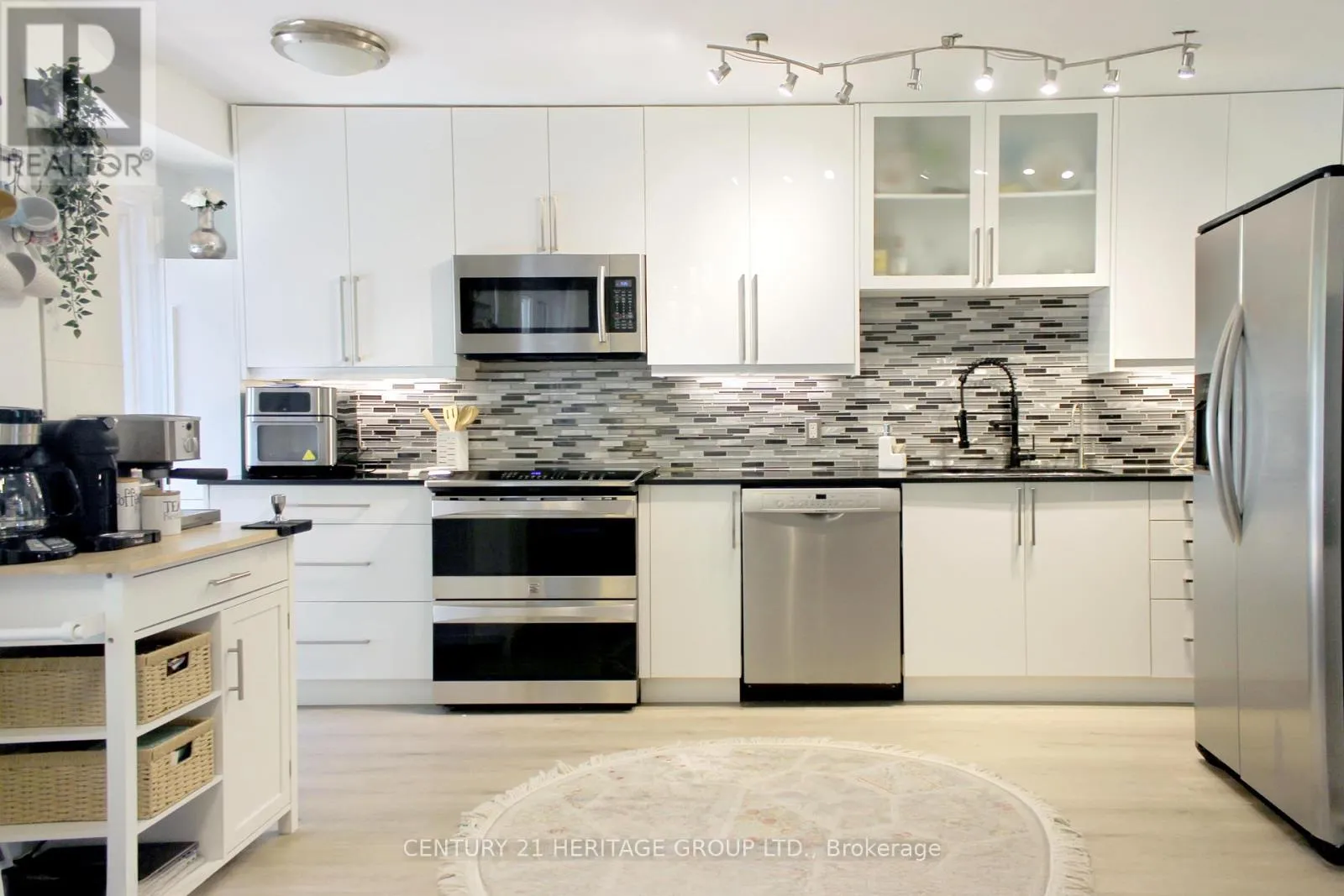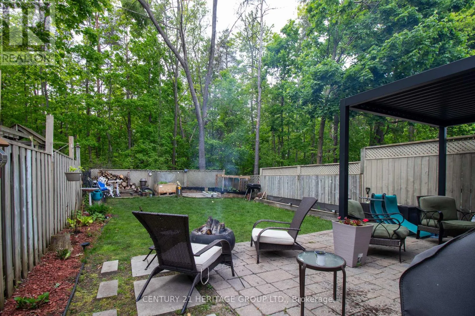ESSA & FERNDALE S Welcome to this beautifully maintained 3-bedroom semi-detached home, backing directly onto the serene Ardagh Bluffs forest and situated on the largest lot in the area. With approximately 1,200 sq.ft. of living space plus a finished basement (no washrooms), this home offers exceptional value and space for a growing family. The main floor features a bright open-concept living and dining area, and an updated kitchen (2020) with modern cabinetry, stainless steel appliances, and a walkout to a fully landscaped backyard with interlock patioperfect for entertaining or relaxing in nature. The primary bedroom includes a private 3-piece ensuite, while the entire home has been freshly updated with new main flooring (2025), fresh paint (2025), and second-floor carpet (2020). Major upgrades include a roof (2015), windows (2022), gutters (fully changed in 2022 ), Furnace is on lease termsand a new furnace and heat pump (2024). Ideally located near top-rated schools, public transit, shopping, trails, and Highway 400, this move-in ready home is a rare find in a family-friendly neighbourhood. (id:27476)