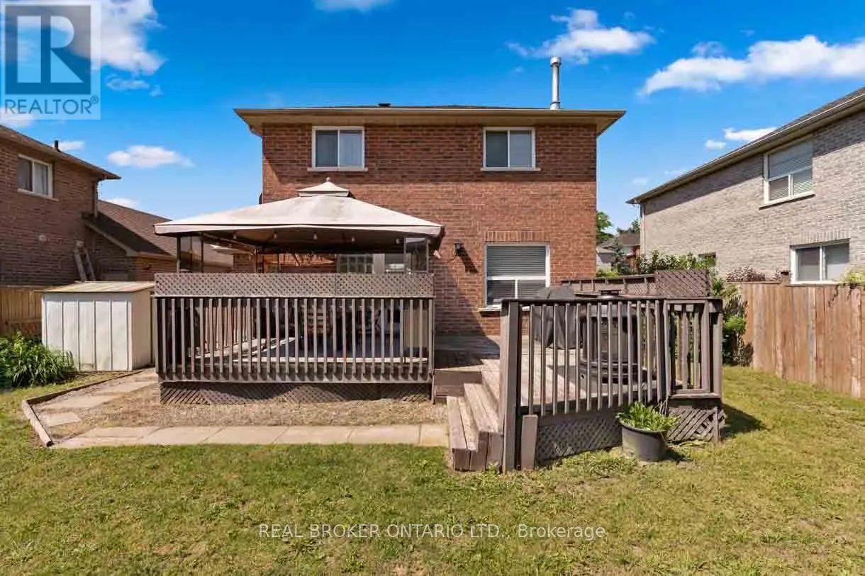 Miller to Ruffet Lovely sought after family area, this fully detached all brick freehold home is perfect if you're looking to not be in a link or townhome and wanting the neighbourhood with all of the large family homes. With double wide driveway, huge fully fenced yard with large deck and inside garage entrance you will be pleased with every turn. Step inside the bright open living space with lovely stone accent wall (tv included) neutral decor, laminate flooring (2018) open to the dining and kitchen space (with handy pantry) and ceramic flooring. There is also a 2-piece bathroom on this level with crown moulding and access to the back yard via the kitchen where you will also find a handy shed tucked around the side and room for a pool, trampoline or playset. Back inside, upstairs there are two bedrooms. The primary bedroom is accessed via the double French doors and is over 22 feet long with dual closets and some families have turned this into two bedrooms (making three possible on the second level). A beautifully updated 5-piece bathroom has double vanity and deep soaker tub. Downstairs a huge space either as another bedroom or rec space (with inside garage entrance perfect for teenagers), a gym space and updated laundry area as well as a cold cellar. There is also AC, and central vacuum and you're only 6 minutes to the HWY. Welcome home! (id:27476)