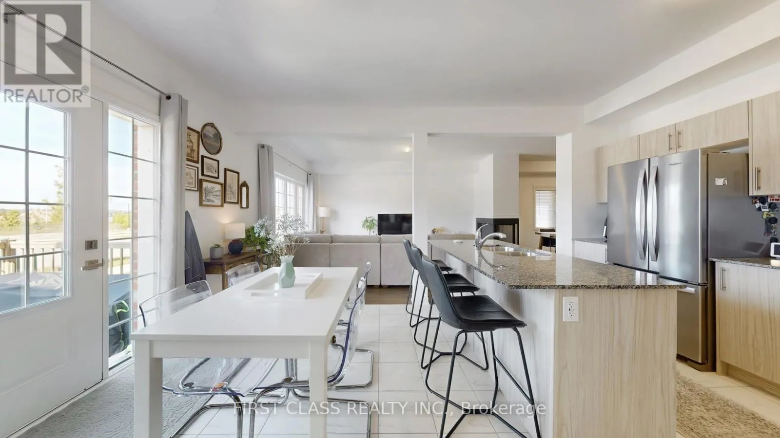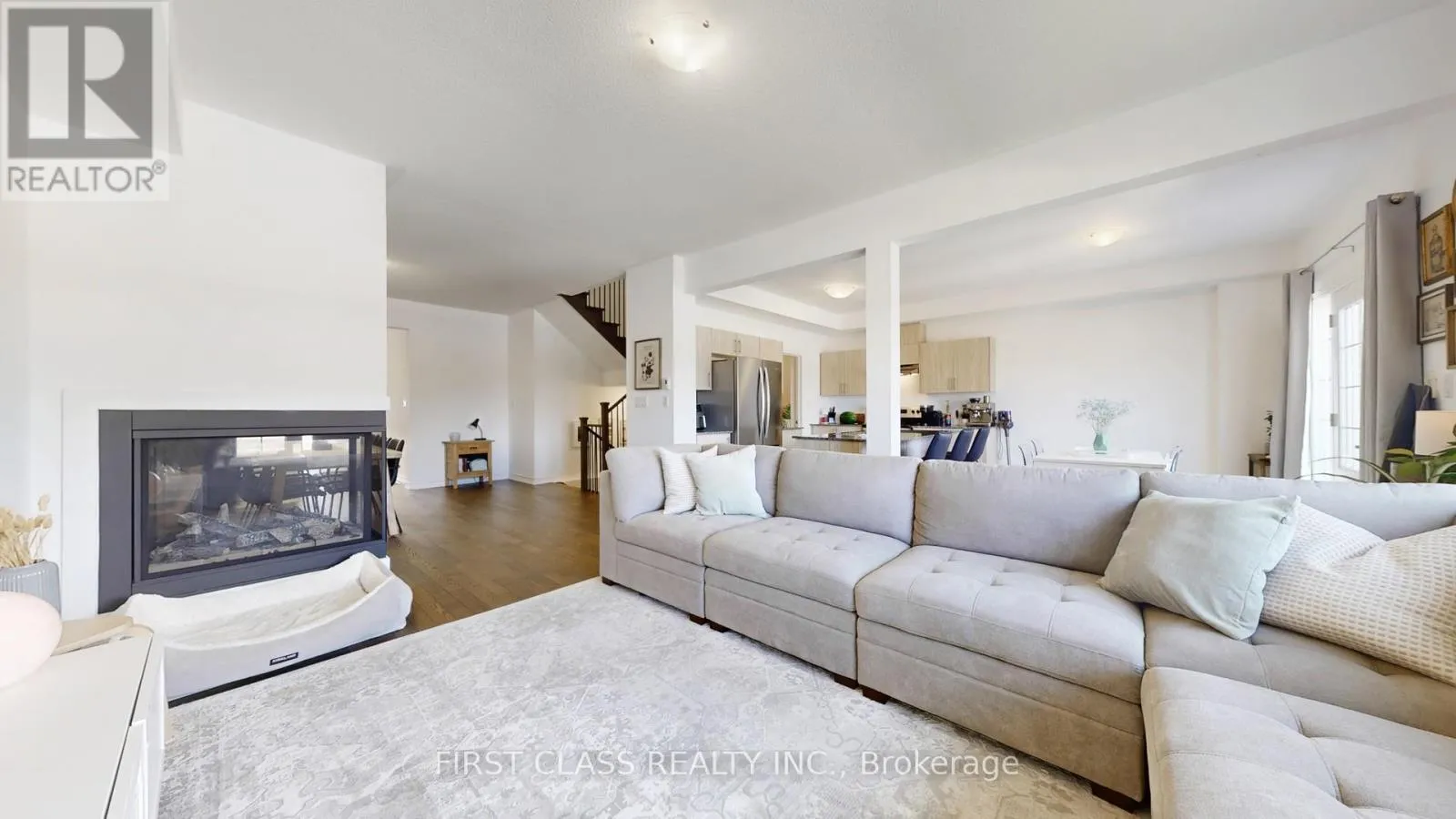 Mapleview Dr E/ Lally terrance Welcome to this elegant 2,550 sq. ft. double - door entry detached house. Its timeless brick-and-siding exterior is complemented by expansive windows, creating a bright and inviting atmosphere throughout. The main level welcomes you with a grand and spacious foyer, seamlessly connected to a versatile space that can be used as an office or play area. The living room flows into the dining room, highlighted by a stunning two-way fireplace, creating a beautiful and functional layout. The open-concept kitchen and breakfast area are framed by oversized windows and patio doors, filling the space with natural light ideal for both family living and entertaining. Upstairs, discover four well-appointed bedrooms. The primary suite is a true retreat, featuring a spa-inspired ensuite with a freestanding tub, glass shower, and double sinks. Two additional bathrooms, thoughtfully designed, provide comfort and convenience for the whole family. Outside, a beautifully designed patio creates the perfect setting for outdoor dining, gatherings, or simply relaxing while enjoying the backyard views. Perfectly located near the GO Station, top-ranked schools, parks, and shopping (id:27476)