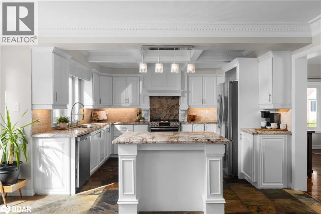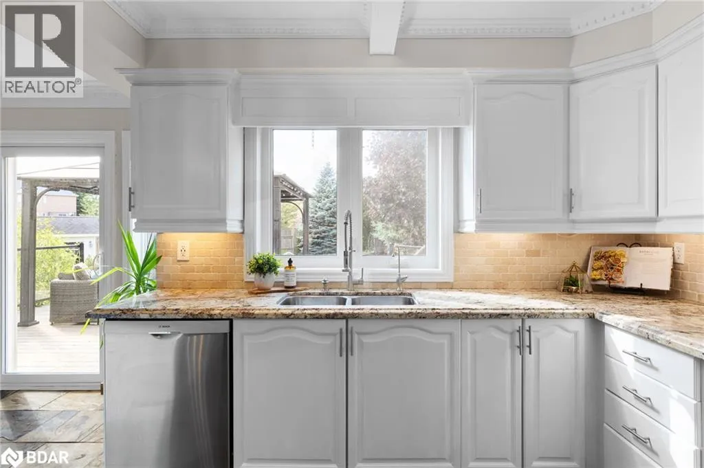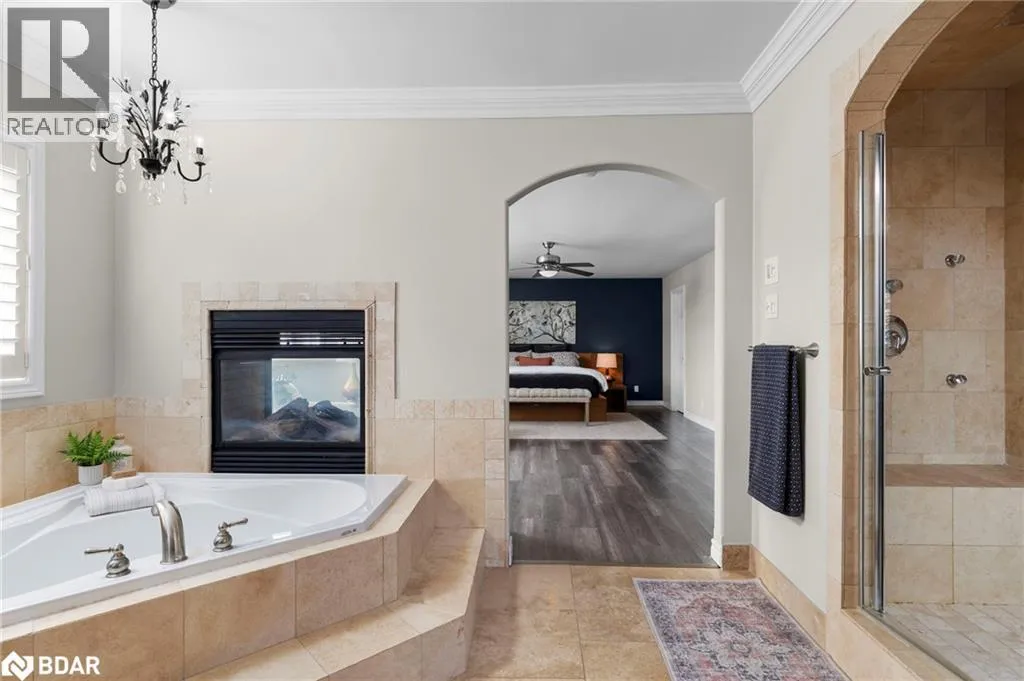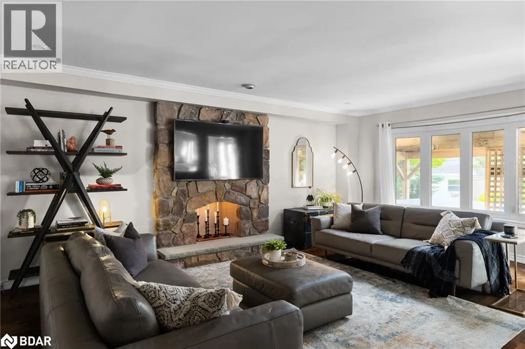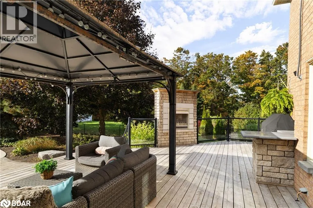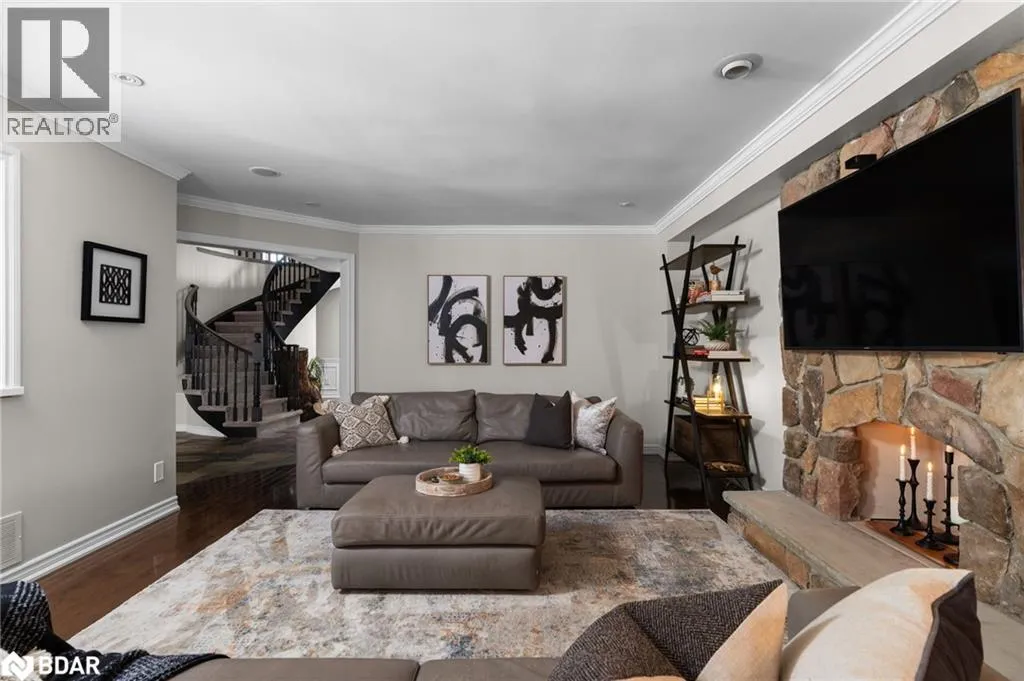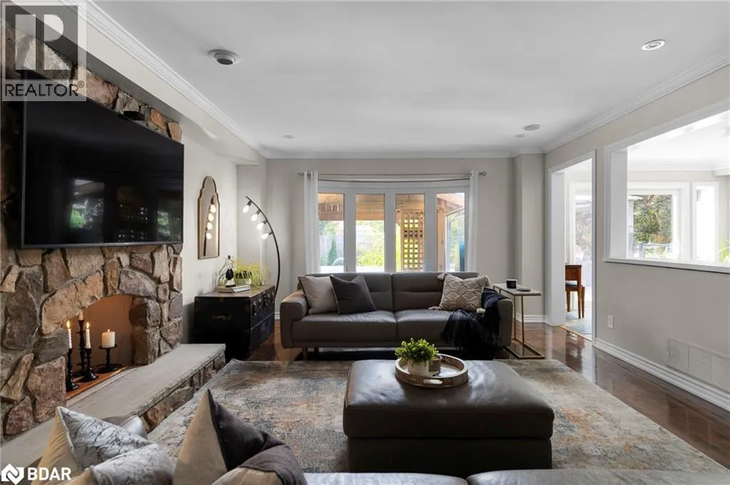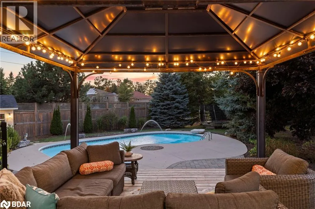 Ferndale Dr South/Stroud Pl/Cityview Circl This beautifully maintained home blends timeless design with modern updates inside and out. The stucco façade and mature landscaping create a classic curb appeal, complemented by a freshly paved driveway (2025). Inside, the main level features freshly painted walls, trim, and doors (2025), an updated kitchen with repainted cabinetry and lighting, and a breakfast area that walks out to the backyard. The layout includes a formal dining room with a bay-style window, a living room with a stone fireplace, a flexible family room at the front of the home, a main-floor office, a powder room, and a laundry room with inside entry from the garage, side-yard access, and included washer and dryer. Upstairs, the primary bedroom offers two walk-in closets, a ceiling fan, California shutters, and a double-sided fireplace that opens to a spacious ensuite with dual vanities, a walk-in glass shower, and a corner soaker tub surrounded by ceramic tile. Four additional bedrooms complete this level, three with walk-in closets and semi-ensuite access. The upper bathrooms include one with a dual-sink vanity and walk-in shower and another with a glass vessel sink and a combined shower and bathtub. The backyard is surrounded by mature trees and 6x6 wood fencing (2023), offering an in-ground pool, an expansive deck with a gazebo, and a covered hot tub within a custom wood structure. Additional updates include new fascia and eavestroughs (2019) and a new pool pump, chlorinator, filter, and heater (2023). Situated in Barries desirable Holly neighbourhood, this home is minutes from Peggy Hill Community Centre, Harvie Park, and Mapleview Drive amenities, with quick access to Highway 400 for commuters. (id:27476)