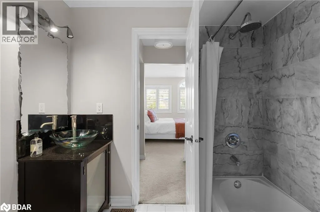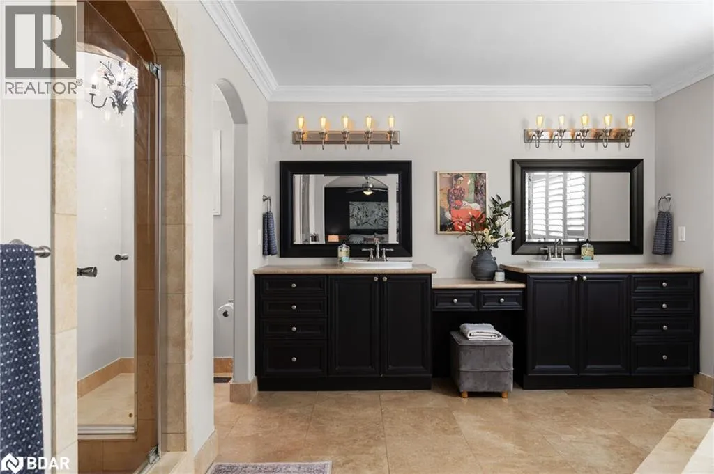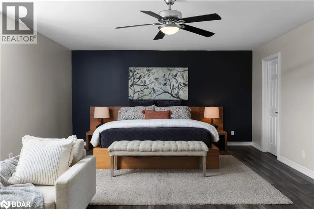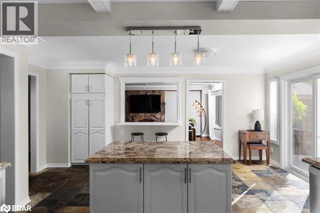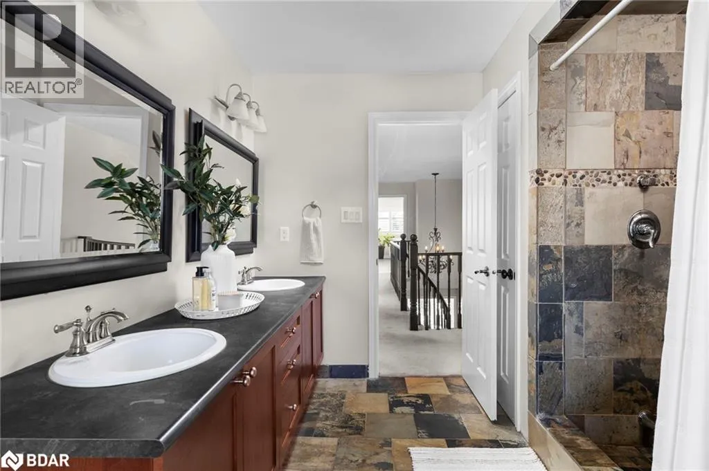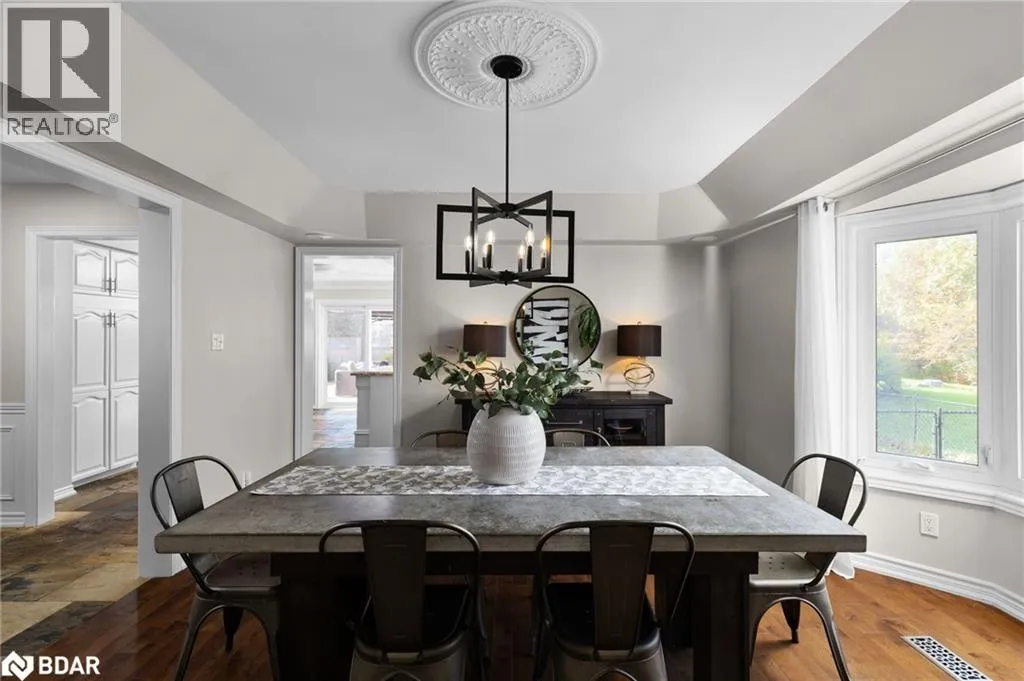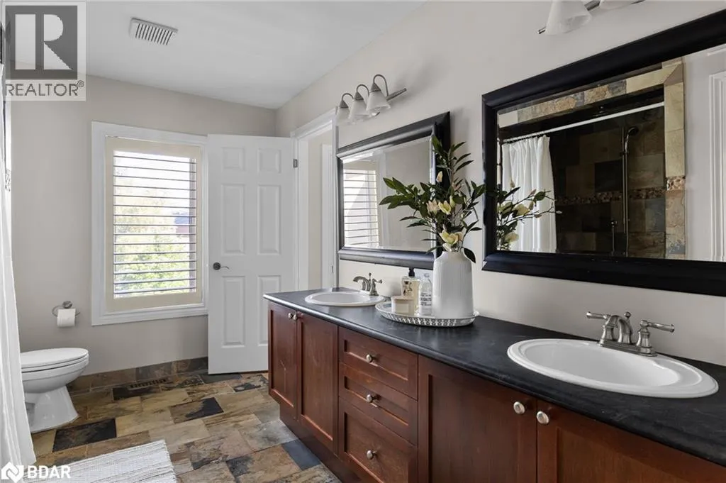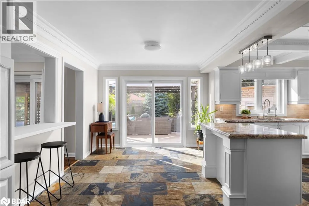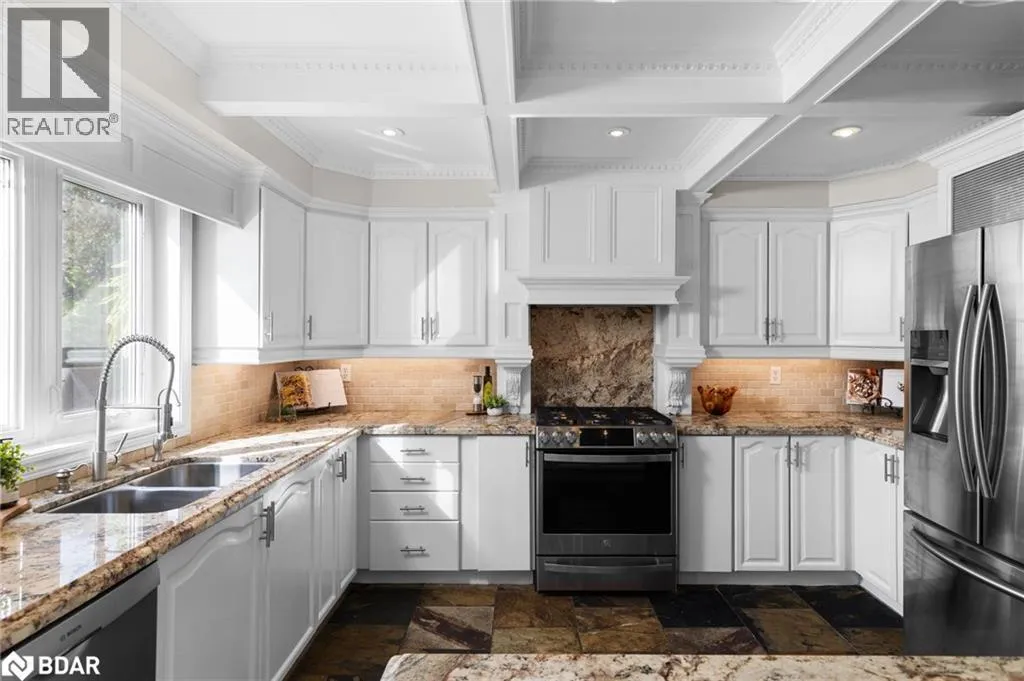 Ferndale Dr South/Stroud Pl/Cityview Circl This beautifully maintained home blends timeless design with modern updates inside and out. The stucco façade and mature landscaping create a classic curb appeal, complemented by a freshly paved driveway (2025). Inside, the main level features freshly painted walls, trim, and doors (2025), an updated kitchen with repainted cabinetry and lighting, and a breakfast area that walks out to the backyard. The layout includes a formal dining room with a bay-style window, a living room with a stone fireplace, a flexible family room at the front of the home, a main-floor office, a powder room, and a laundry room with inside entry from the garage, side-yard access, and included washer and dryer. Upstairs, the primary bedroom offers two walk-in closets, a ceiling fan, California shutters, and a double-sided fireplace that opens to a spacious ensuite with dual vanities, a walk-in glass shower, and a corner soaker tub surrounded by ceramic tile. Four additional bedrooms complete this level, three with walk-in closets and semi-ensuite access. The upper bathrooms include one with a dual-sink vanity and walk-in shower and another with a glass vessel sink and a combined shower and bathtub. The backyard is surrounded by mature trees and 6x6 wood fencing (2023), offering an in-ground pool, an expansive deck with a gazebo, and a covered hot tub within a custom wood structure. Additional updates include new fascia and eavestroughs (2019) and a new pool pump, chlorinator, filter, and heater (2023). Situated in Barries desirable Holly neighbourhood, this home is minutes from Peggy Hill Community Centre, Harvie Park, and Mapleview Drive amenities, with quick access to Highway 400 for commuters. (id:27476)