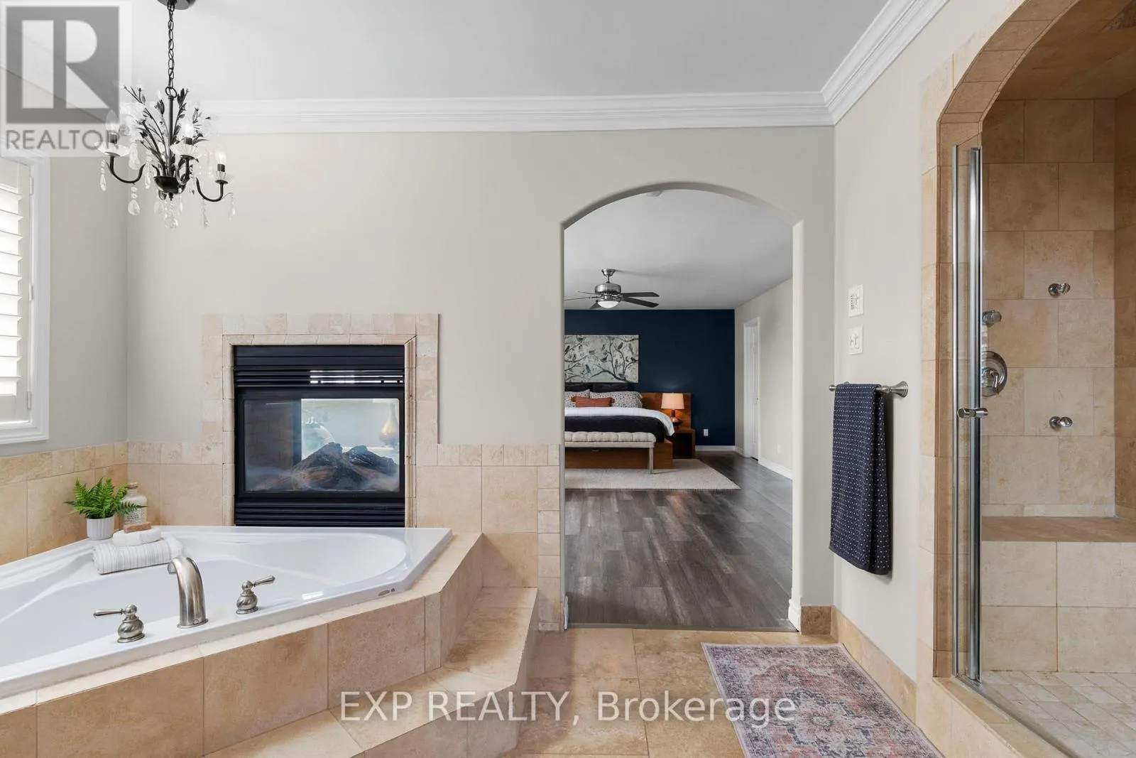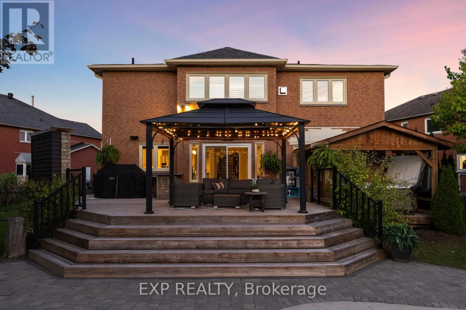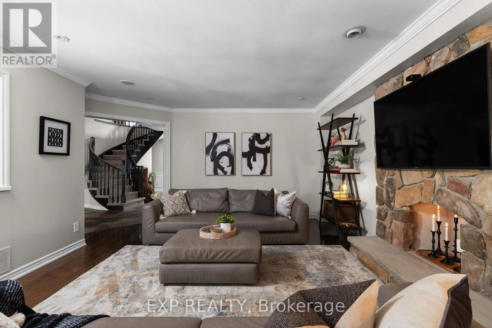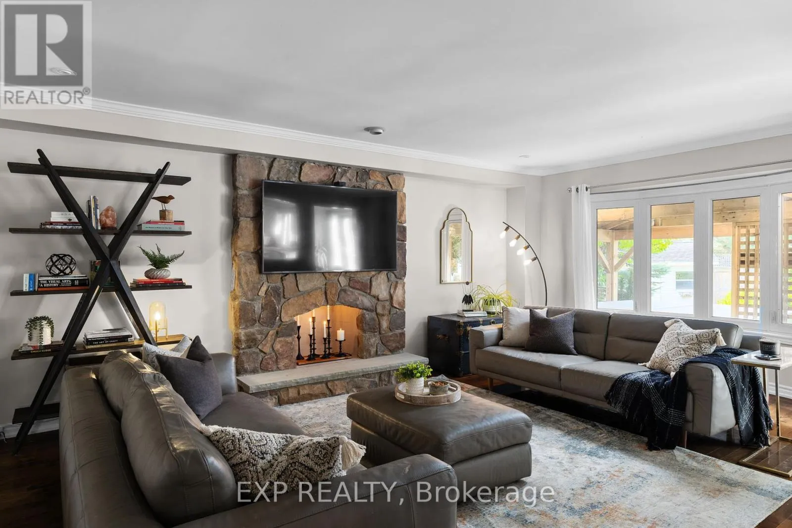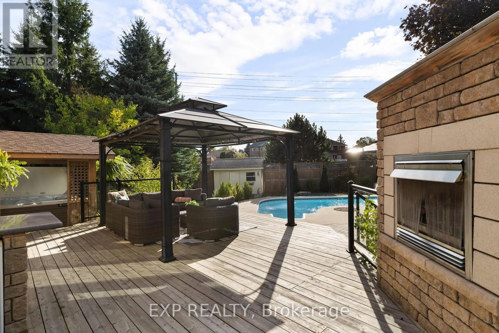 Ferndale Dr South/Stroud Pl/Cityview Circl This beautifully maintained home blends timeless design with modern updates inside and out. The stucco façade and mature landscaping create a classic curb appeal, complemented by a freshly paved driveway (2025). Inside, the main level features freshly painted walls, trim, and doors (2025), an updated kitchen with repainted cabinetry and lighting, and a breakfast area that walks out to the backyard. The layout includes a formal dining room with a bay-style window, a living room with a stone fireplace, a flexible family room at the front of the home, a main-floor office, a powder room, and a laundry room with inside entry from the garage, side-yard access, and included washer and dryer. Upstairs, the primary bedroom offers two walk-in closets, a ceiling fan, California shutters, and a double-sided fireplace that opens to a spacious ensuite with dual vanities, a walk-in glass shower, and a corner soaker tub surrounded by ceramic tile. Four additional bedrooms complete this level, three with walk-in closets and semi-ensuite access. The upper bathrooms include one with a dual-sink vanity and walk-in shower and another with a glass vessel sink and a combined shower and bathtub. The backyard is surrounded by mature trees and 6x6 wood fencing (2023), offering an in-ground pool, an expansive deck with a gazebo, and a covered hot tub within a custom wood structure. Additional updates include new fascia and eavestroughs (2019) and a new pool pump, chlorinator, filter, and heater (2023). Situated in Barries desirable Holly neighbourhood, this home is minutes from Peggy Hill Community Centre, Harvie Park, and Mapleview Drive amenities, with quick access to Highway 400 for commuters. (id:27476)
