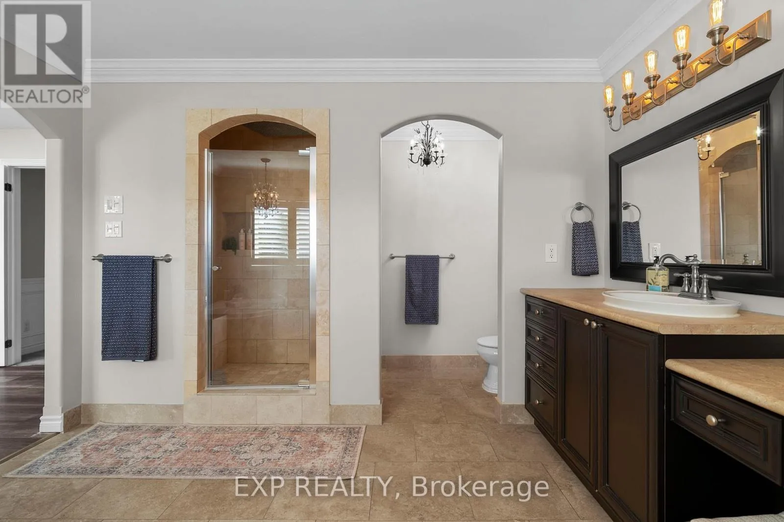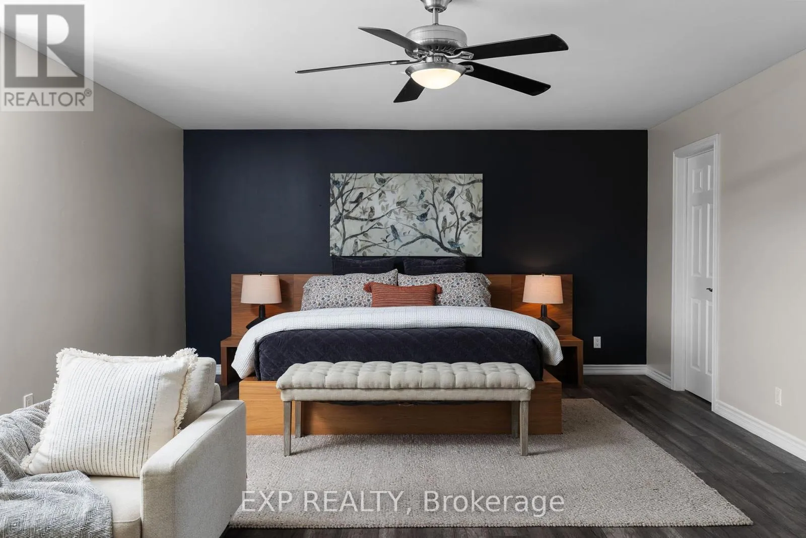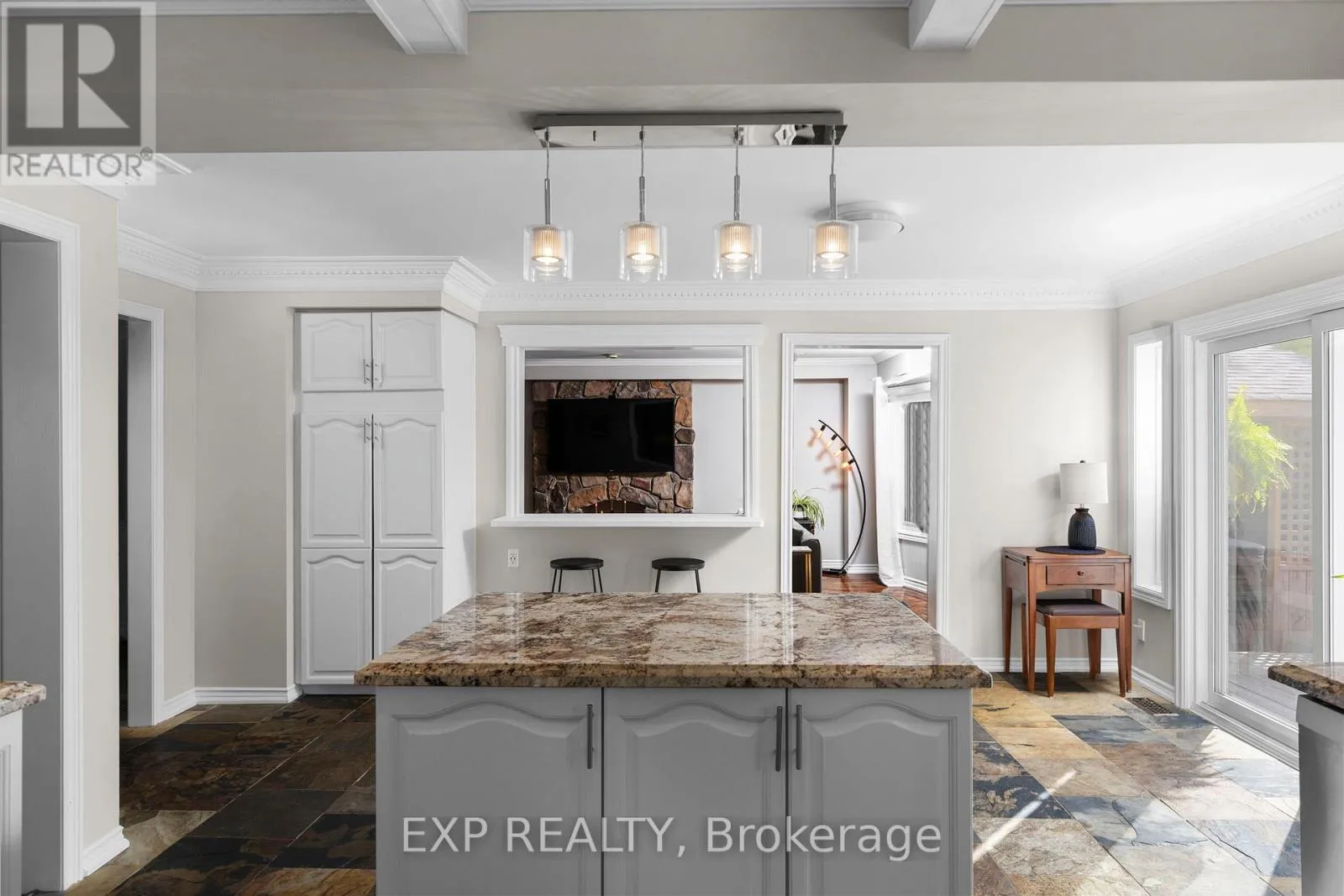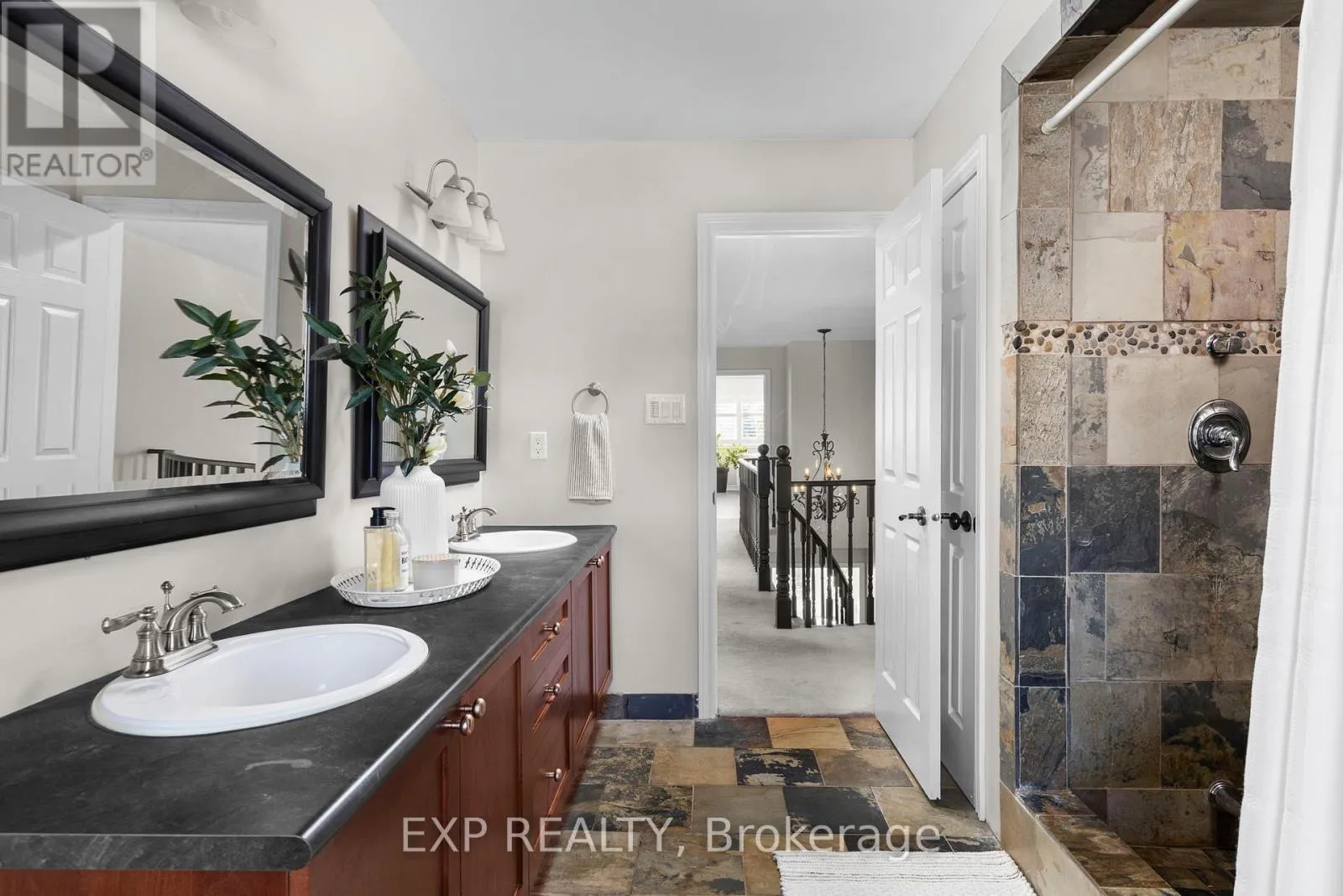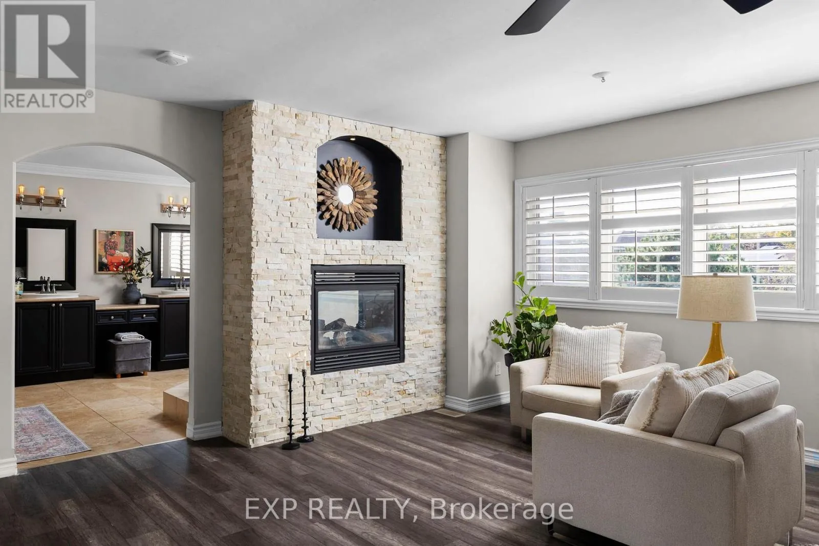 Ferndale Dr South/Stroud Pl/Cityview Circl This beautifully maintained home blends timeless design with modern updates inside and out. The stucco façade and mature landscaping create a classic curb appeal, complemented by a freshly paved driveway (2025). Inside, the main level features freshly painted walls, trim, and doors (2025), an updated kitchen with repainted cabinetry and lighting, and a breakfast area that walks out to the backyard. The layout includes a formal dining room with a bay-style window, a living room with a stone fireplace, a flexible family room at the front of the home, a main-floor office, a powder room, and a laundry room with inside entry from the garage, side-yard access, and included washer and dryer. Upstairs, the primary bedroom offers two walk-in closets, a ceiling fan, California shutters, and a double-sided fireplace that opens to a spacious ensuite with dual vanities, a walk-in glass shower, and a corner soaker tub surrounded by ceramic tile. Four additional bedrooms complete this level, three with walk-in closets and semi-ensuite access. The upper bathrooms include one with a dual-sink vanity and walk-in shower and another with a glass vessel sink and a combined shower and bathtub. The backyard is surrounded by mature trees and 6x6 wood fencing (2023), offering an in-ground pool, an expansive deck with a gazebo, and a covered hot tub within a custom wood structure. Additional updates include new fascia and eavestroughs (2019) and a new pool pump, chlorinator, filter, and heater (2023). Situated in Barries desirable Holly neighbourhood, this home is minutes from Peggy Hill Community Centre, Harvie Park, and Mapleview Drive amenities, with quick access to Highway 400 for commuters. (id:27476)