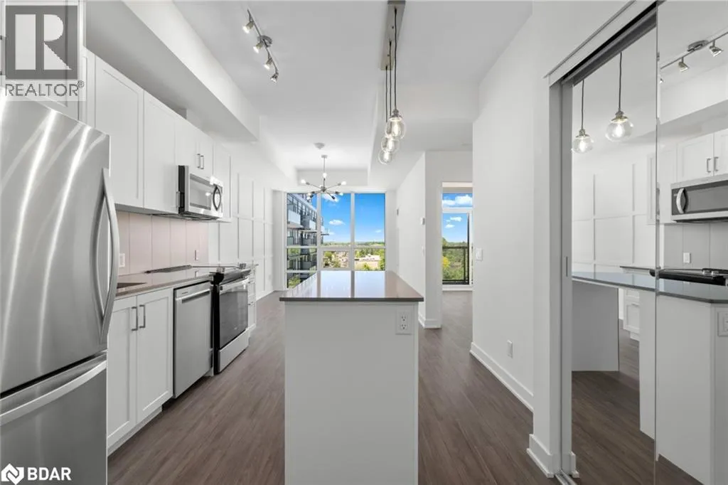 Big Bay Point Rd/Yonge St EXCEPTIONAL CONDO FOR LEASE WITH LUXURIOUS UPGRADES, OUTSTANDING AMENITIES, & TWO PARKING SPACES! Lease this stunning condo built in 2022 that exudes sophistication and contemporary flair. From the moment you enter, you'll be captivated by the modern design and luxurious upgrades. The spacious kitchen is a showstopper, featuring sleek white cabinets, stainless steel appliances, and quartz countertops, including an island with an eye-catching waterfall edge that's perfect for entertaining. The living room is bathed in natural light from large sunlit windows, accentuated by elegant wainscoting that adds a touch of refinement. Both bedrooms offer direct access to a private balcony through sliding glass walkouts, creating the ideal spot to unwind and enjoy the fresh air. The west-facing orientation treats you to breathtaking sunset views every evening. The primary bedroom is a serene retreat with a spa-like ensuite showcasing a walk-in shower. The guest bathroom provides flexibility with a convenient shower/tub combination, both finished with modern quartz countertops. Throughout the unit, cohesive grey vinyl flooring and upgraded baseboards deliver a sleek, cohesive look, while modern tile enhances the bathrooms. With 9-foot ceilings and upgraded light fixtures, the space feels open, airy, and inviting. The convenience of in-suite laundry and a location away from the elevator ensures a quiet living environment. This condo also offers two parking spaces (one underground and one above ground) and a storage locker. The building amenities include a rooftop terrace featuring a lounge and BBQ area, a gym, a party room, and concierge services. Donât miss the opportunity to lease this stunning west-facing suite in a vibrant community! (id:27476)