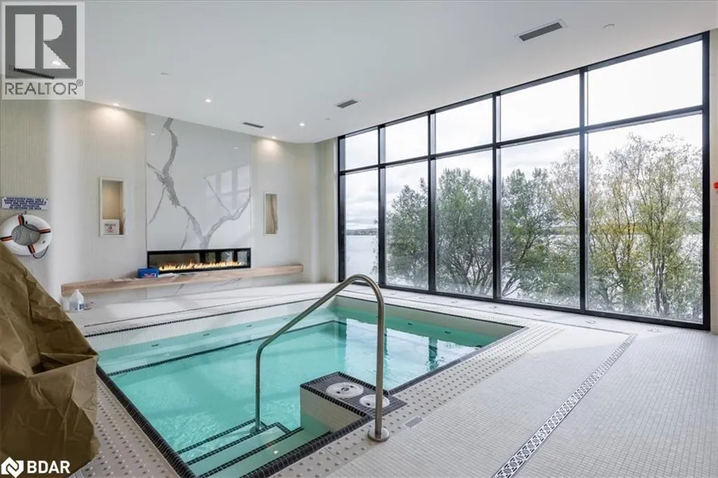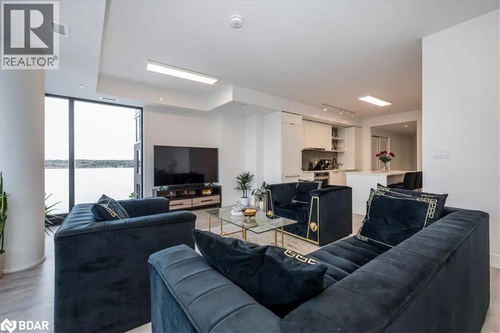 Dunlop St E 96A exit off 400 proceed east on Dunlop Experience urban elegance in this luxury condo, perched on the seventh floor with stunning unobstructed views of the lake and city skyline. This exquisite downtown residence boasts three spacious bedrooms and two modern washrooms, a gourmet kitchen, a dedicated dining room, an expansive living room and large frameless glass open-air/ enclosed Lumon balcony system that allows window panes to slide easily and stack allowing enjoyment of the stunning waterfront with access to the outside environment or protected from the natural elements. Extensive floor to ceiling windows in principal rooms and the primary bedroom retreat invite natural light and breathtaking views of sparkling lake Simcoe. The heart of this home is the spectacular chefs kitchen, perfect for hosting elegant dinner parties, eat-in kitchen provides functionality, sophistication and ample storage. Conveniently located off the hallway, you'll find a well appointed for peace washroom and the laundry room complete with the sink and storage solutions. This condo is designed for comfort and convenience featuring an additional storage locker. Two assigned parking spaces are available for your convenience. The building enhances your lifestyle with exceptional amenities, including concierge services, gym, spa, sauna, steam room, rooftop patio with barbecue, common room/ party room, pet wash, kayak storage and so much more. Don't miss the opportunity to make this stunning condo your new home where luxury meets breathtaking water views. (id:27476)