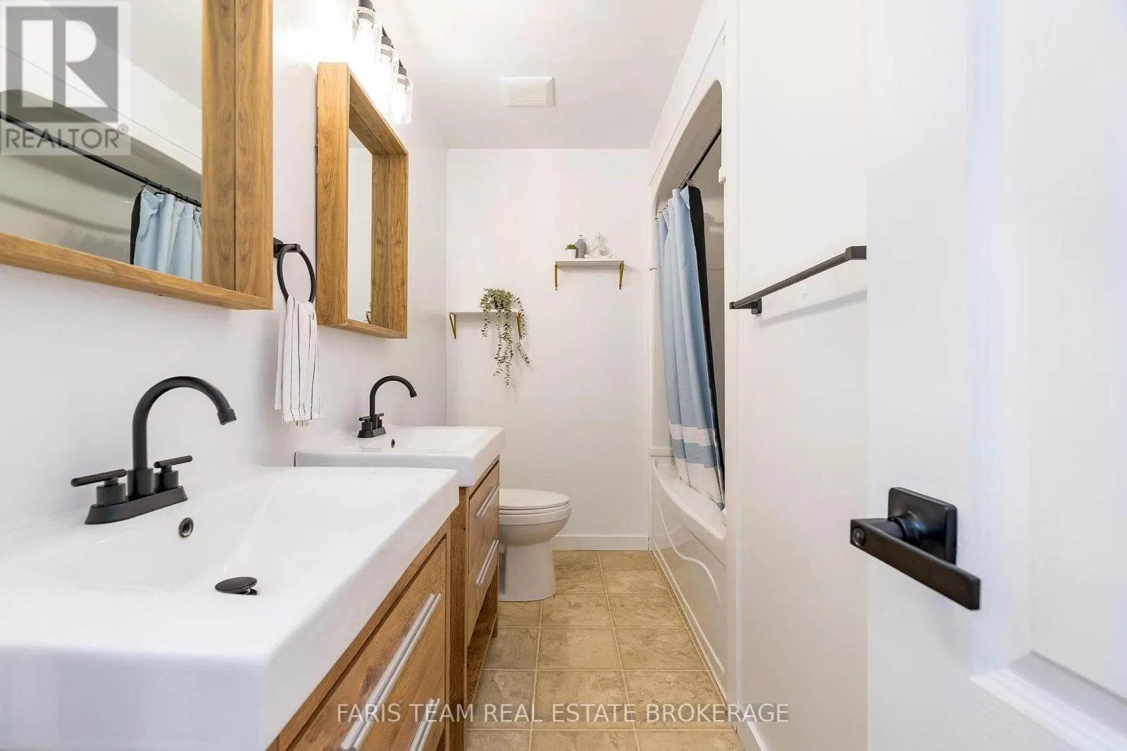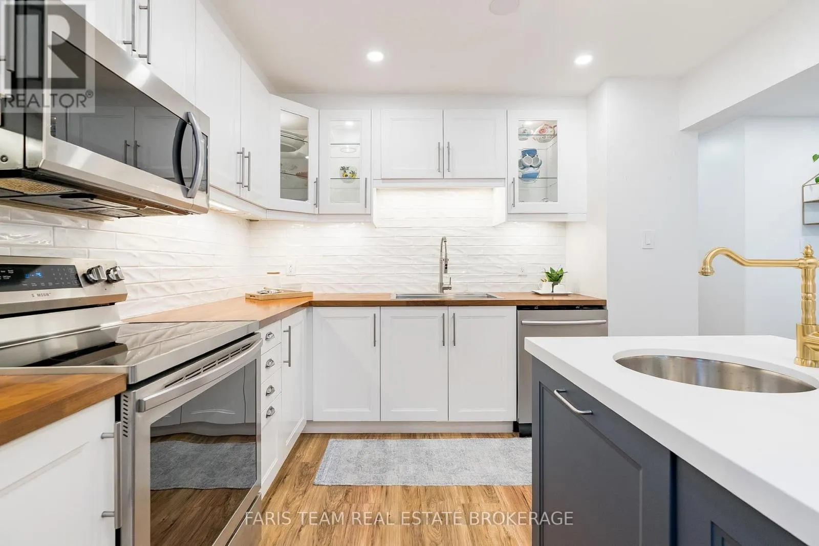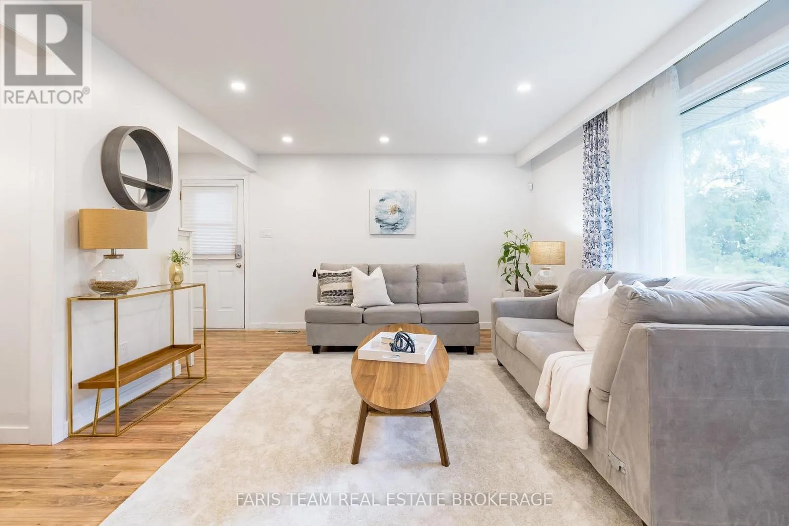 Wellington St E/Oak St Top 5 Reasons You Will Love This Home: 1) Ideally positioned on a quiet street in the heart of the city, this home offers the rare combination of urban convenience and a serene, family-friendly setting 2) Completely renovated from top to bottom, the interior showcases elegant laminate flooring throughout the main level, a fully updated eat-in kitchen, and a sleek central bathroom featuring dual vanities 3) Boasting six spacious bedrooms in total, including three beautifully refinished rooms in the basement, this property provides plenty of space for a large family or an excellent opportunity for rental income 4) Designed with versatility in mind, the basement features a kitchenette with the potential to be converted into a full kitchen, creating an ideal in-law suite or separate living area 5) Step outside to a generous 110' deep backyard, perfect for entertaining or relaxing outdoors, complete with a large driveway offering ample parking for family and guests. 1,132 above grade sq.ft. plus a finished basement. (id:27476)