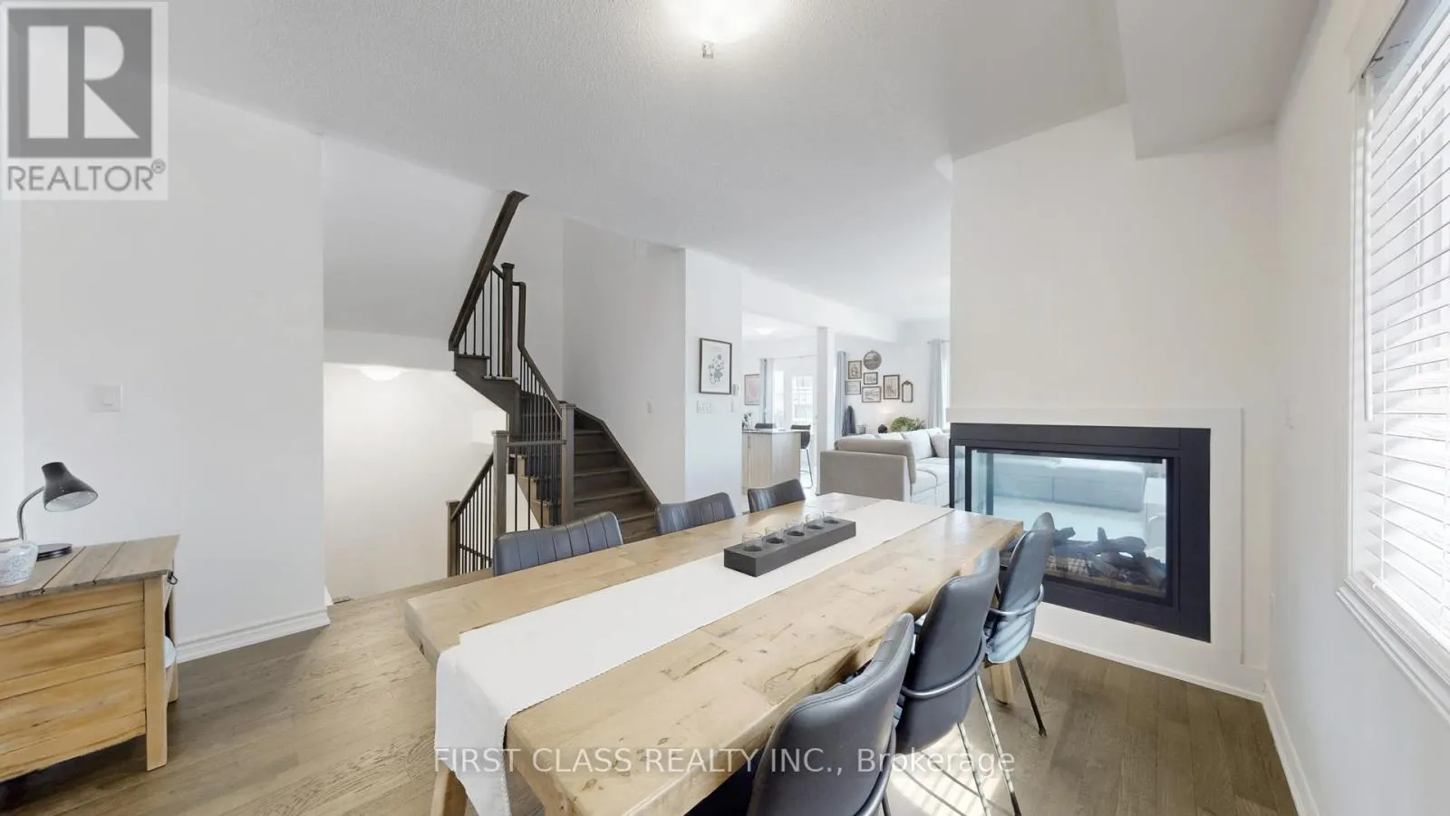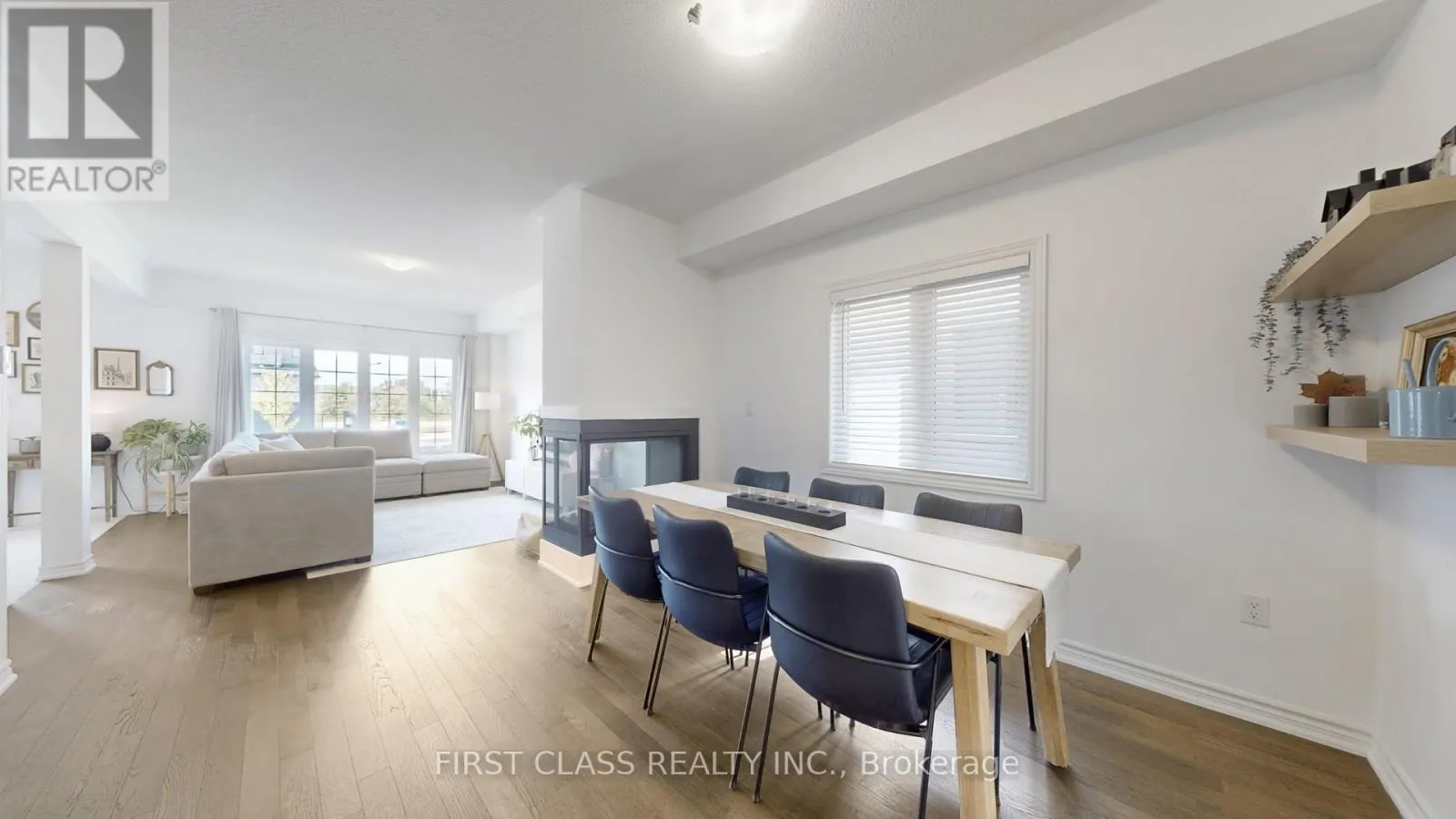Mapleview Dr E/ Lally terrance Welcome to this elegant 2,550 sq. ft. double - door entry detached house. Its timeless brick-and-siding exterior is complemented by expansive windows, creating a bright and inviting atmosphere throughout. The main level welcomes you with a grand and spacious foyer, seamlessly connected to a versatile space that can be used as an office or play area. The living room flows into the dining room, highlighted by a stunning two-way fireplace, creating a beautiful and functional layout. The open-concept kitchen and breakfast area are framed by oversized windows and patio doors, filling the space with natural light ideal for both family living and entertaining. Upstairs, discover four well-appointed bedrooms. The primary suite is a true retreat, featuring a spa-inspired ensuite with a freestanding tub, glass shower, and double sinks. Two additional bathrooms, thoughtfully designed, provide comfort and convenience for the whole family. Outside, a beautifully designed patio creates the perfect setting for outdoor dining, gatherings, or simply relaxing while enjoying the backyard views. Perfectly located near the GO Station, top-ranked schools, parks, and shopping. (id:27476)