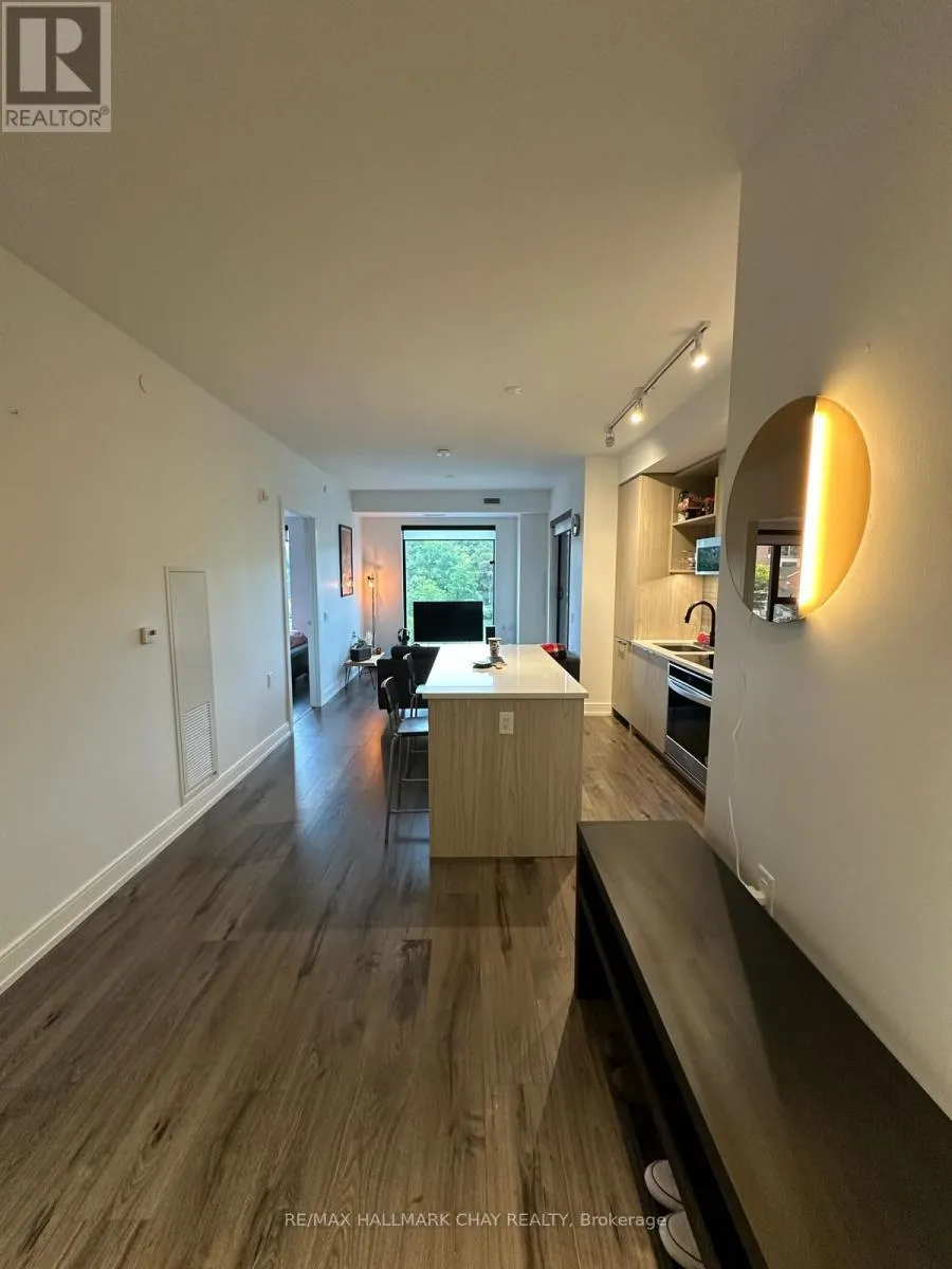 Cross Streets: Dunlop St E & Poyntz St. ** Directions: 185 Dunlop St E - East Entrance. WELCOME to the nordic-inspired Lakhouse - Barrie's premiere waterfront condo community! This Aqua 2 model - one bedroom + den + 1 bath - 741 sq.ft. - is a bright waterview unit with tasteful neutral decor throughout and modern finishes. Lumon system balcony extends your living space outdoors - simply close the glass panels on cooler days, and open them when there is a warm breeze from the lake! Stunning views of Lake Simcoe's Kempenfelt Bay to the South and East. Includes many upgrades, 4 x s/s appliances, ensuite laundry, secured inground parking, exclusive locker. Amazing building amenities are second to none - concierge, party room with caterer's kitchen, meeting room, pet wash station, oversized whirlpool spa, sauna, fitness room, canoe/kayak/bike storage, two outdoor rooftop balconies! Steps to Barrie's vibrant downtown - shopping, services, fine & casual dining, entertainment, recreation. Easy access to key commuter routes, public transit, GO Train / Bus service. Steps to waterfront of Kempenfelt Bay - boardwalk, beaches, marina, Simcoe County trail system. Short drive to golf, skiing, hiking, biking and more - throughout Simcoe County! Appliances included as shown. Parking included (1). Tenant pays hydro. Available for occupancy on December 1st. (id:27476)