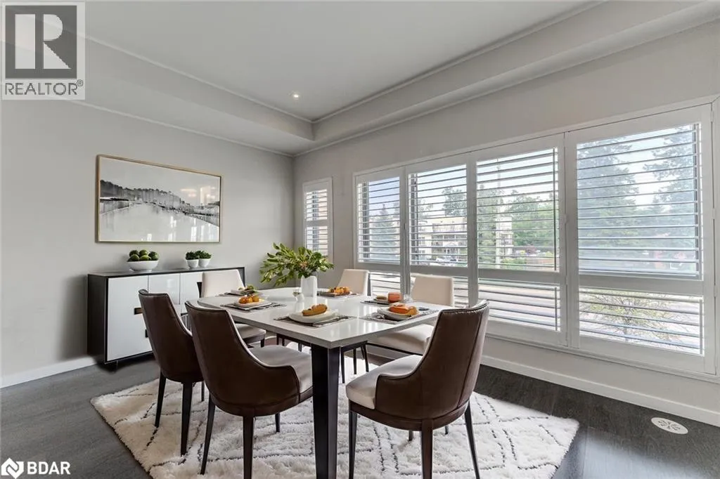 Veterans Dr/Essa Rd MODERN 3-STOREY TOWNHOME WITH ECO-FRIENDLY FEATURES IN A PRIME ARDAGH LOCATION! Welcome to 369 Essa Road Unit 14! Discover this stunning 3-storey townhome in the sought-after Ardagh neighbourhood, where contemporary design meets unbeatable convenience. Offering 3 bedrooms and 2 modern bathrooms, this home is perfect for comfortable family living. Step inside to the bright main-level entry including its own bathroom and a versatile space, perfect for a private home office or playroom. The upper level boasts an open-concept layout featuring modern finishes, stylish pot lights, and a contemporary ambiance. The kitchen is equipped with sleek white cabinets, a large island, stainless steel appliances, quartz countertops, and a subway tile backsplash, making it as functional as it is beautiful. This carpet-free home boasts laminate and elegant porcelain tile flooring throughout, offering a seamless and low-maintenance design. Enjoy outdoor living on the 14.5 x 11 ft balcony, an ideal spot to relax and take in the fresh air. Parking is a breeze with a spacious built-in garage and an additional driveway space. This eco-conscious home is designed for energy efficiency, featuring low-VOC materials, high-performance heating and ventilation systems, superior insulation, and advanced window treatments. A low monthly fee covers snow removal, ground maintenance/landscaping, and private garbage removal, ensuring a low-maintenance lifestyle. Located just minutes from Highway 400, this property is surrounded by parks, schools, shopping amenities, and scenic walking trails. A short drive takes you to Downtown Barrie and its vibrant waterfront, where dining, entertainment, and leisure await. This townhome offers an unbeatable combination of modern style, eco-friendly living, a and a prime location. Donât miss your chance to call this your #HomeToStay! (id:27476)