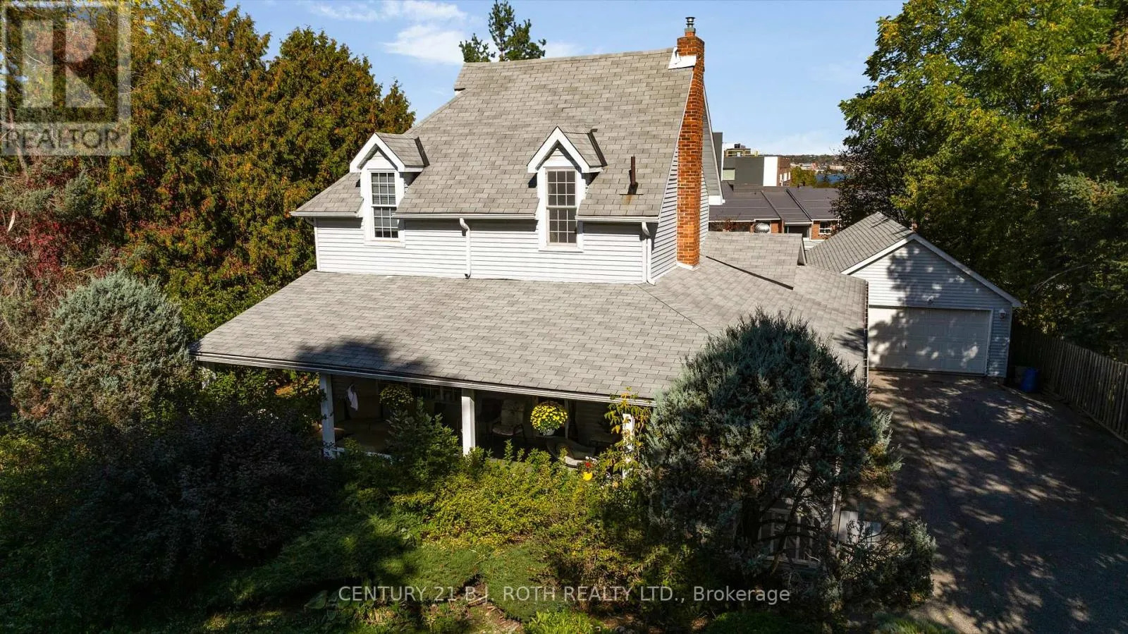 BAYVIEW DR / BALDWIN LANE An extraordinary opportunity to own a piece of Barries history in the heart of Allandale. Set on a massive 101 x 235 mature, tree-lined lot, this 1870-built century home offers unmatched privacy and tranquillity rarely found within city limits. A long, private driveway stretches nearly 100 feet from the road, opening to reveal this historic residence, perfectly nestled among towering trees in complete serenity. A detached garage/workshop with power includes a bonus lower level, ideal for a hobbyist, home gym, or studio, while parking for 810 vehicles adds incredible convenience. The homes wrap around porch features an impressive 12 x 40 covered front veranda - a peaceful space to relax through summer evenings or rainy days alike. Blending timeless craftsmanship and vintage charm, the interior offers four bedrooms (one on the main floor) and two full bathrooms, including a renovated 4-piece bath and foyer with heated floors. Natural light fills every room with treed views throughout, while the private, landscaped backyard showcases lush gardens, a raised deck, and room for a potential pool oasis or garden suite. Upstairs are three spacious bedrooms and a full bath, complemented by the original staircase and character hardwood flooring beneath the current finishings. Updates include structural work to the porch, newer porch and garage shingles, eavestroughs, and west-side foundation waterproofing. Located just minutes to the Allandale Waterfront GO Station, Kempenfelt Bay, downtown Barrie, and steps to Shear Park and St. John Catholic School and Church, this rare, character-filled home offers a once-in-a-generation opportunity to own a century property on an estate-sized lot in one of Barries most sought-after neighbourhoods. (id:27476)