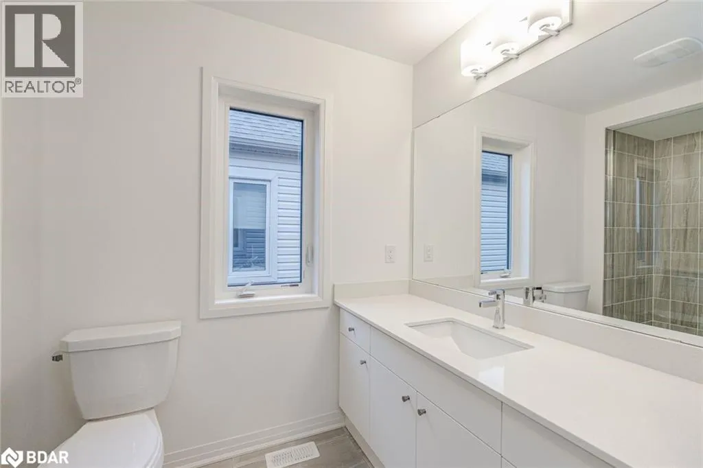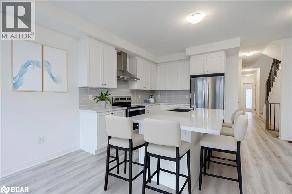 Mapleview Dr E/Madelaine Dr/Sagewood Ave BRAND-NEW END UNIT TOWNHOME WITH MODERN UPGRADES & QUICK CLOSING AVAILABLE! Move right into this stunning brand-new end-unit townhome, part of the highly desirable Ventura South Townhome Collection, offering 1,650 sq ft of beautifully designed living space with 3 bedrooms and 3 bathrooms. Priced to sell and ready for quick closing, this home delivers exceptional value and peace of mind with a 7-year Tarion Warranty. Located near HWY 400, the South Barrie GO Station, walking and cycling trails, top-rated schools, shopping, and dining, with quick access to golf and Friday Harbour Resort offering year-round recreation. Curb appeal impresses with a charming covered front porch and a stylish front door with a frosted glass insert and transom window that fills the entryway with natural light. With no sidewalk in front, enjoy parking for two vehicles in the driveway. Upgraded laminate and tile flooring enhance the main level, laundry room, and bathrooms, offering durability and a modern aesthetic. The open-concept kitchen showcases quartz countertops, white cabinets, a tile backsplash, stainless steel chimney-style range hood, French-door refrigerator, electric range, dishwasher, and a large island with breakfast bar seating for five. The adjacent great room offers a bright, welcoming space with a walkout to the partially fenced backyard featuring wood privacy fencing along the rear and side lot lines and a convenient gate. Completing the main level is a powder room and a laundry room with garage access, a side-by-side Whirlpool washer and dryer, overhead storage cabinets, and a clothing rod. Upstairs highlights upgraded laminate flooring throughout the hall and bedrooms, a 4-piece main bathroom with a quartz-topped vanity, and a primary bedroom with two walk-in closets and a 3-piece ensuite. Central air conditioning, quality upgrades, and modern finishes throughout make this new #HomeToStay a standout choice in one of Barrie’s most convenient neighbourhoods! (id:27476)