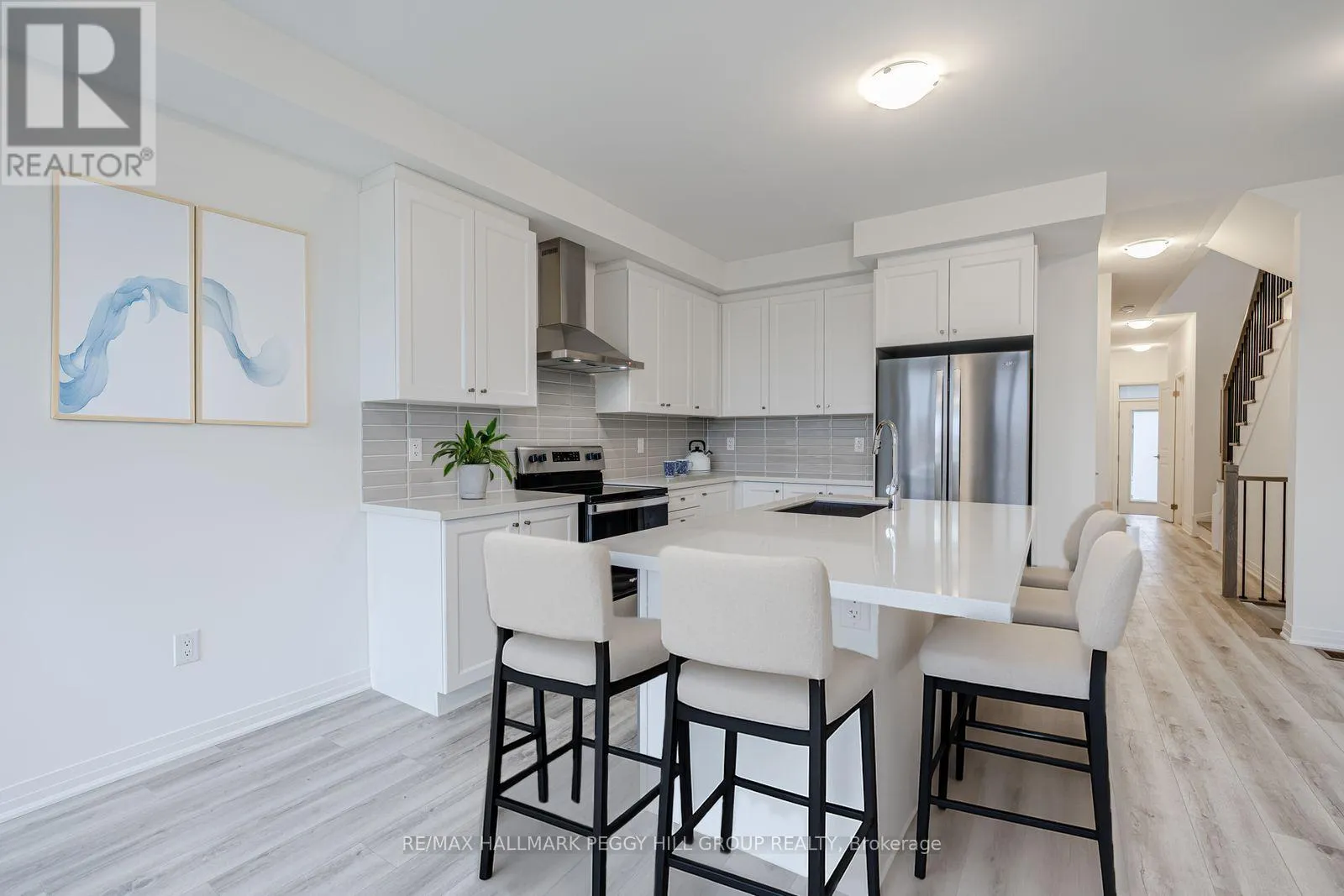 Cross Streets: Madelaine Dr/Sagewood Ave. ** Directions: Mapleview Dr E/Madelaine Dr/Sagewood Ave. BRAND-NEW END UNIT TOWNHOME WITH MODERN UPGRADES & QUICK CLOSING AVAILABLE! Move right into this stunning brand-new end-unit townhome, part of the highly desirable Ventura South Townhome Collection, offering 1,650 sq ft of beautifully designed living space with 3 bedrooms and 3 bathrooms. Priced to sell and ready for quick closing, this home delivers exceptional value and peace of mind with a 7-year Tarion Warranty. Located near HWY 400, the South Barrie GO Station, walking and cycling trails, top-rated schools, shopping, and dining, with quick access to golf and Friday Harbour Resort offering year-round recreation. Curb appeal impresses with a charming covered front porch and a stylish front door with a frosted glass insert and transom window that fills the entryway with natural light. With no sidewalk in front, enjoy parking for two vehicles in the driveway. Upgraded laminate and tile flooring enhance the main level, laundry room, and bathrooms, offering durability and a modern aesthetic. The open-concept kitchen showcases quartz countertops, white cabinets, a tile backsplash, stainless steel chimney-style range hood, French-door refrigerator, electric range, dishwasher, and a large island with breakfast bar seating for five. The adjacent great room offers a bright, welcoming space with a walkout to the partially fenced backyard featuring wood privacy fencing along the rear and side lot lines and a convenient gate. Completing the main level is a powder room and a laundry room with garage access, a side-by-side Whirlpool washer and dryer, overhead storage cabinets, and a clothing rod. Upstairs highlights upgraded laminate flooring throughout the hall and bedrooms, a 4-piece main bathroom with a quartz-topped vanity, and a primary bedroom with two walk-in closets and a 3-piece ensuite. Central air conditioning, quality upgrades, and modern finishes throughout make this new #HomeToStay a standout choice in one of Barrie's most convenient neighbourhoods! (id:27476)