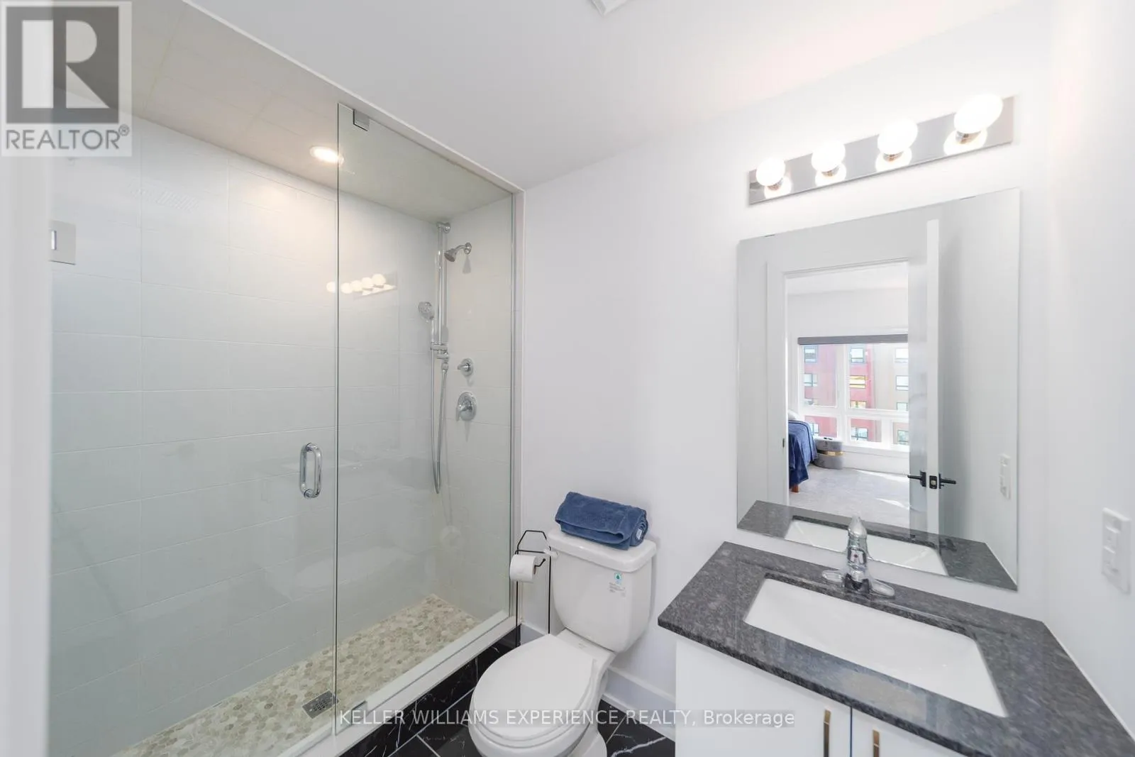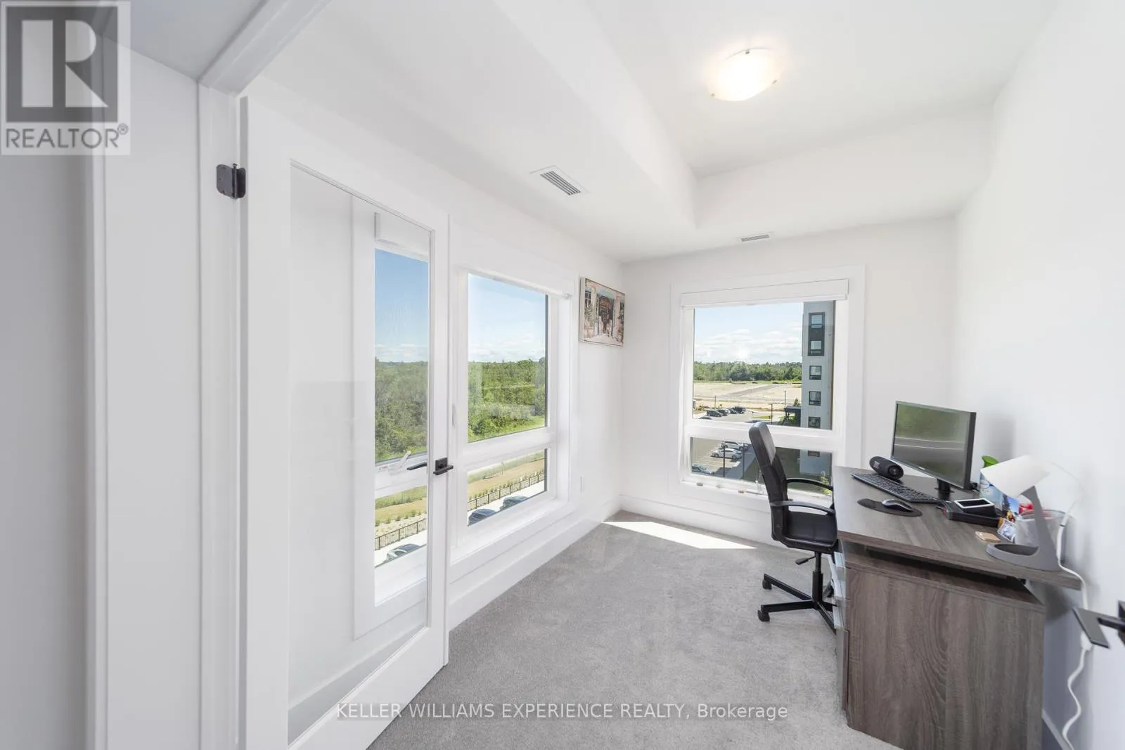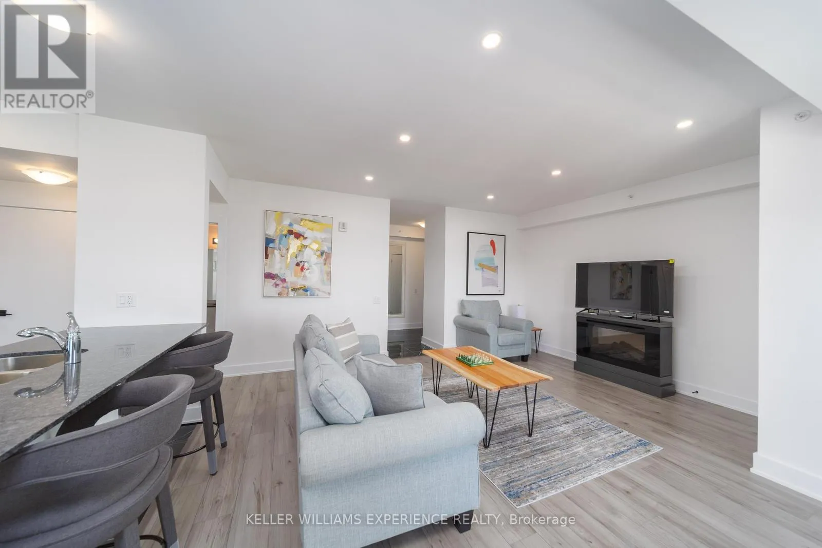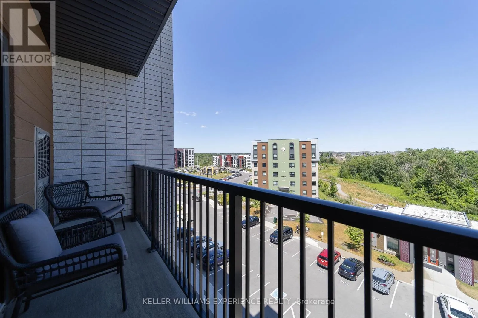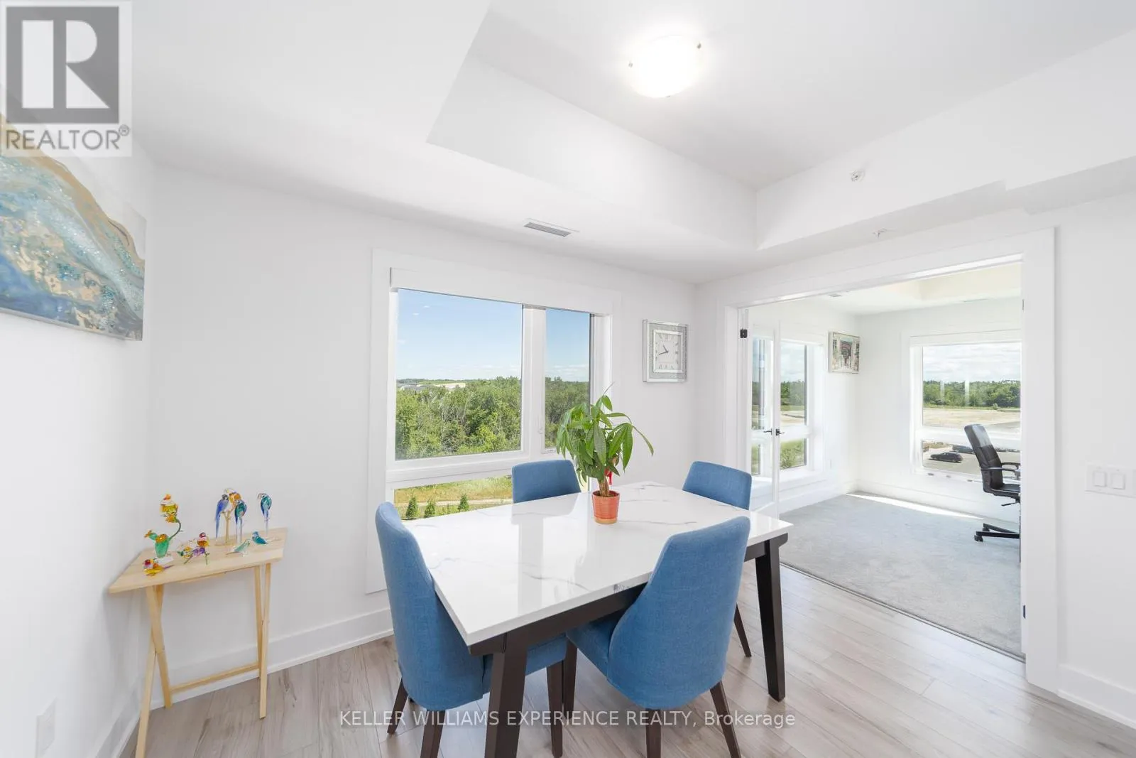 Kneeshaw Dr/Culinary Ln This stunning 3-bedroom, 2-bathroom corner unit offers 1,265 sq. ft. of modern living, with wraparound corner windows and a balcony facing southeast perfect for enjoying breathtaking sunrises every morning. Featuring $33,000 in upgrades, the home showcases an upgraded kitchen with stainless-steel appliances, under-cabinet lighting, pot lights, granite countertops, and a stylish tile backsplash. Porcelain tile flooring flows through the foyer, kitchen, and bathrooms, while the spacious living room opens to a balcony equipped with a gas barbeque hookup and overlooks lush green space. The primary suite boasts a walk-in closet and a private ensuite, complemented by custom blinds throughout. Accessible features, including wider door frames and hallways as well as accessible light switches, add both comfort and convenience. Ideally located just minutes from the South Barrie GO Station, restaurants, shopping, and more, this nearly new condo is still covered under Tarion Warranty (id:27476)