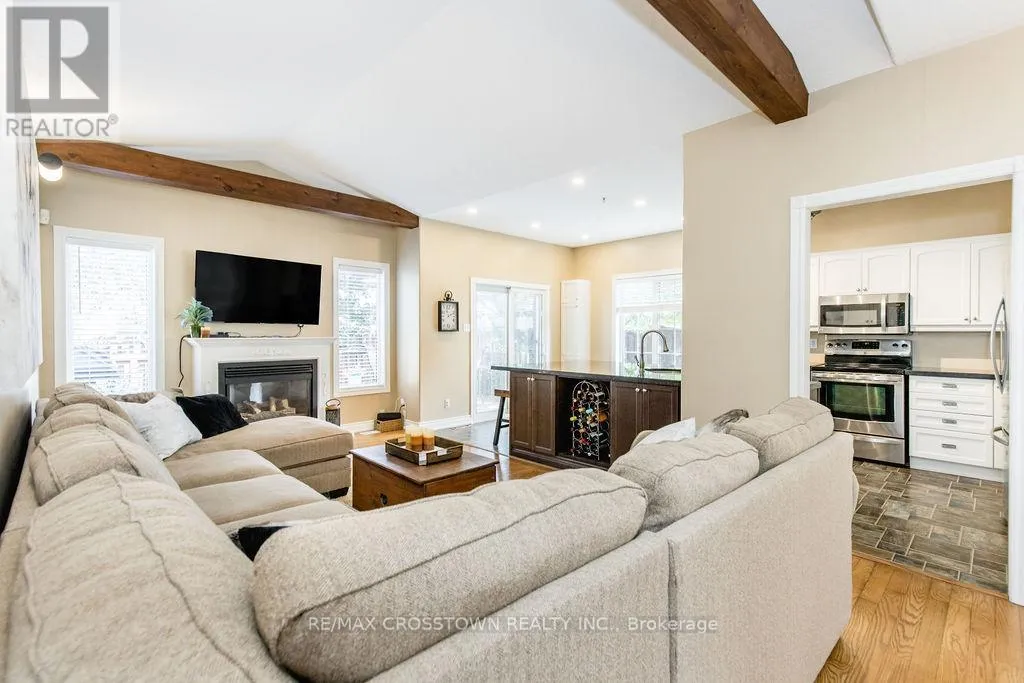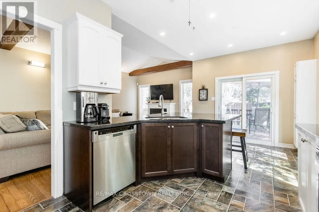 Cross Streets: Hurst Dr/Bloxham Pl. ** Directions: Big Bay Pt to Hurst Dr to Bloxham Pl. Welcome to 1 Bloxham Place a beautifully maintained all-brick bungalow on a desirable corner lot in sought-after Innishore neighbourhood. Featuring 3 main floor bedrooms, including a spacious primary suite with walk-in closet and ensuite bath. The family room with vaulted ceiling and cozy gas fireplace seamlessly opens to the bright eat-in kitchen which offers a breakfast bar, and walkout to a large deck. A combined living and dining room with a big picture window creates an inviting space for gatherings. The fully finished lower level adds incredible versatility with a large rec room, additional bedroom, 3-piece bathroom, laundry room, and cold cellar. Enjoy the convenience of a double garage with inside entry to the mudroom, plus upgraded furnace (covered by warranty) and energy-saving solar panels that help offset hydro and gas costs. Ceramic and hardwood floors throughout the main level add style and durability. For 10 years, 1 Bloxham Place has been the heart of this family's life - holiday pot lucks around the island, summer nights by the firepit, and walks to the park & Wilkins Beach. Neighbours who look out for each other, a backyard built for play, and spaces that welcome everyone. Now its ready for its next chapter. (id:27476)