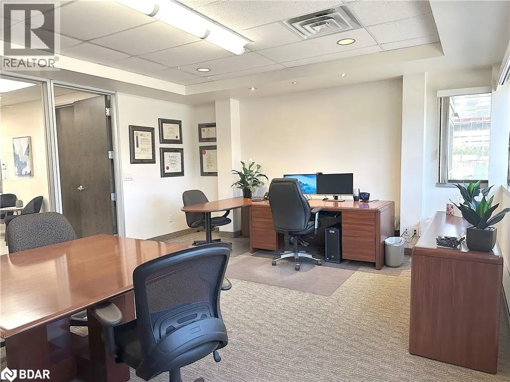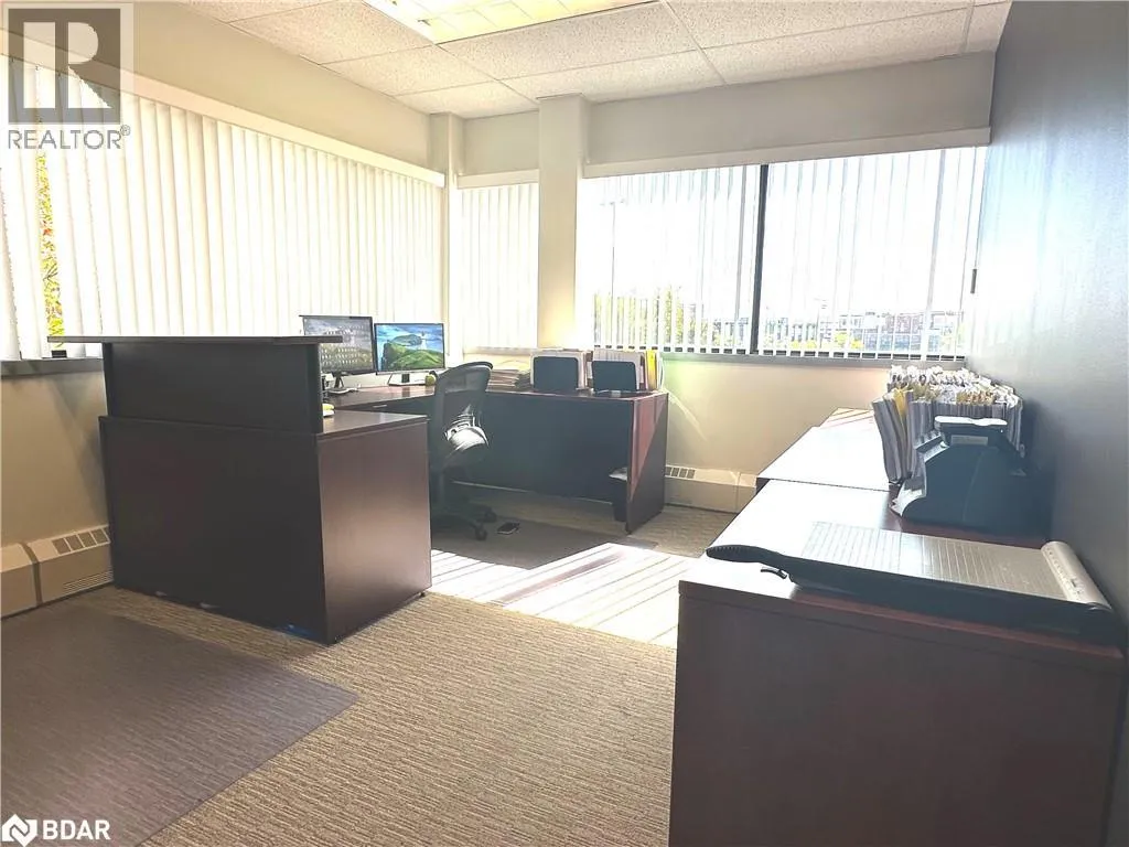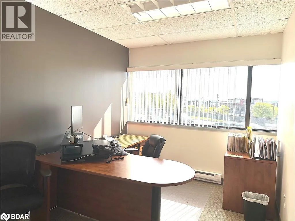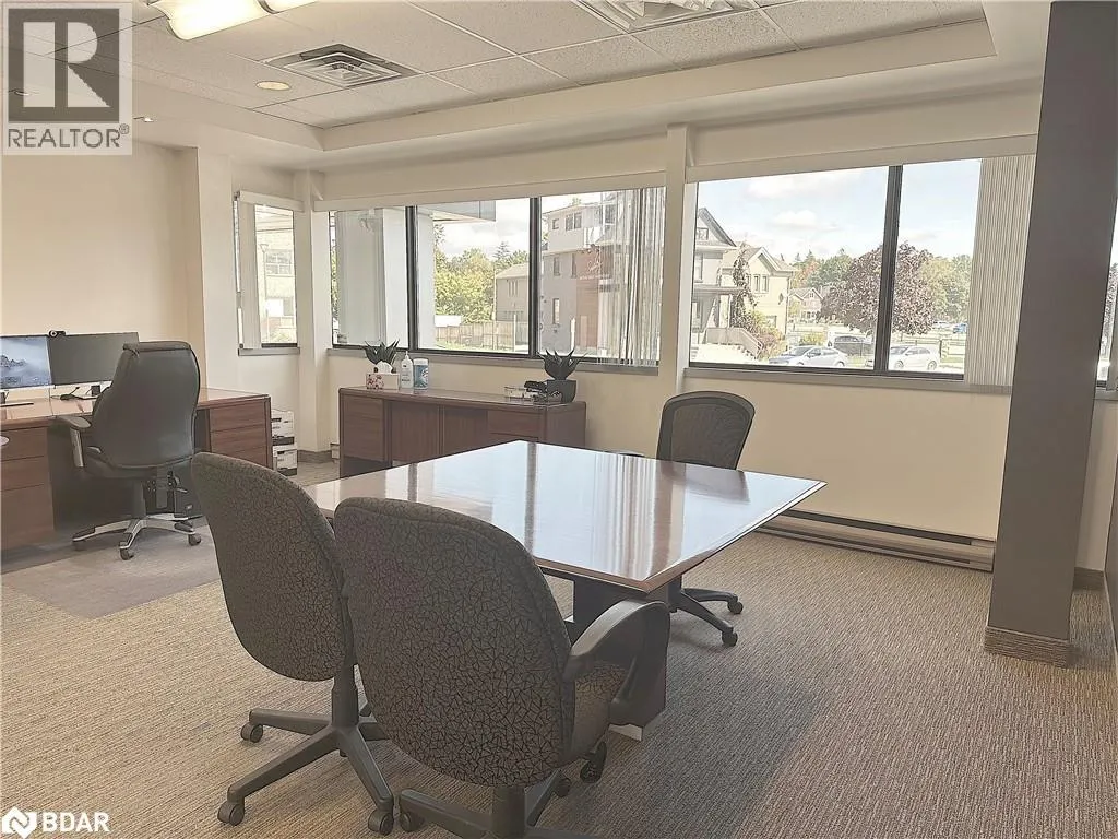 HWY 400 to Bayfield, south to Property located on the east side. Professional A-class office building with easy access to Hwy 400 and downtown Barrie. Just minutesâ walk to banks, the courthouse, City Hall, and a variety of restaurants and amenities. Currently configured with a reception/waiting area, boardroom, four private offices, kitchenette, and a multi-purpose open area. Features plenty of windows and natural light, elevator access, key fob entry throughout the building, and common area washrooms. Rent includes common area cleaning and maintenance, six parking spaces, and utilities. A great short-term opportunity while you transition to your next location â or negotiate for a longer term. (id:27476)