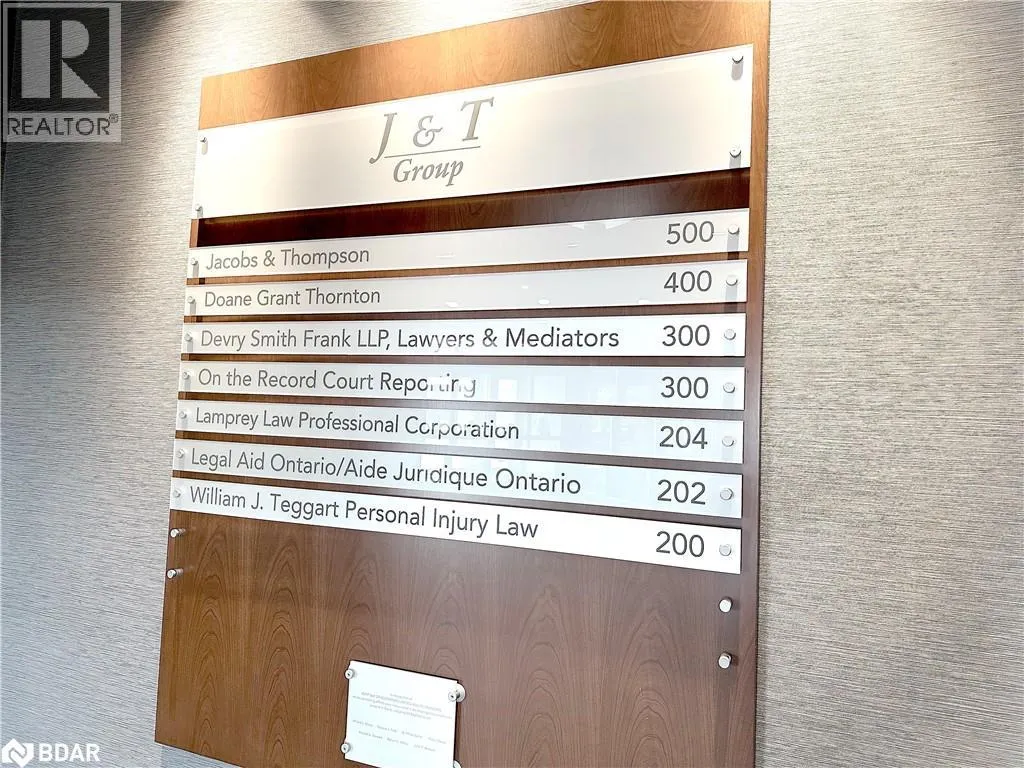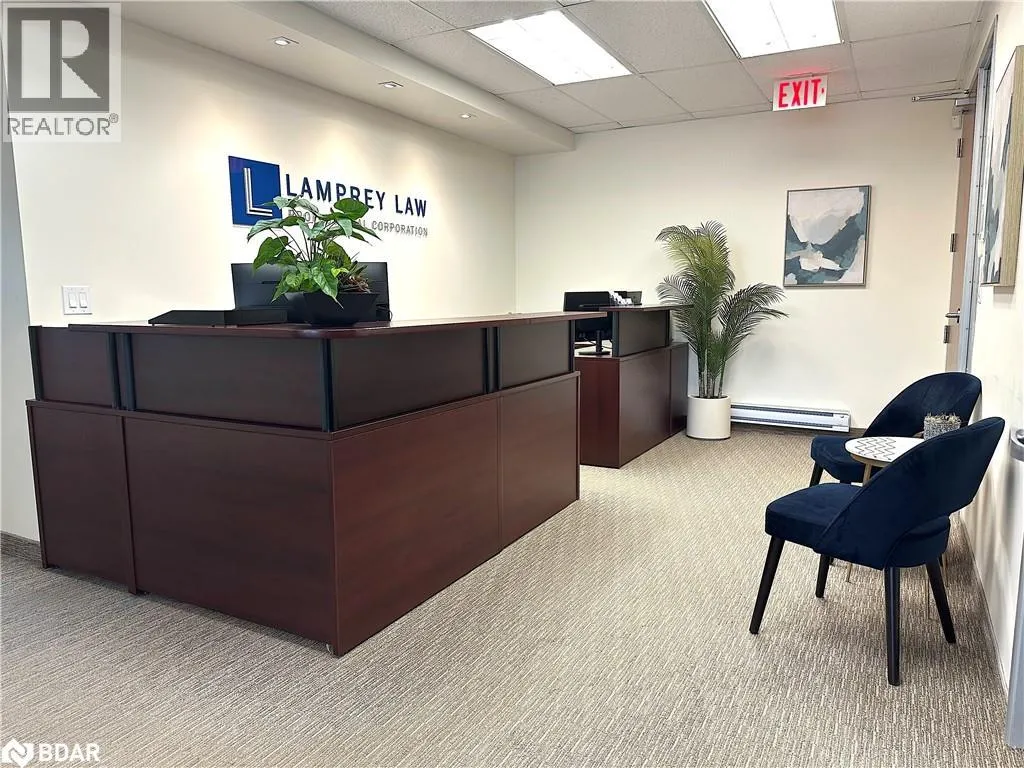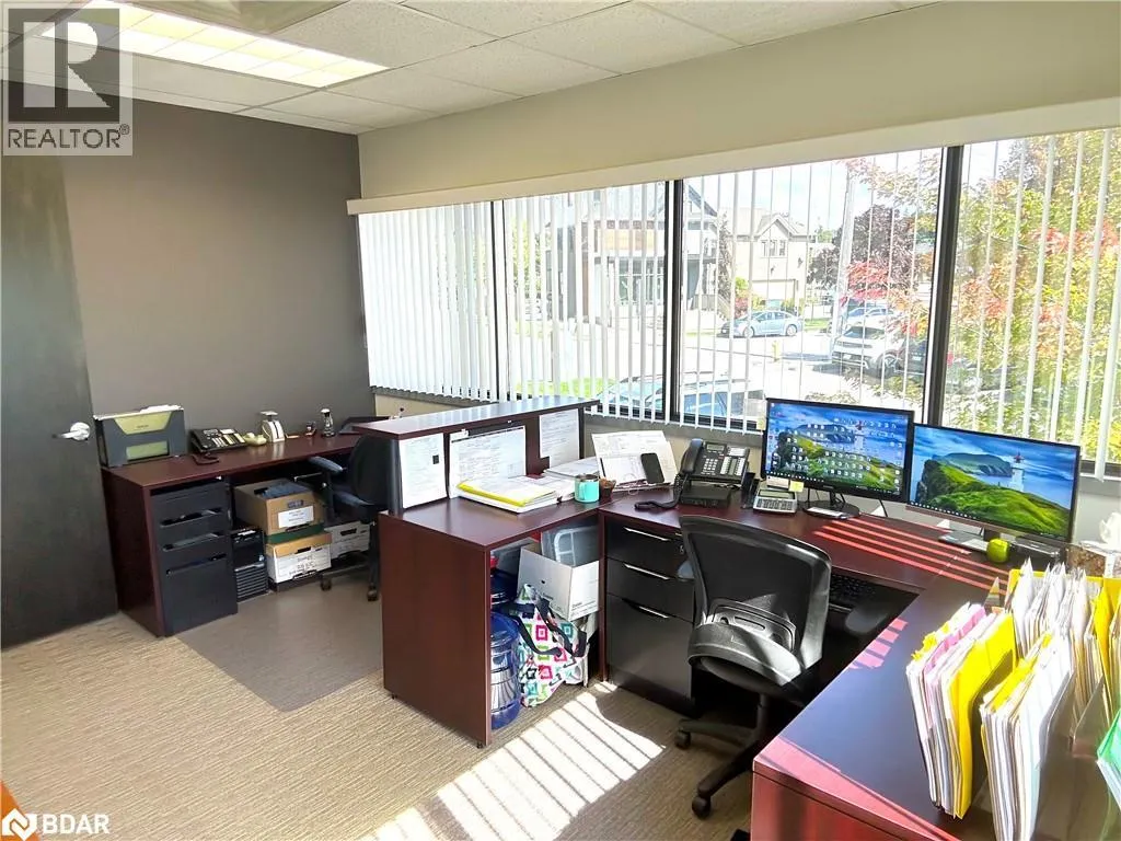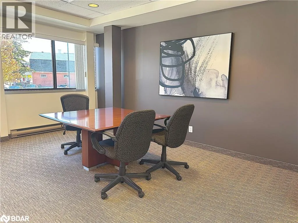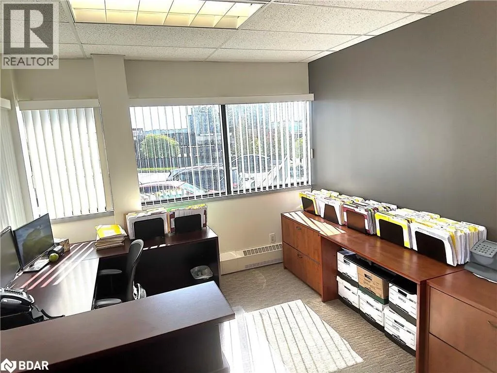 HWY 400 to Bayfield, south to Property located on the east side. Professional A-class office building with easy access to Hwy 400 and downtown Barrie. Just minutesâ walk to banks, the courthouse, City Hall, and a variety of restaurants and amenities. Currently configured with a reception/waiting area, boardroom, four private offices, kitchenette, and a multi-purpose open area. Features plenty of windows and natural light, elevator access, key fob entry throughout the building, and common area washrooms. Rent includes common area cleaning and maintenance, six parking spaces, and utilities. A great short-term opportunity while you transition to your next location â or negotiate for a longer term. (id:27476)
