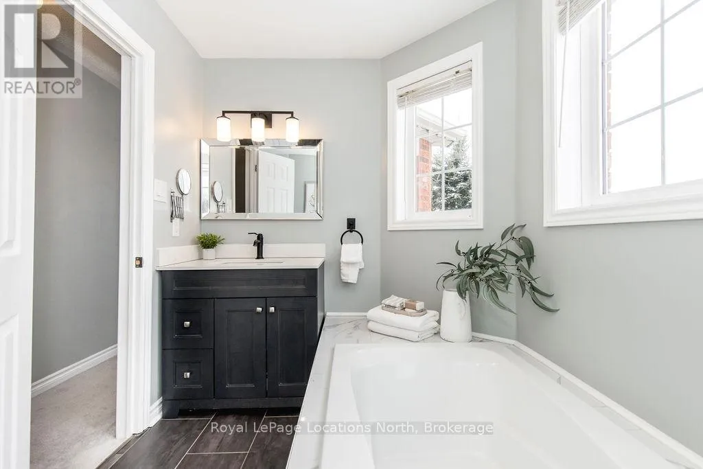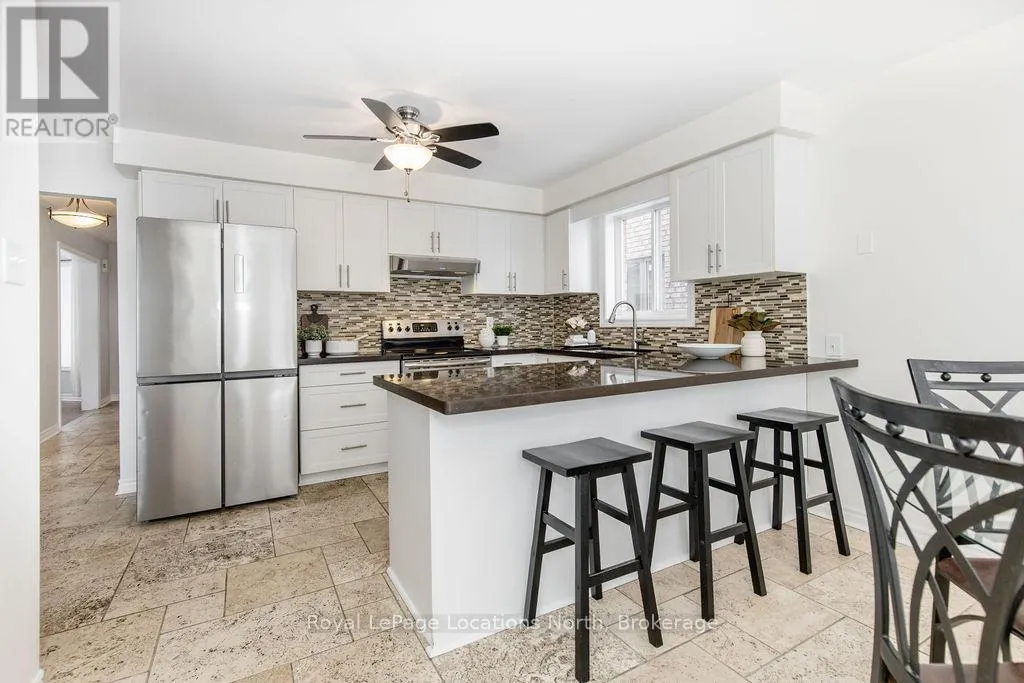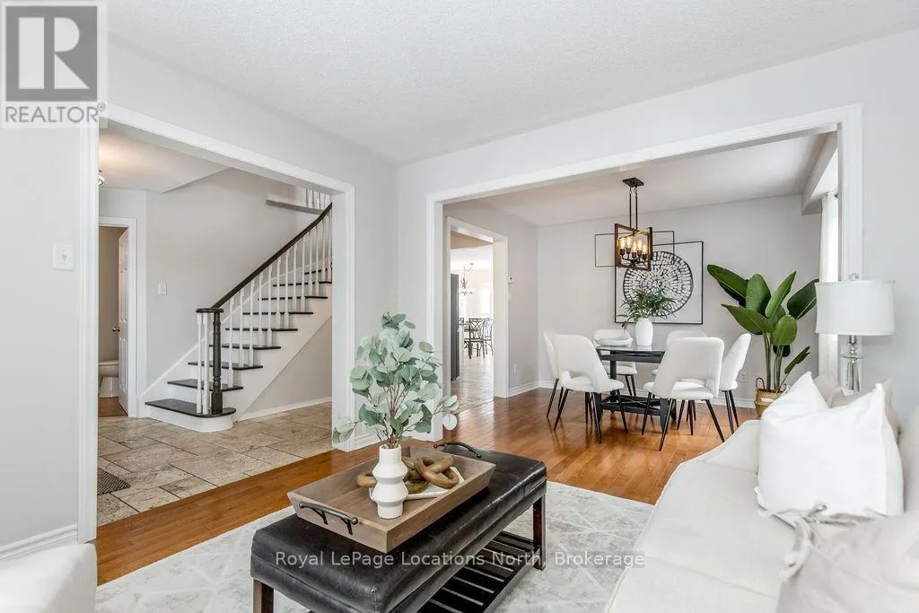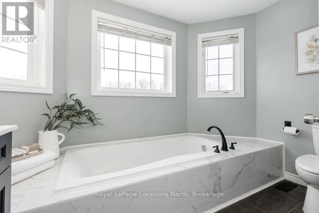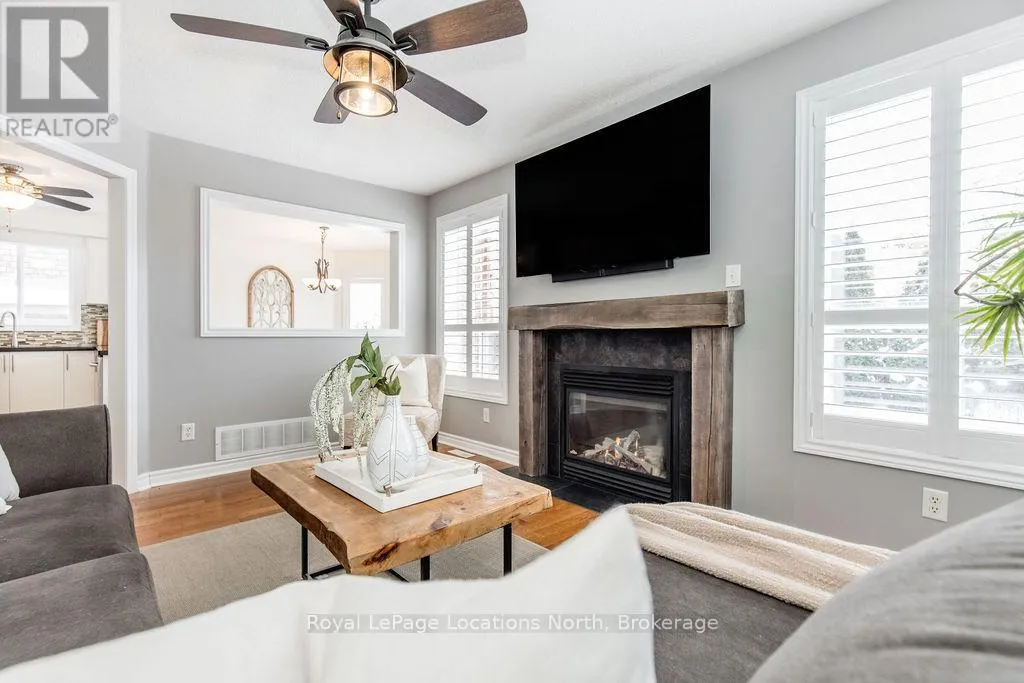 Cross Streets: Sundew Dr and Holly Meadow. ** Directions: Sundew Dr to Holly Meadow. Stunning 4-Bedroom Home in Desirable Holly - Welcome to this beautifully appointed 4-bedroom, 4-bathroom home in the sought-after, family-friendly neighbourhood of Holly. Recent updates include a new furnace (2024), new front & patio doors (2024), freshly paved driveway, newer carpeting (2021), roof (2018) & several updated windows. From the moment you step inside, you'll be greeted by a spacious foyer w/ elegant tumbled marble floors. A wheelchair-accessible main-floor powder room adds convenience & connects to the laundry room. The living room, featuring hardwood floors, offers a picturesque view of the landscaped front yard & newly laid walkway, while the dining room is perfect for hosting family & friends.The tumbled marble continues into the tastefully updated eat-in kitchen, complete w/ modern cabinetry, solid surface countertops, a sleek back splash & custom California shutters. Adjacent to the kitchen, the inviting family room features a fireplace w/ a brand-new wooden mantle & overlooks the backyard, also adorned w/ California shutters.Step outside to the fully fenced backyard, lovely patio & beautiful gardens - an ideal space for relaxing or entertaining. Upstairs, the spacious primary bedroom boasts a walk-in closet & 4PC ensuite w/ a relaxing soaker tub. Three additional bedrooms & a main 4PC bathroom complete the second level.The freshly painted basement offers a versatile space for entertainment or play, featuring a 2PC bathroom w/ a rough-in for a shower. Additional highlights include a 2-car garage w/ inside entry. Ideally located just steps away from an entrance to the Ardagh Bluffs hiking trails, this home offers the perfect blend of nature & convenience. Families will also love being within walking distance to both public and Catholic elementary and secondary schools. With nearby parks, amenities & a welcoming community, this move-in ready home is an exceptional opportunity in one of Barrie's most desirable neighbourhoods. (id:27476)